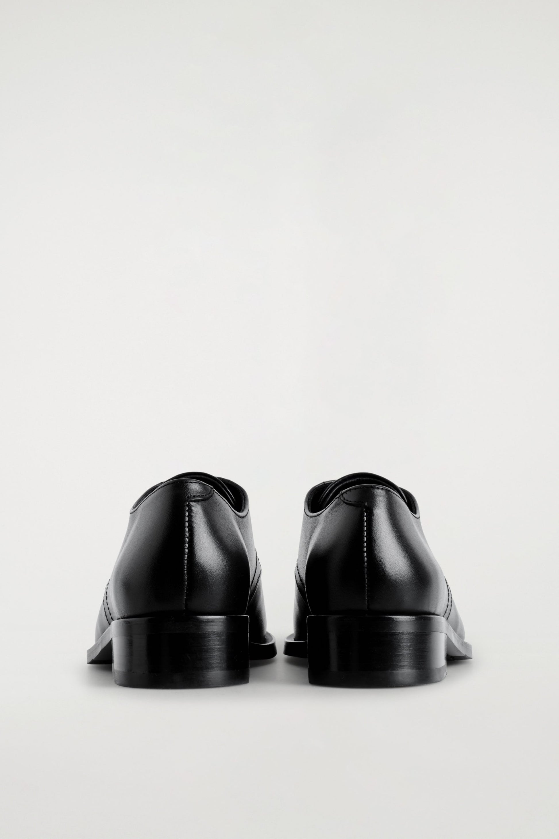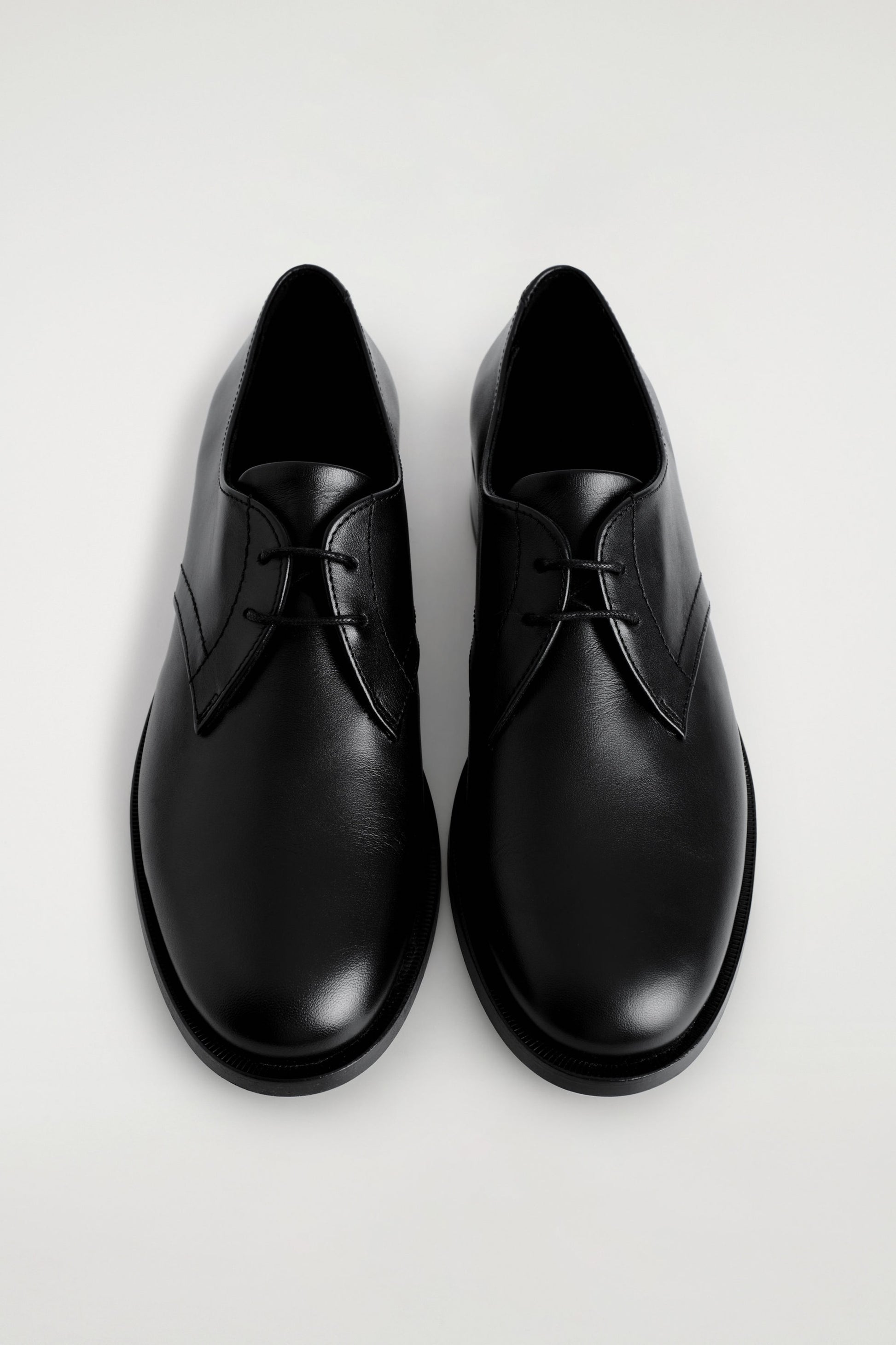 The COS Derby shoe is a refined staple, reimagined for the rhythm of modern life. Made in Portugal, they're crafted from supple leather and designed with rounded toes, stacked heels and waxed-cotton laces.