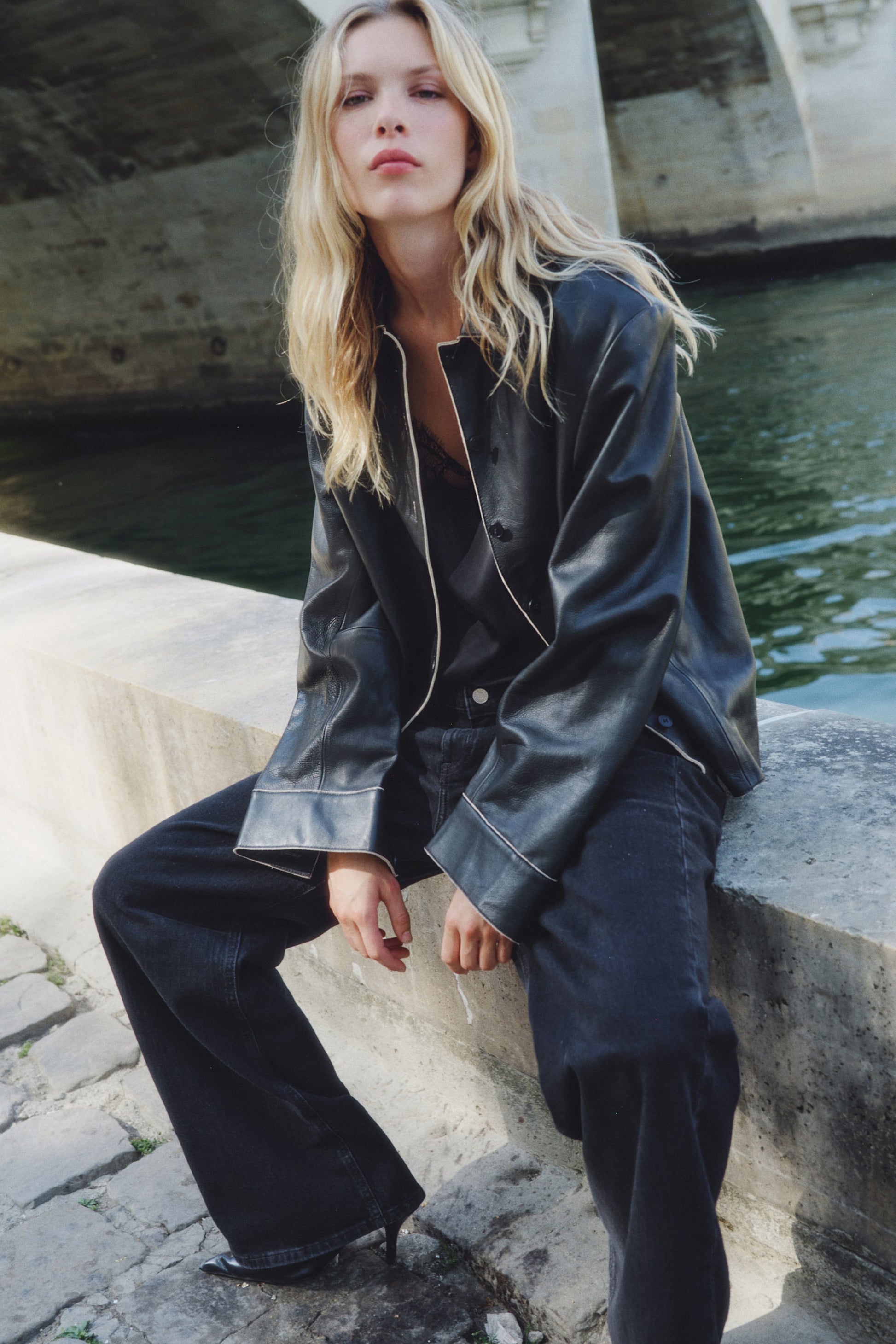 Jacket in soft leather detailed with raw-cut edges. Features a collar, buttons down the front and buttoned cuffs. Viscose twill lining.