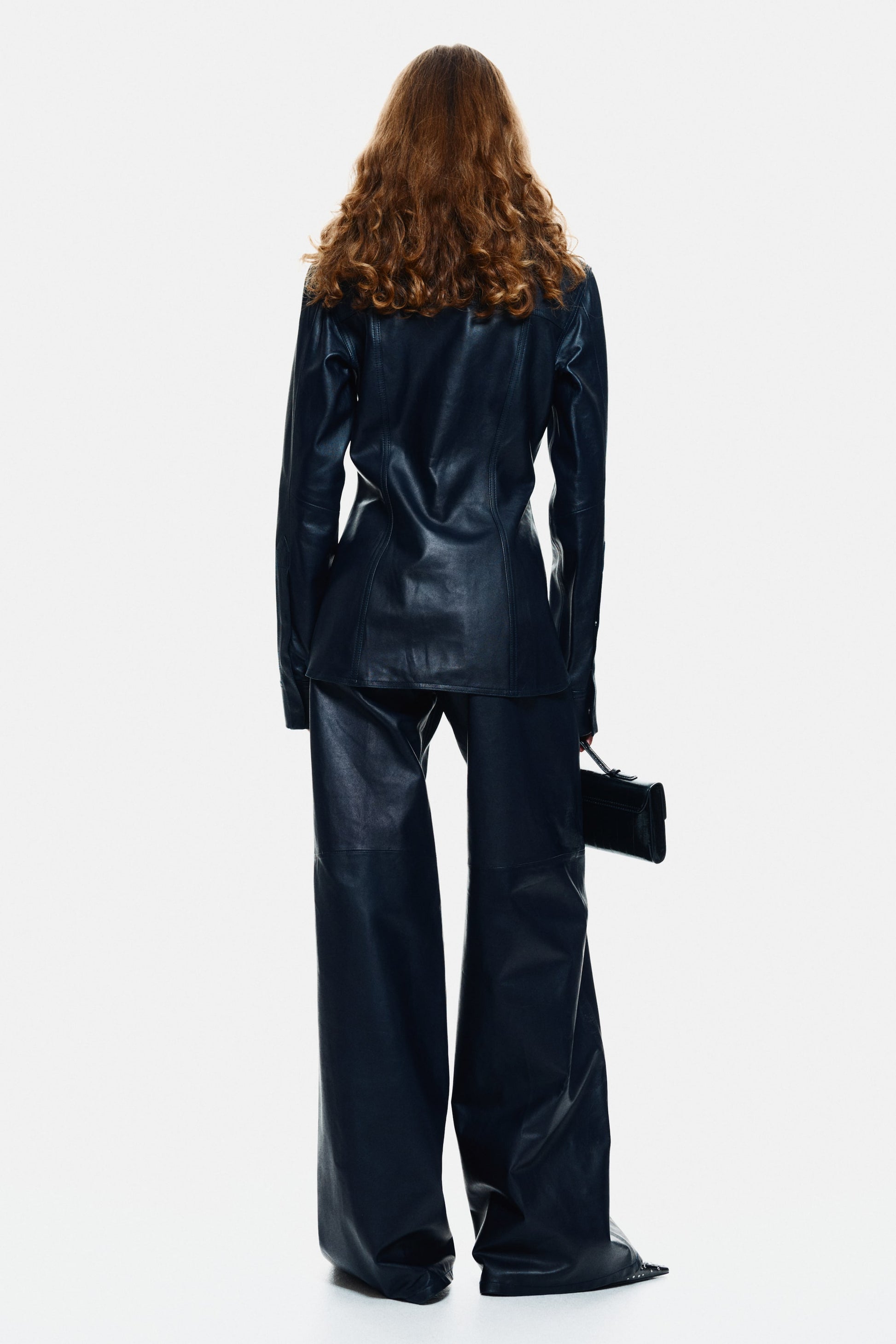 Fitted shirt crafted from soft leather with a collar and concealed press-studs down the front. Yoke at the front and back and long, cuffed sleeves featuring a sleeve placket with concealed press-studs. Chest pockets with a flap and concealed press-stud.
