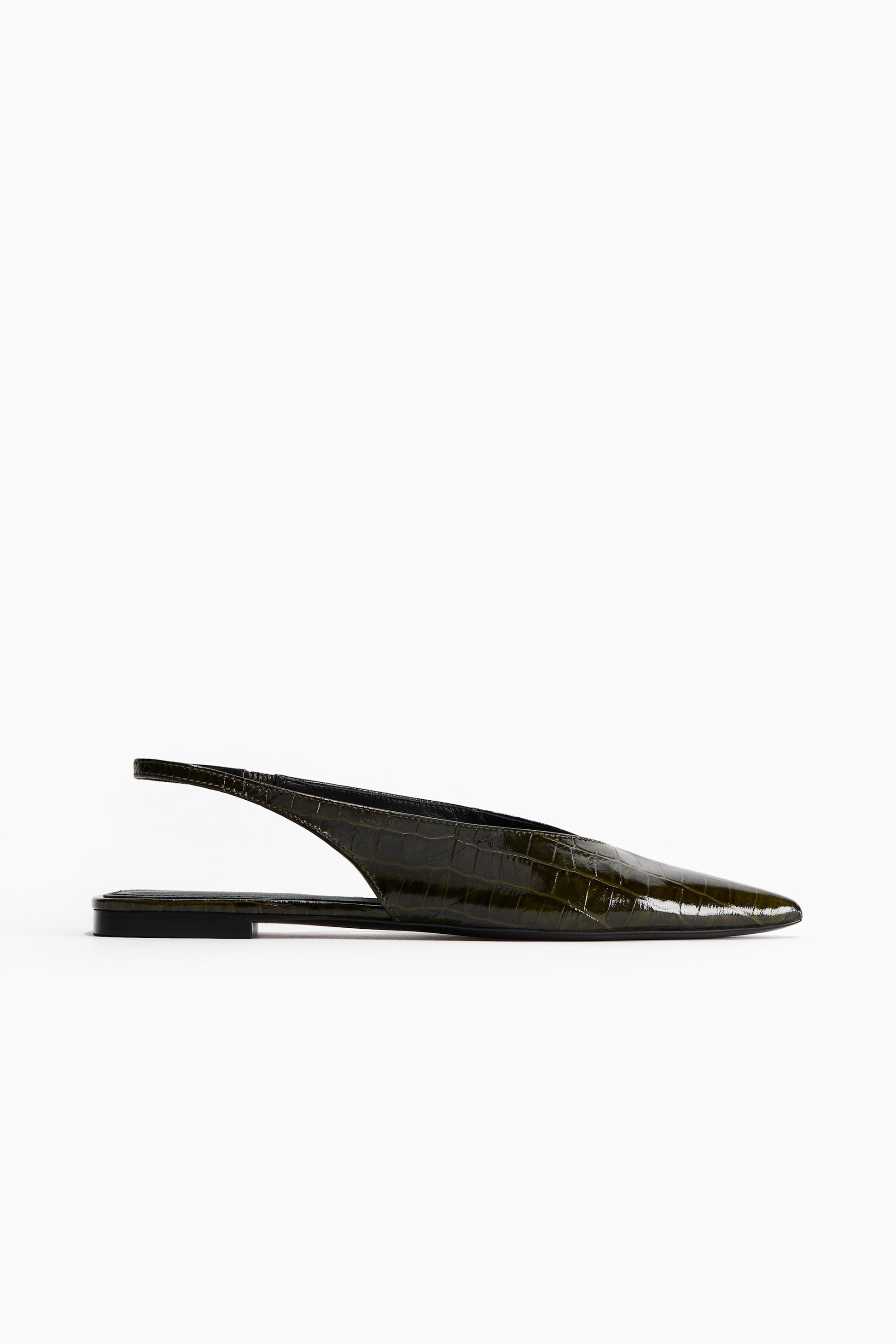 Slingbacks in shiny leather with pointed toes and a heel strap with elastication at one side. Leather linings and insoles.