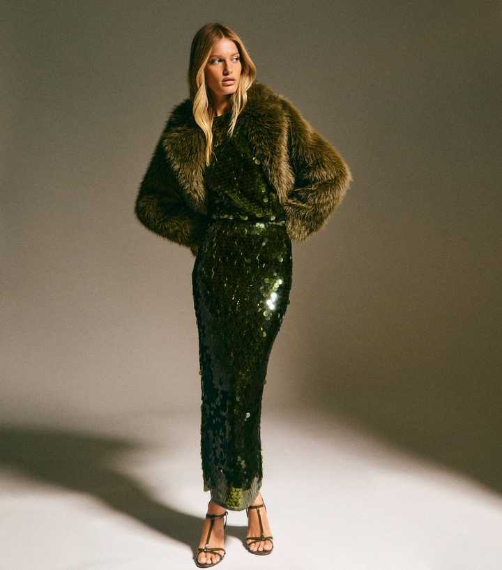 This light khaki top is a sparkly addition to your going-out edit in a glimmering sequin finish. Perfect for embracing the party season, it’s best paired with the matching skirt for glam nights out.