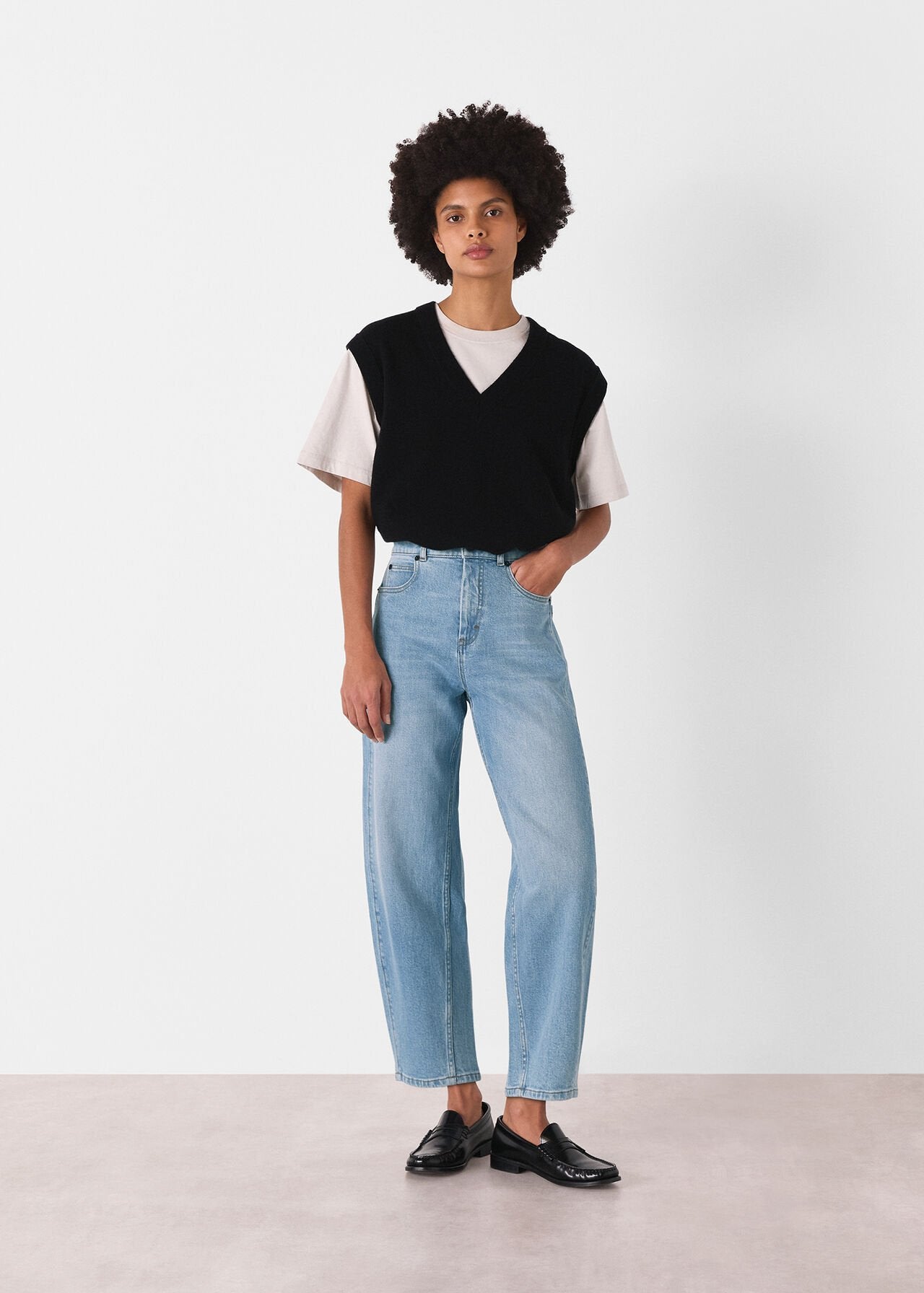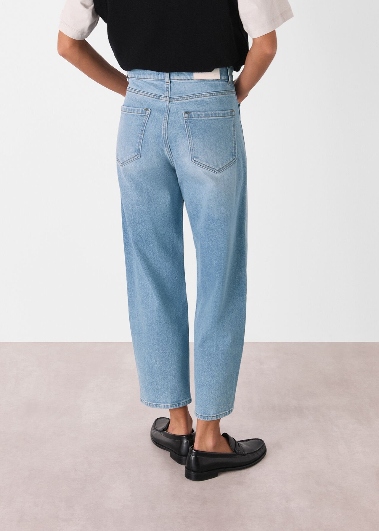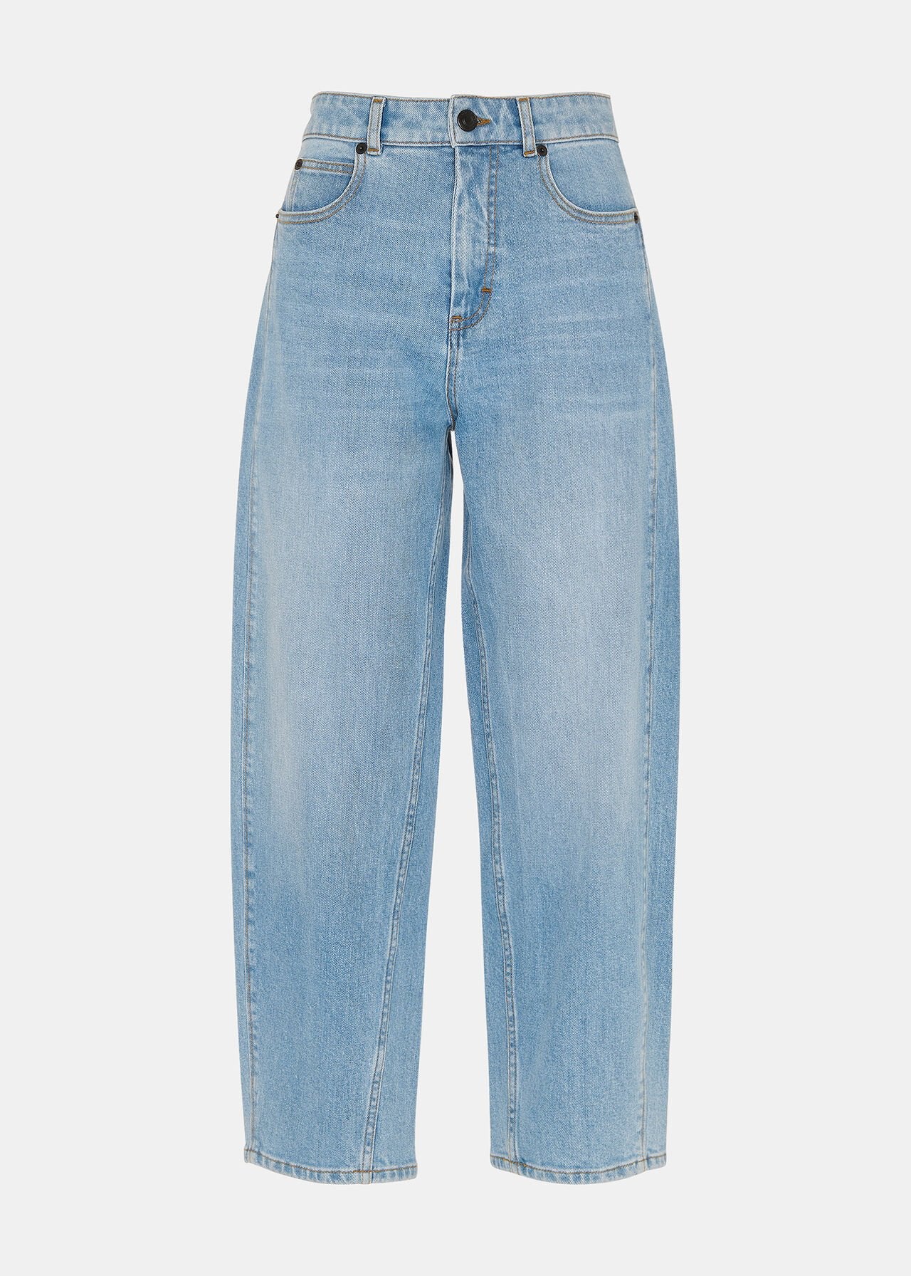Our signature Barrel Leg Jeans are a staple in the modern wardrobe, and this pair arrives in stretch denim for added comfort. They're refreshed in a timeless light denim shade, pairing effortlessly with everything from laidback trainers to elevated heeled boots. The barrel leg shape is modern and effortless, sitting high on the waist, fitting looser through the thigh and cropped at the ankle.