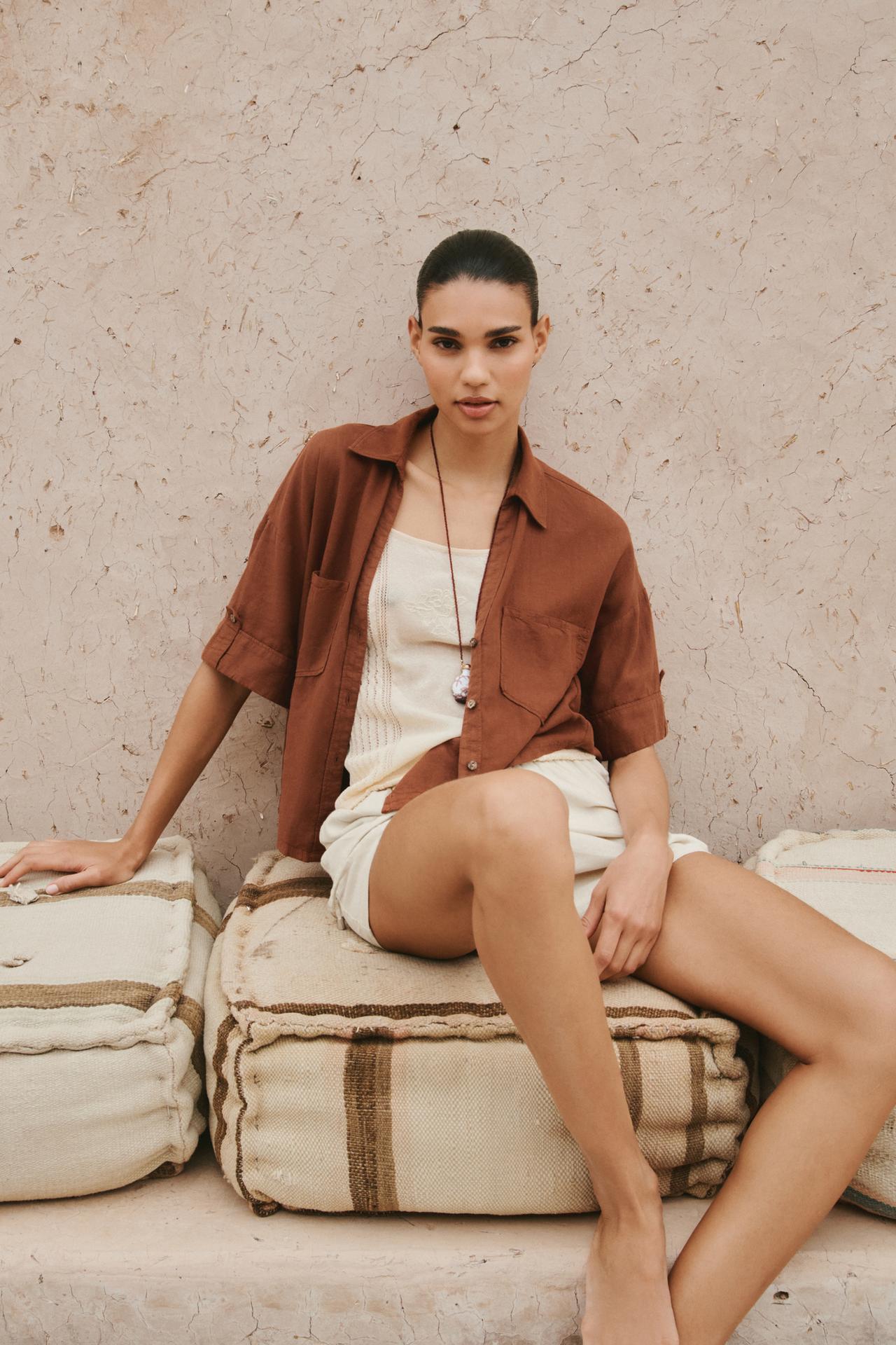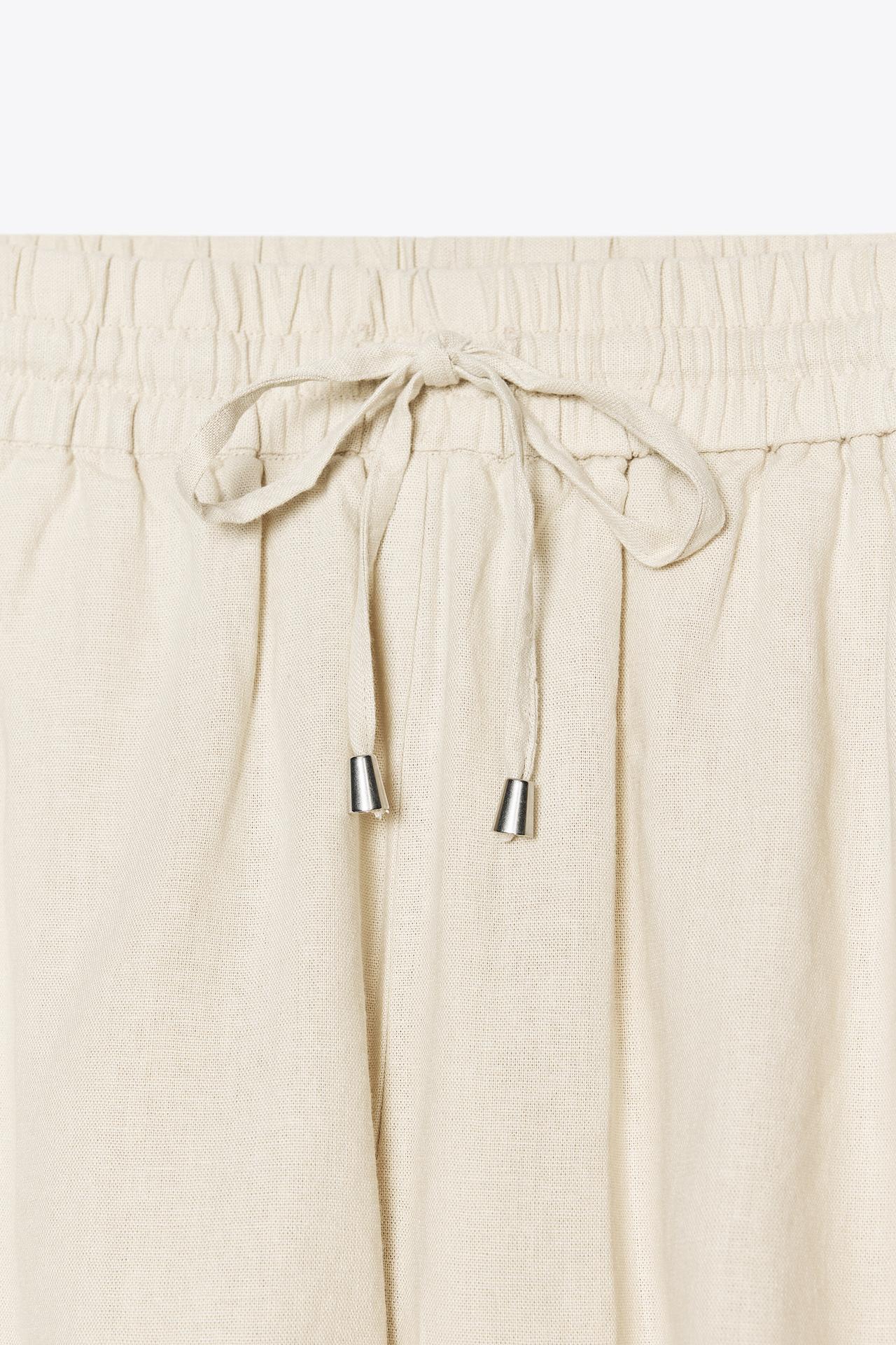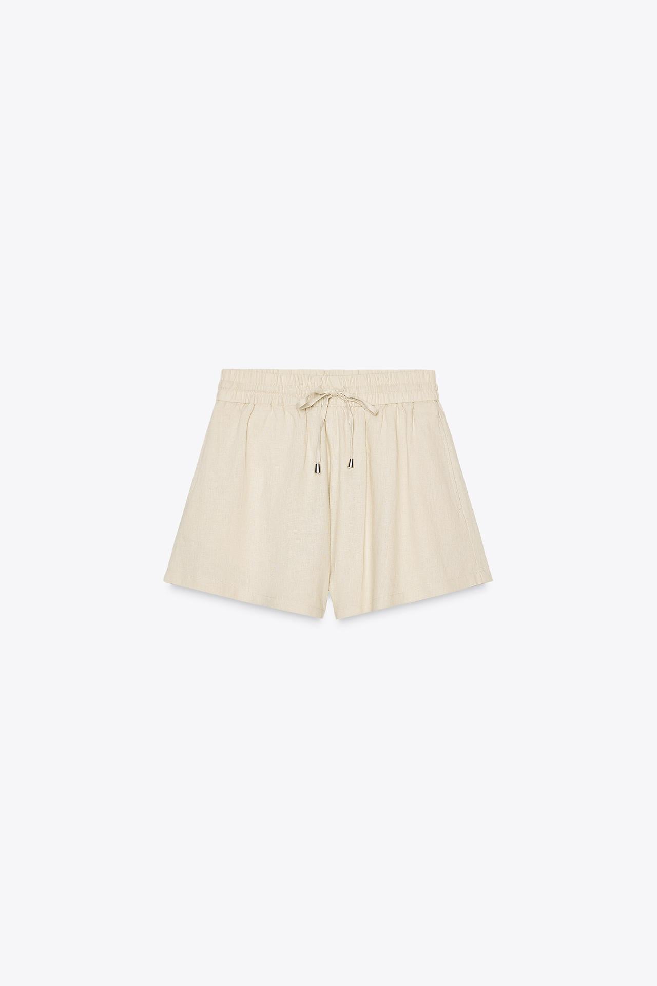 Bermuda shorts in a linen blend. High waist with elastic drawstring waistband. Front pockets.