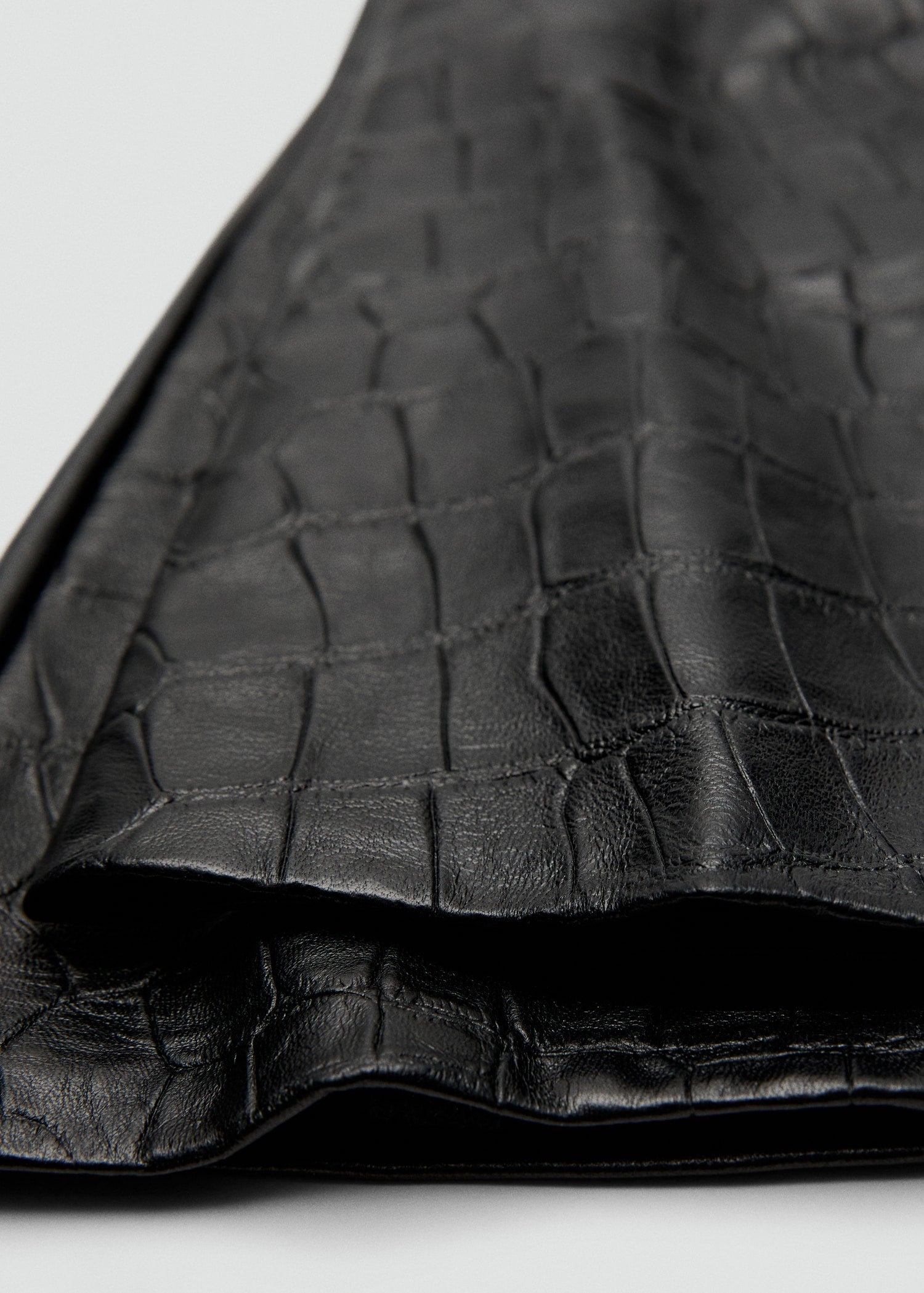 100% ovine leather. Crocodile effect. Long design. No Fastening. Inner lining. Selection Collection.