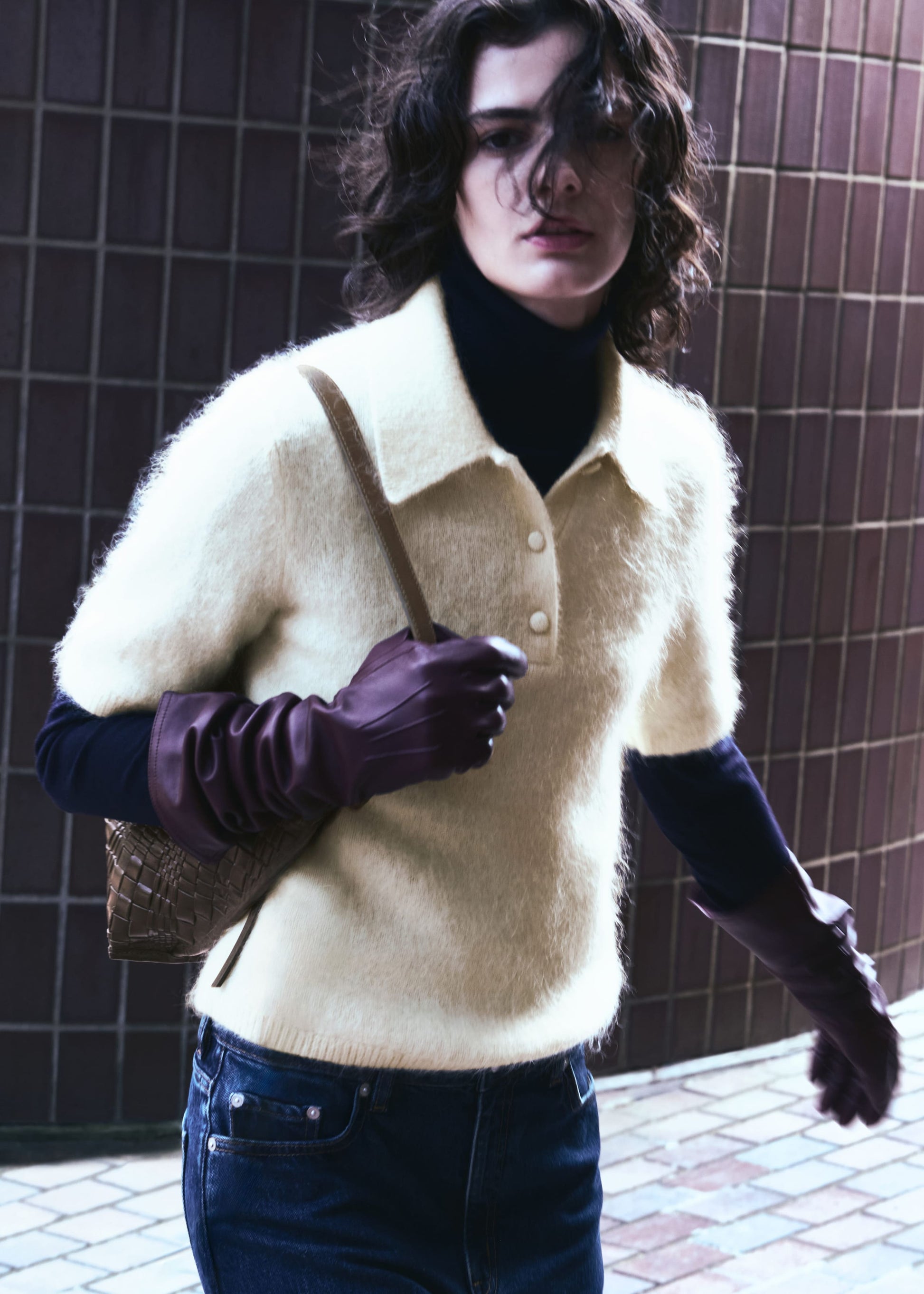 These elbow-length gloves are crafted from supple leather and lined with soft insulating viscose. The back of the hand is detailed with delicate darts.