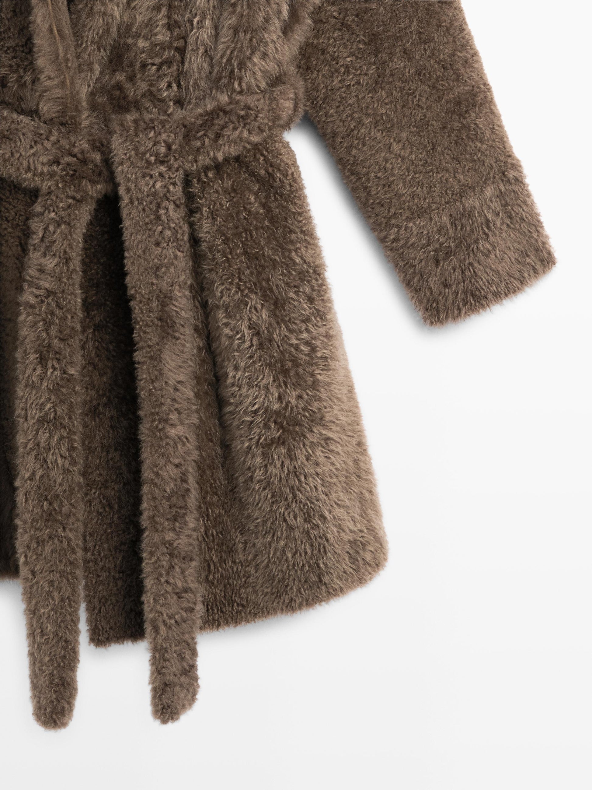 Long mouton coat with belt