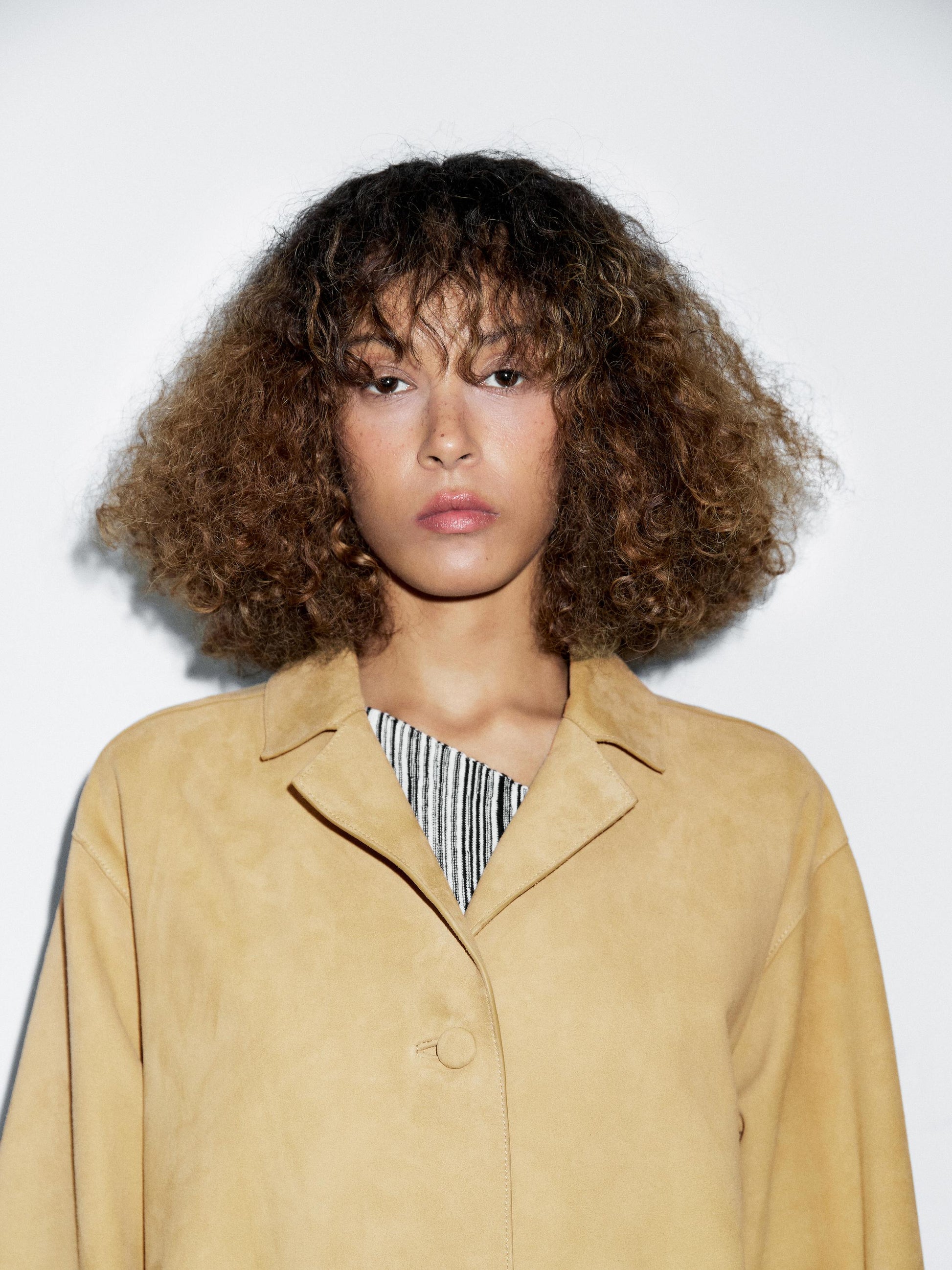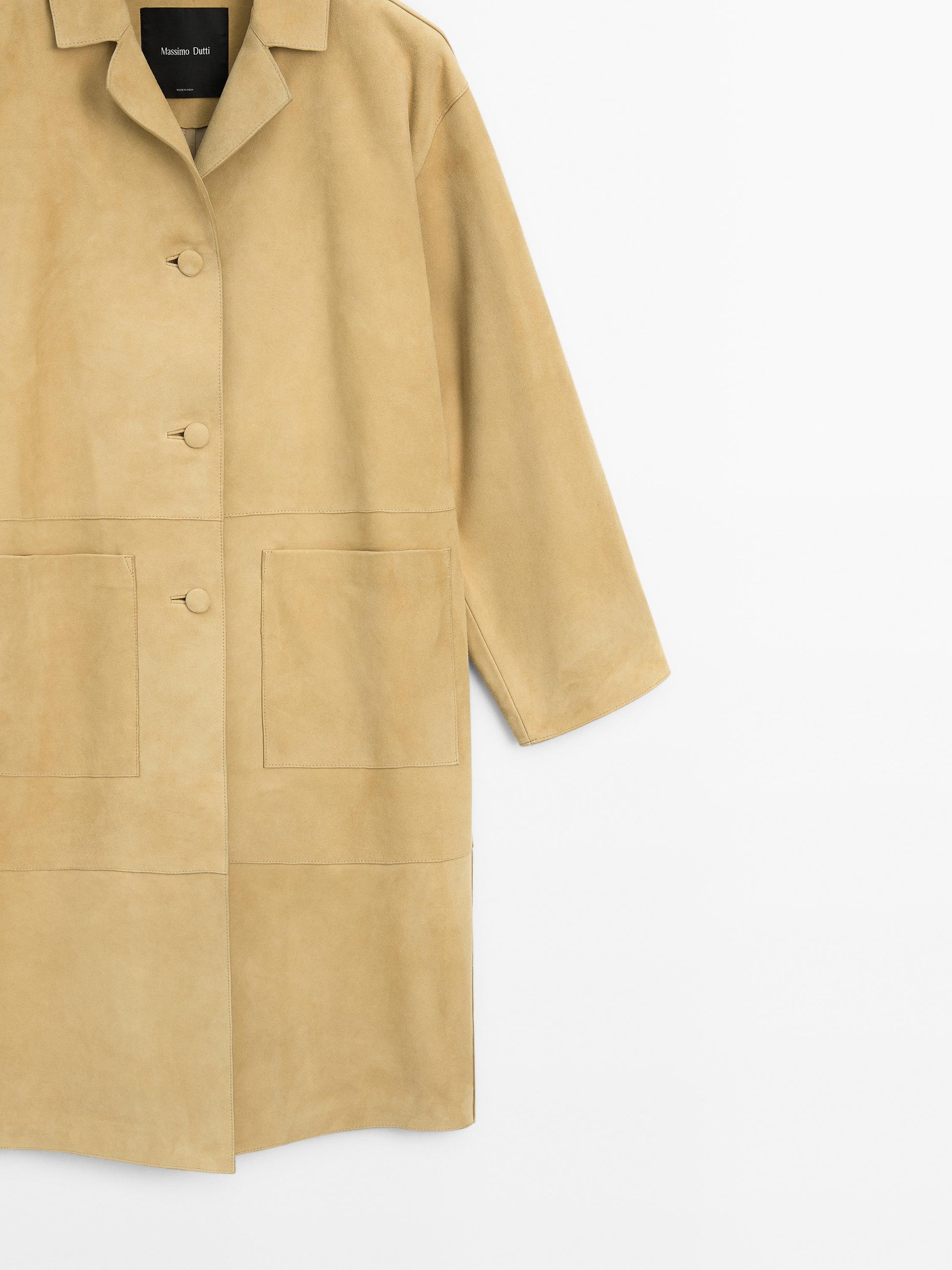 Coat made of 100% sheepskin leather with a nappa finish. Button fastening. Two patch pockets. Seam details .