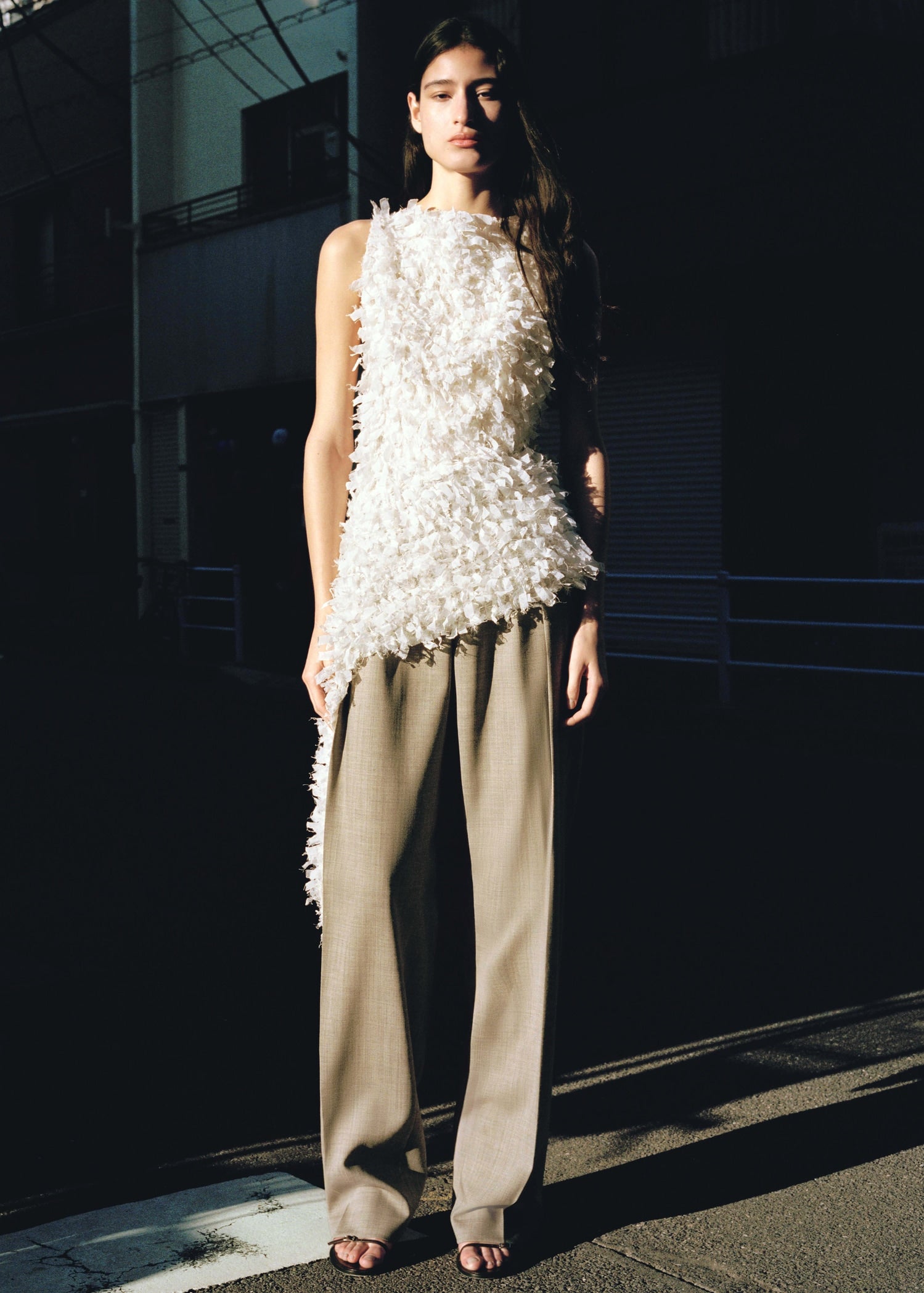 100% wool fabric. Straight design. Long design. Dart detail. Low waist. Belt loops. Two side pockets. Two welt pockets at the back. Zip, button and concealed hook-and-loop fastener with placket. Inner lining. Total look. Selection Collection.