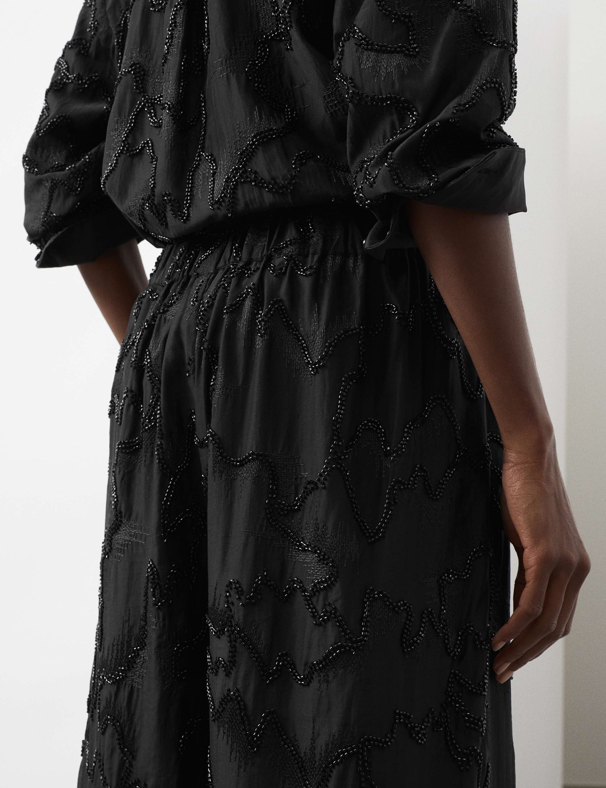 These trousers from our Autograph collection are embellished with sparkling beads and embroidery for a glamorous, party-ready look. They're designed in a flattering wide-leg fit, with an elasticated high-rise waistband for comfort. The two side pockets add a practical touch, while a lining ensures a smooth feel.
