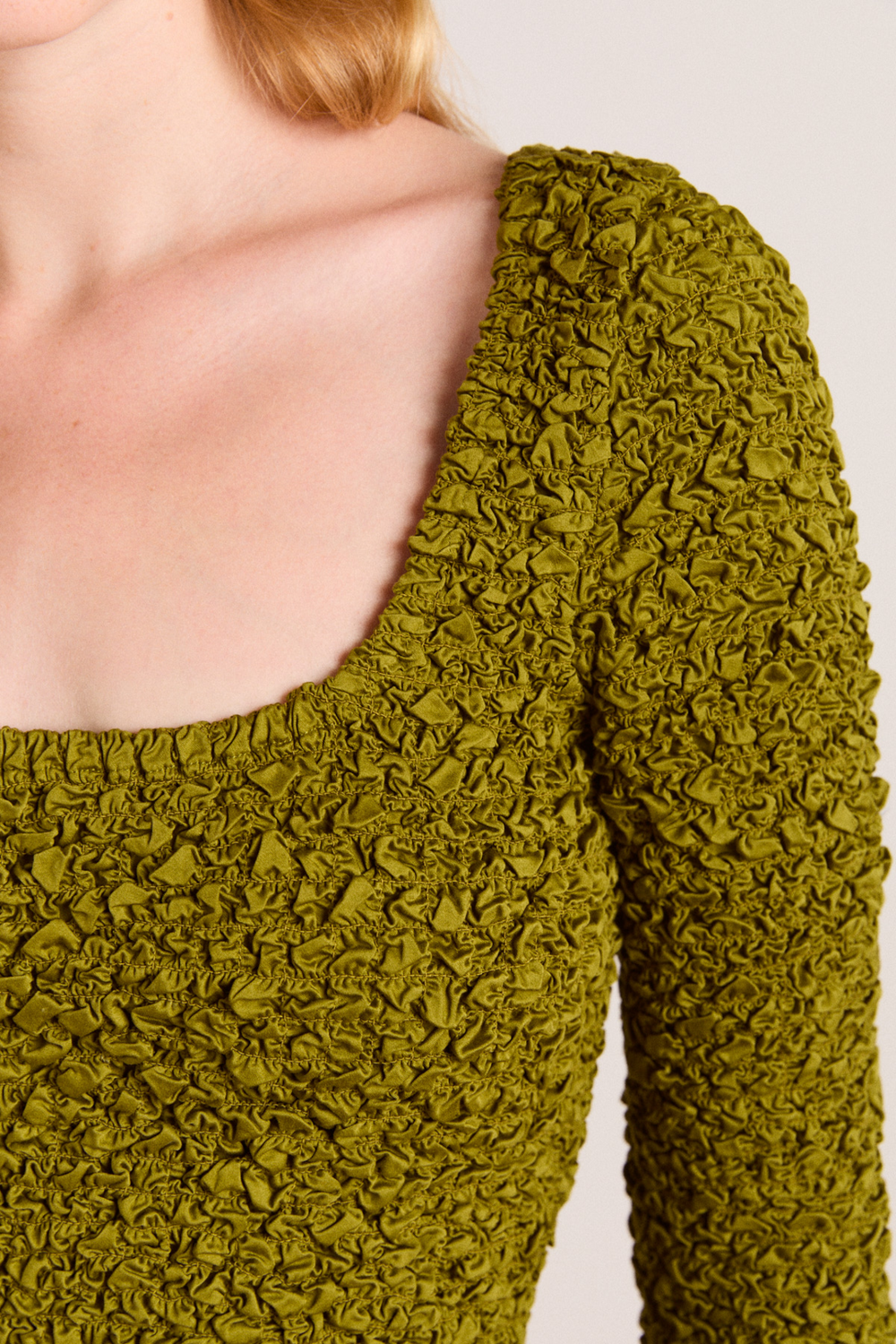 Crafted from 100% organic cotton, the Malinda Super Smocked Mini Dress in olive is the perfect transeasonal dress. Designed with a square neck and hand smocked bodice and sleeves for a flattering fit. The Malinda will effortlessly carry you from day to night.