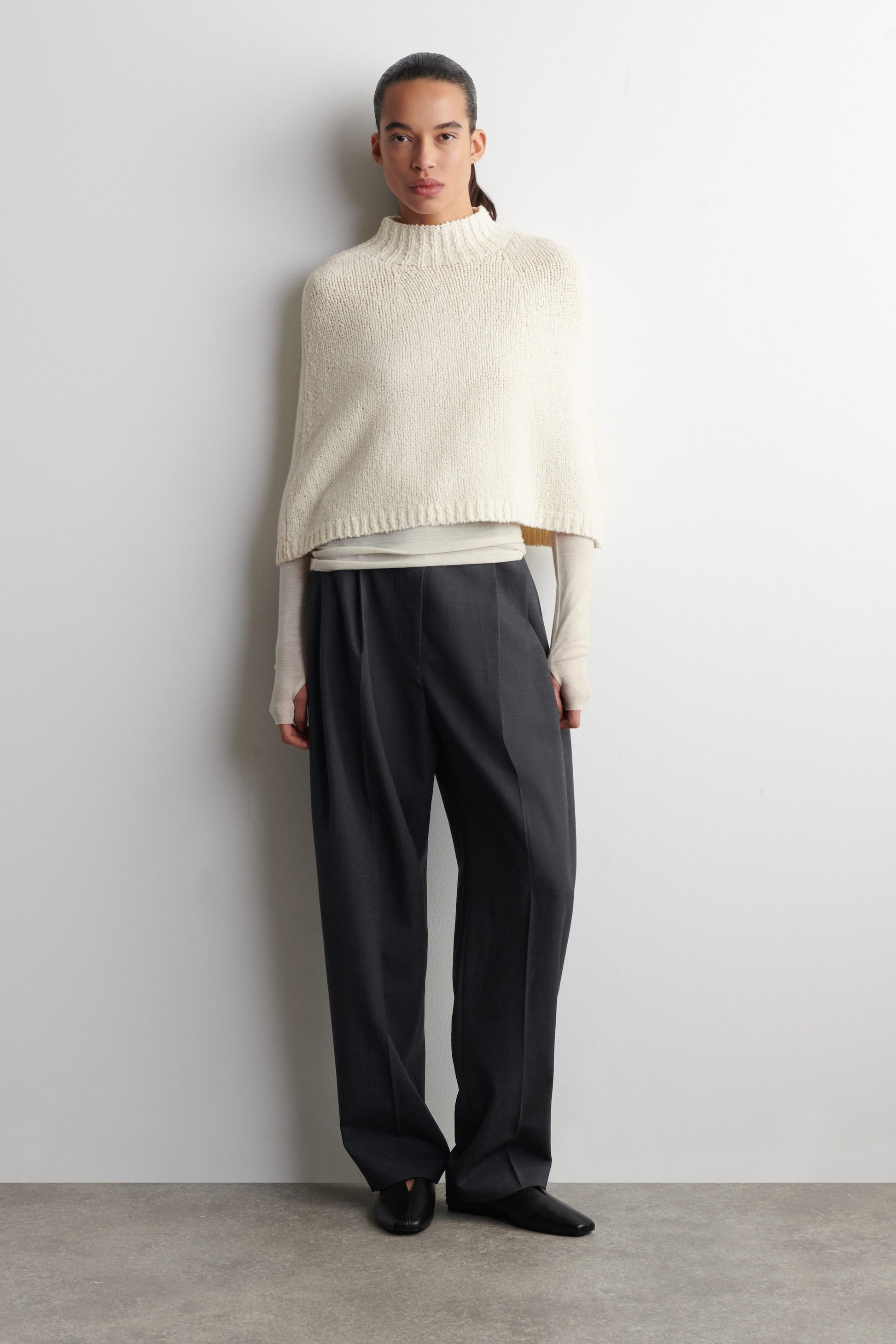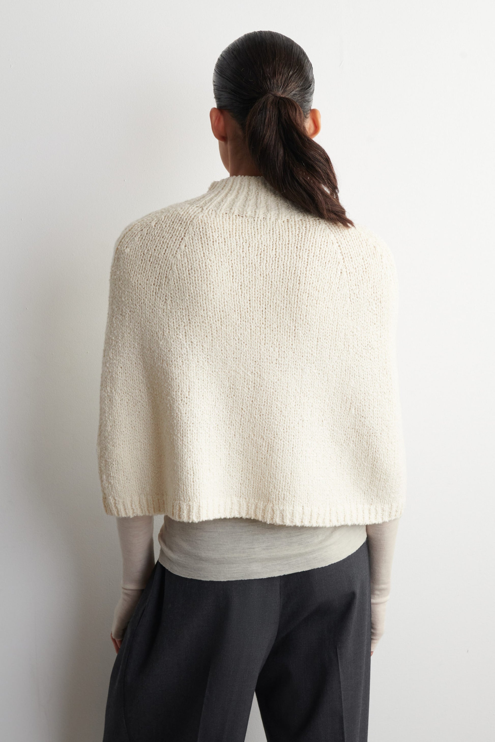 Defined by its enduring appeal, the cape is a signature of the autumn/winter wardrobe. This refined piece is knitted from a luxuriously soft blend of merino wool and cashmere and features a high neckline, rounded shoulders and ribbed trims.