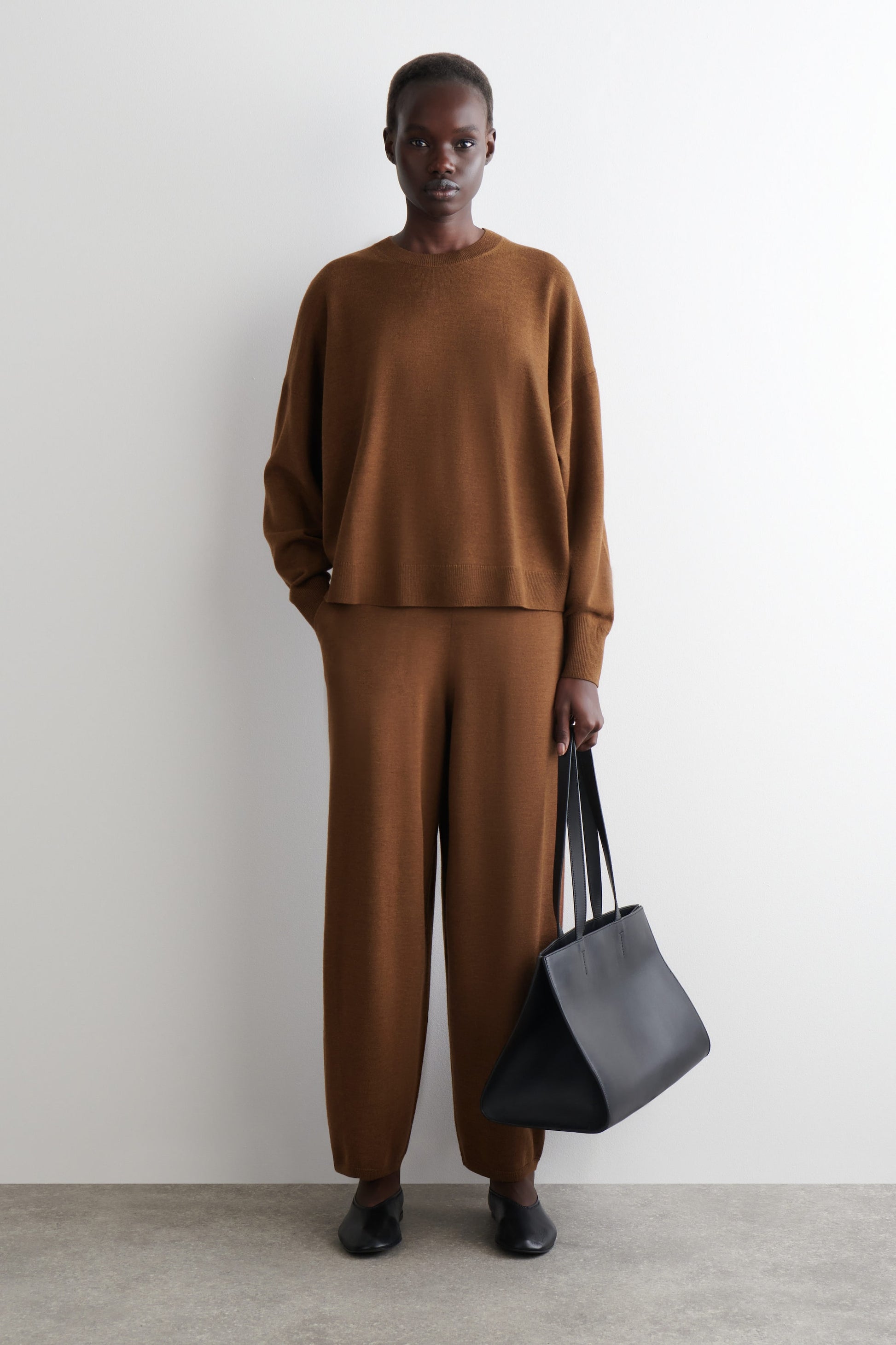 Our classic knitwear serves as a refined wardrobe foundation. This brown jumper is finely knitted from merino wool that's soft, lightweight and will keep you warm on the coldest days of the year. It's cut in a relaxed silhouette and features a ribbed crew neck and shaped sleeves. Style it with the matching trousers.