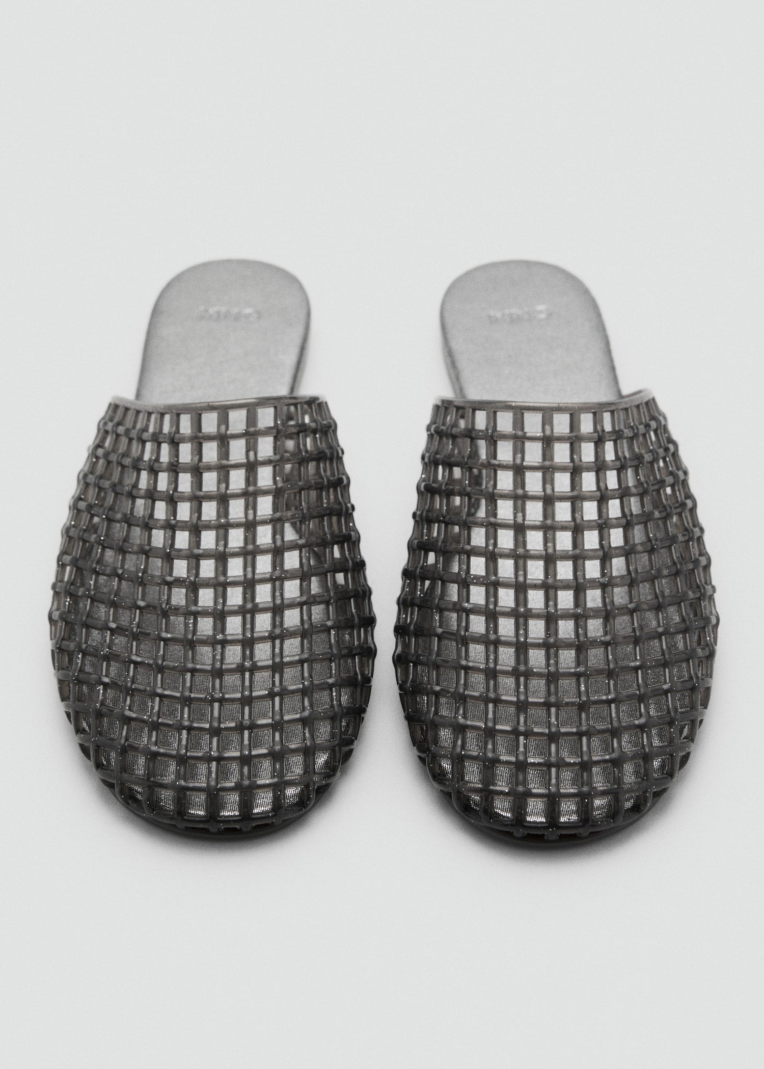 Flat. Mule style. Mesh pattern. No closure. Exclusive Online.