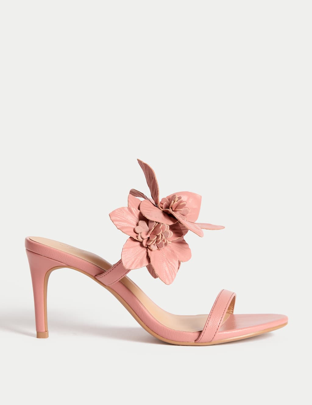 These slip-on mules will make a sophisticated statement on special occasions. They're elevated by high stiletto heels for a sleek, elegant silhouette. Oversized, 3D-effect flower corsage embellishments bloom from the front strap. A metallic finish enhances the maximalist effect.