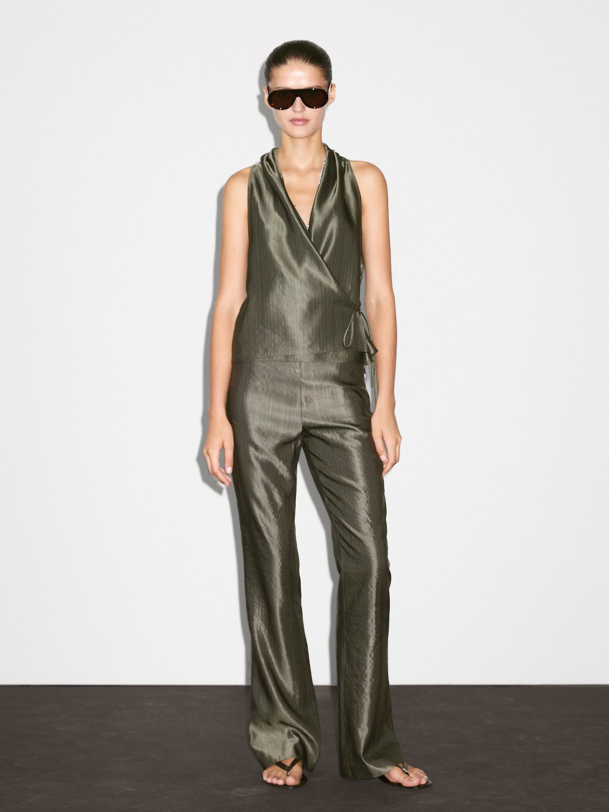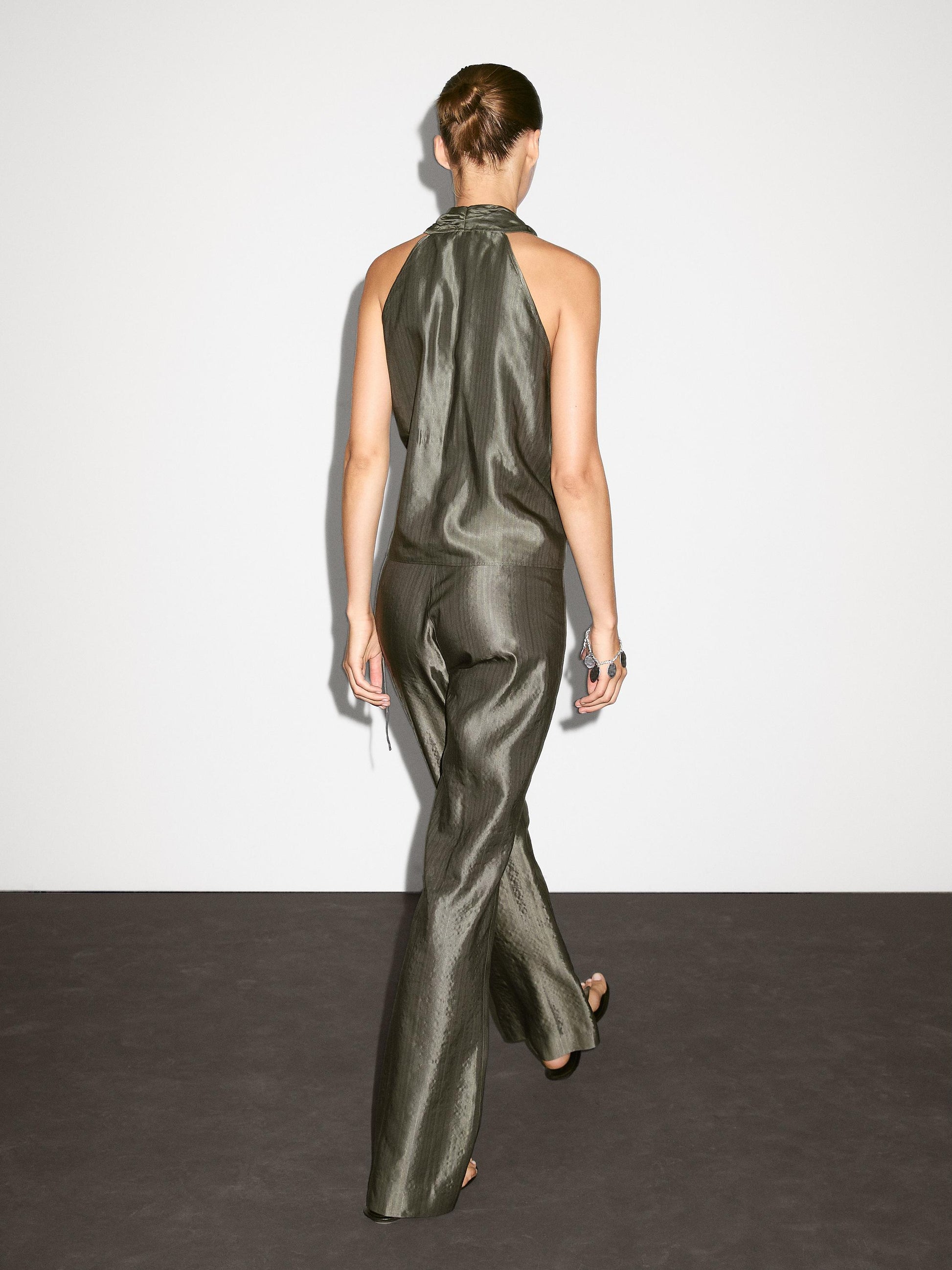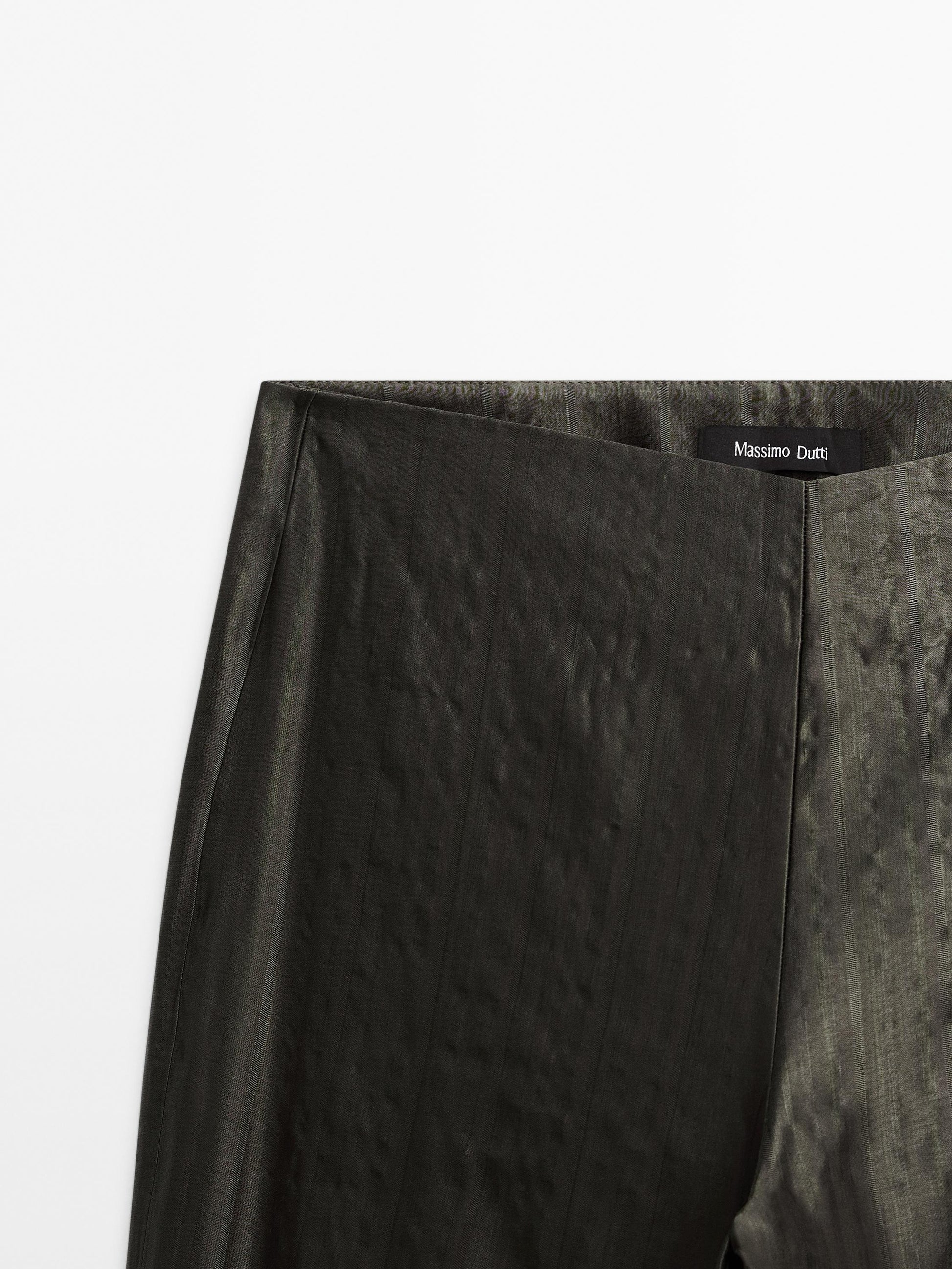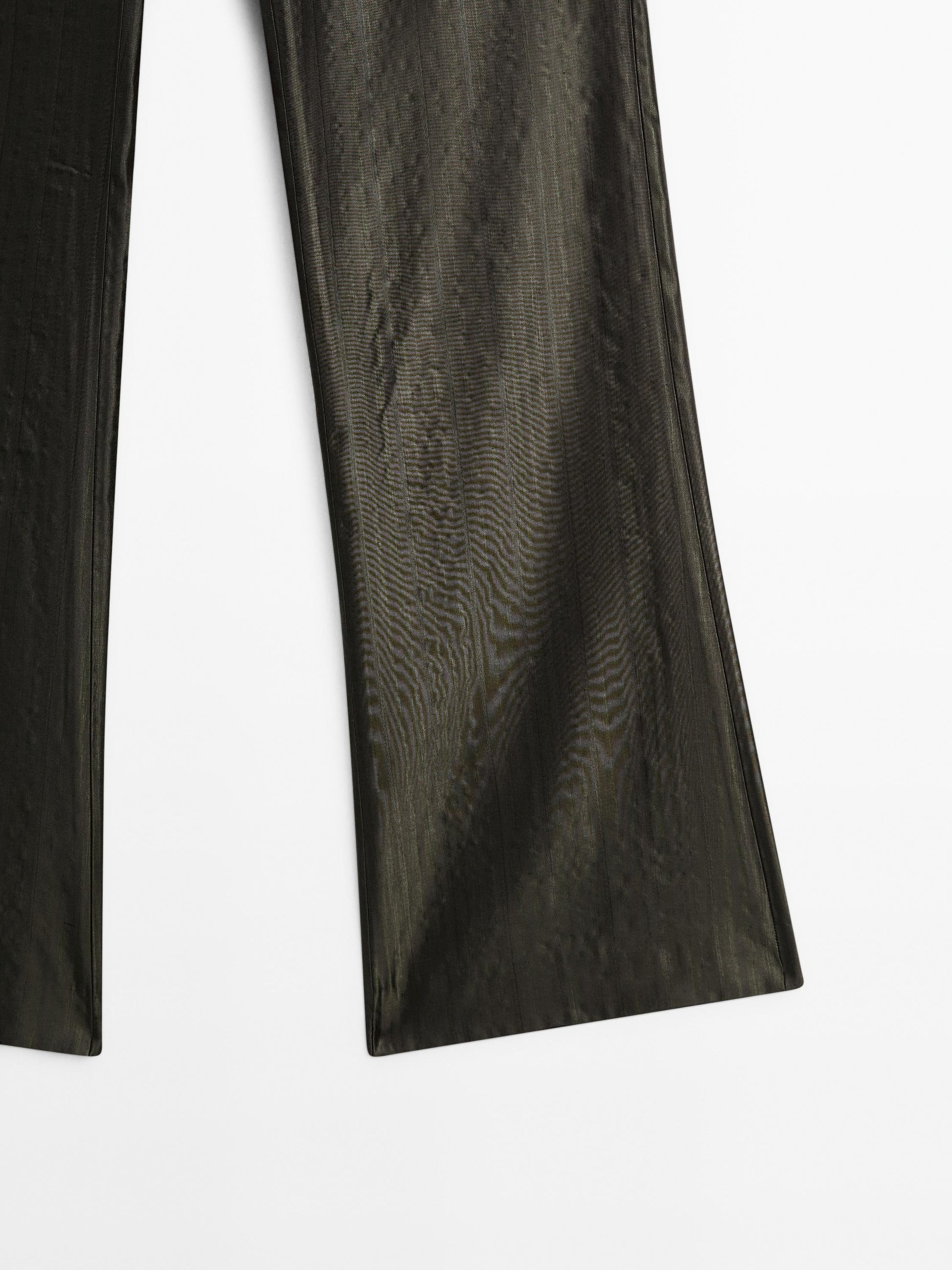 Flare fit trousers this fit provides a tailored fit at the hips and thighs that progressively widens out from the knee, creating a flared effect. Mid-waist. Jacquard print. Side zip fastening. Matching garment available.