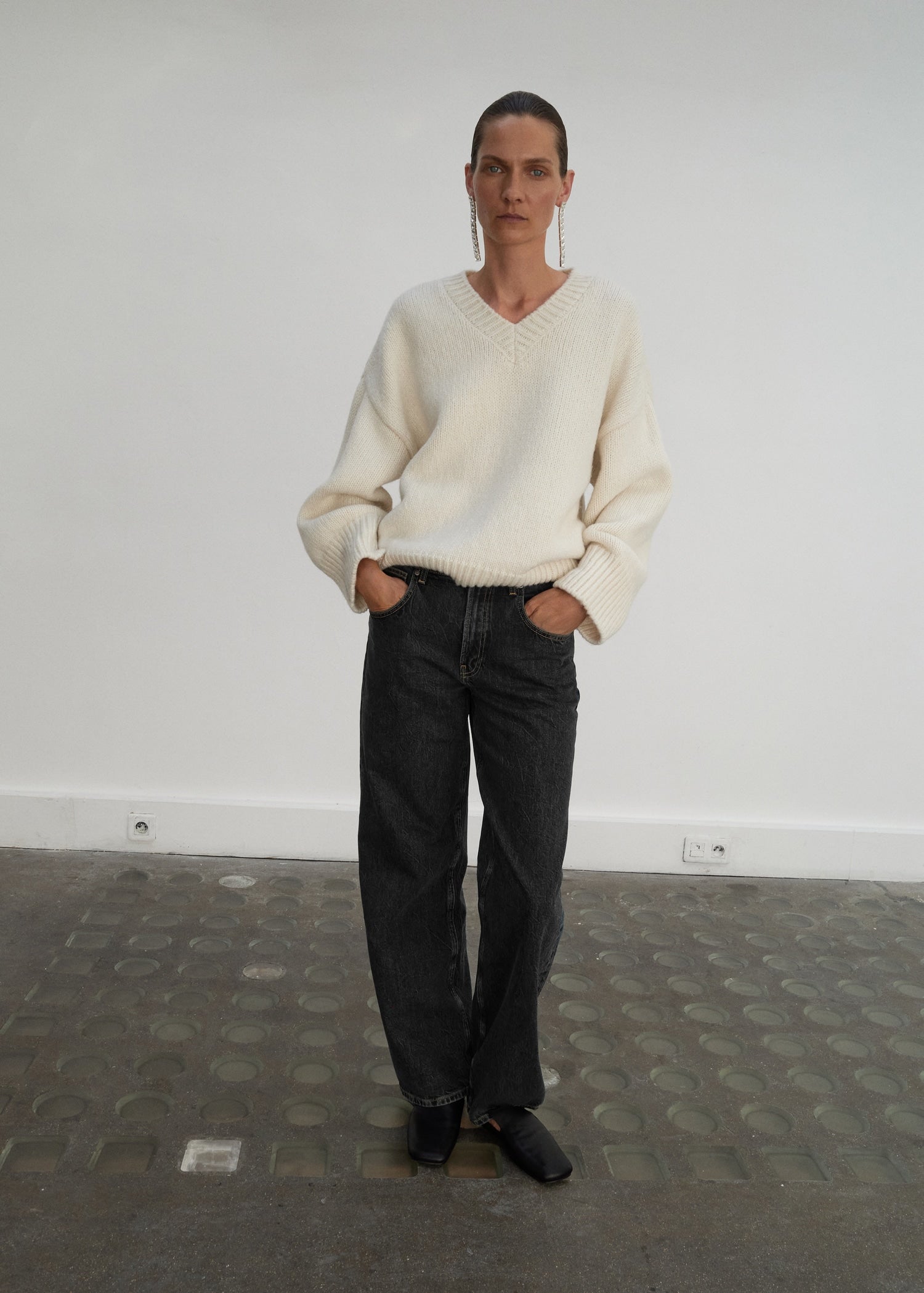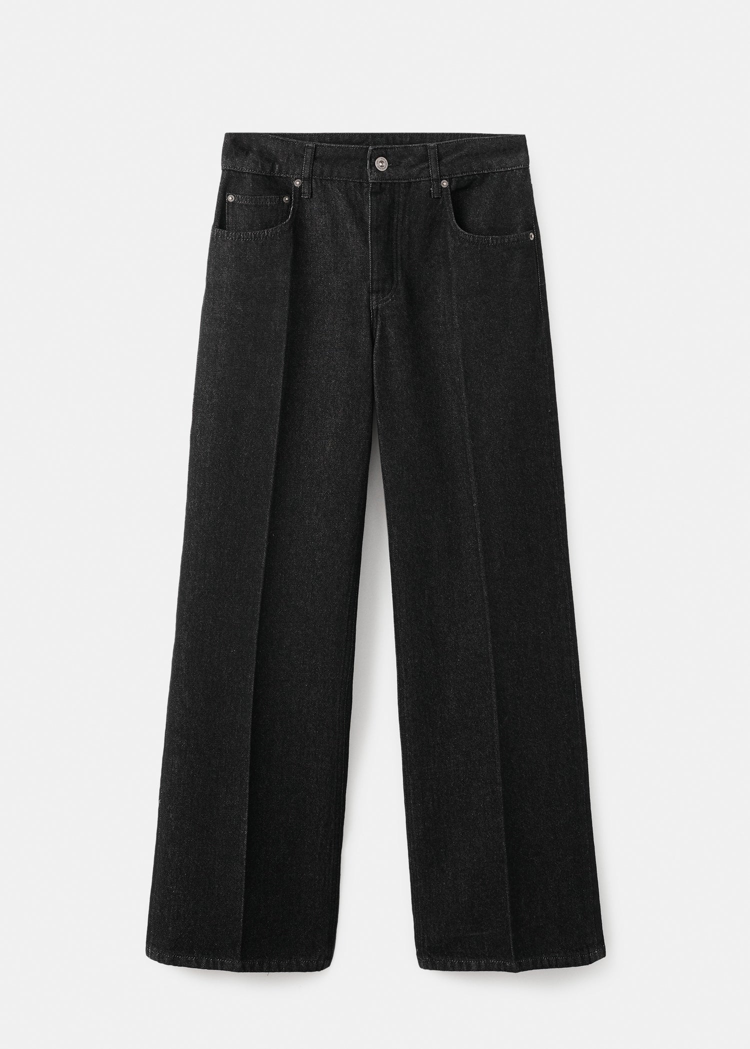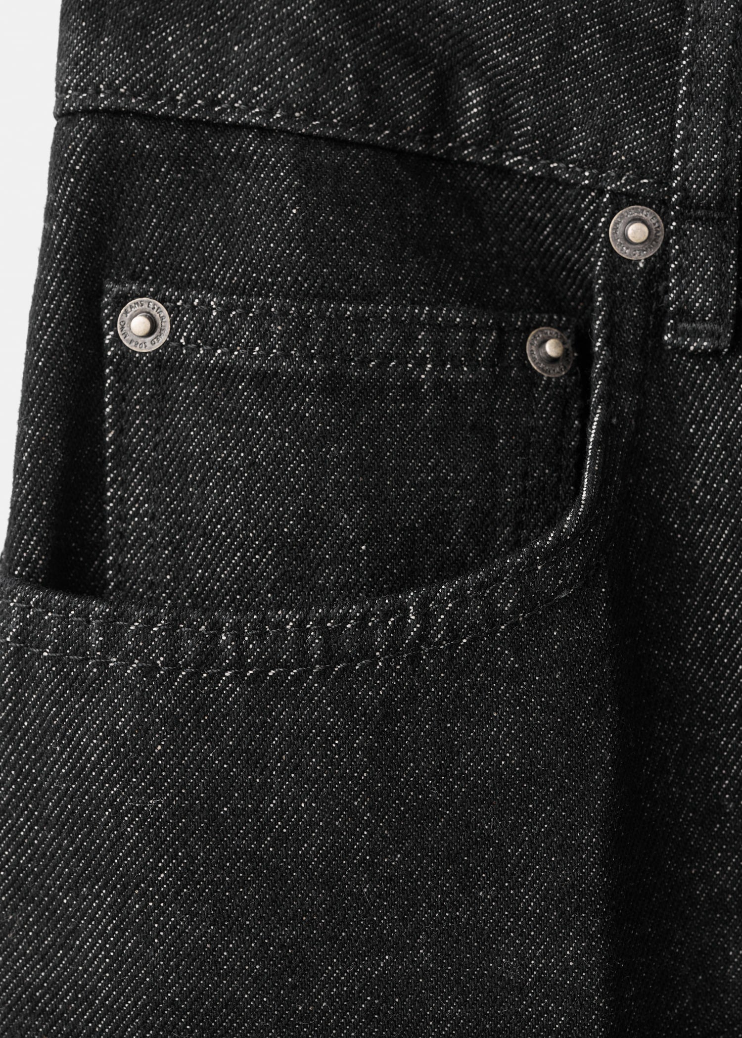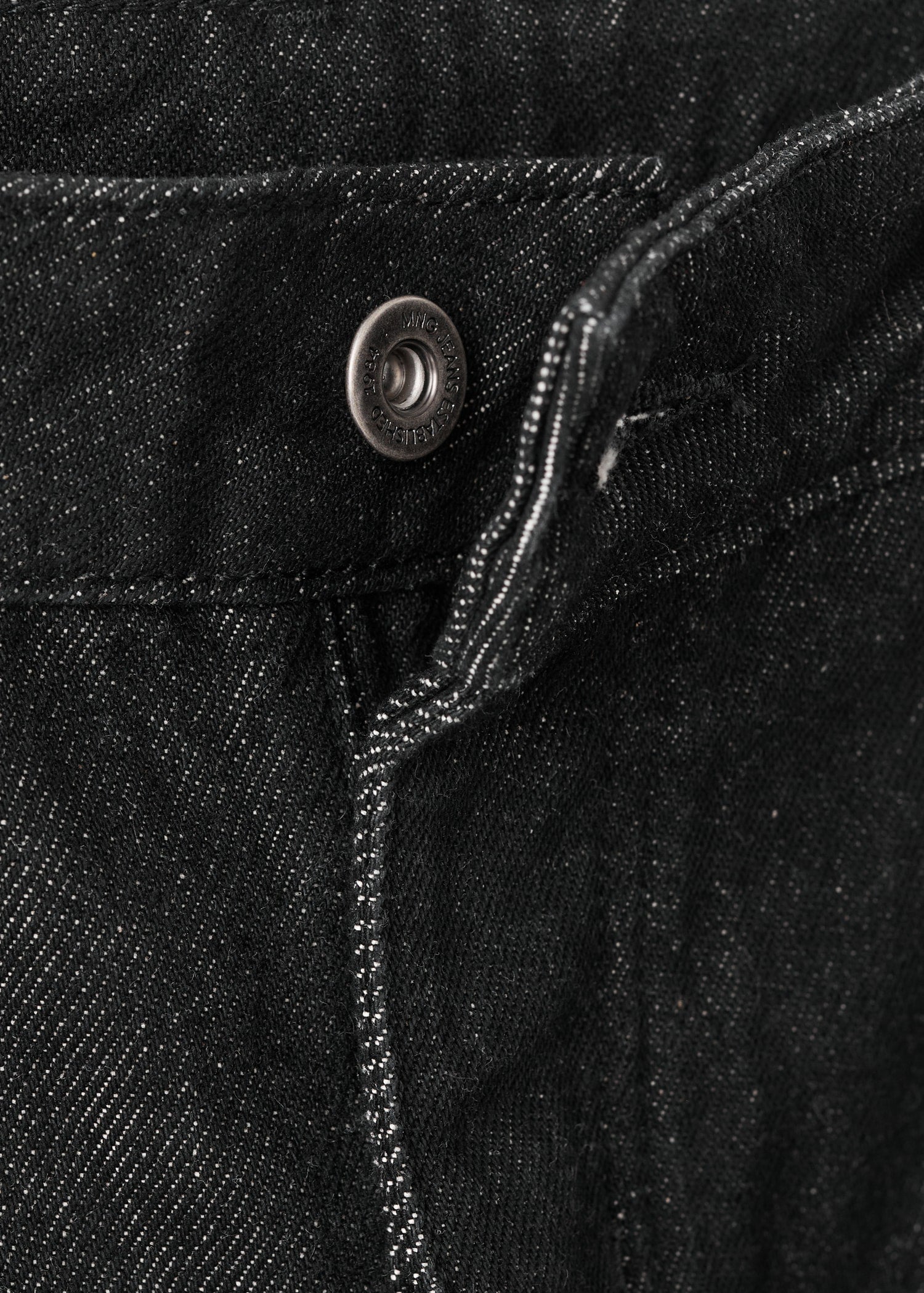 Denim-style cotton fabric. Long design. Straight Design. Mid-rise. Belt loops. Six pockets. Button up. Selection Collection.