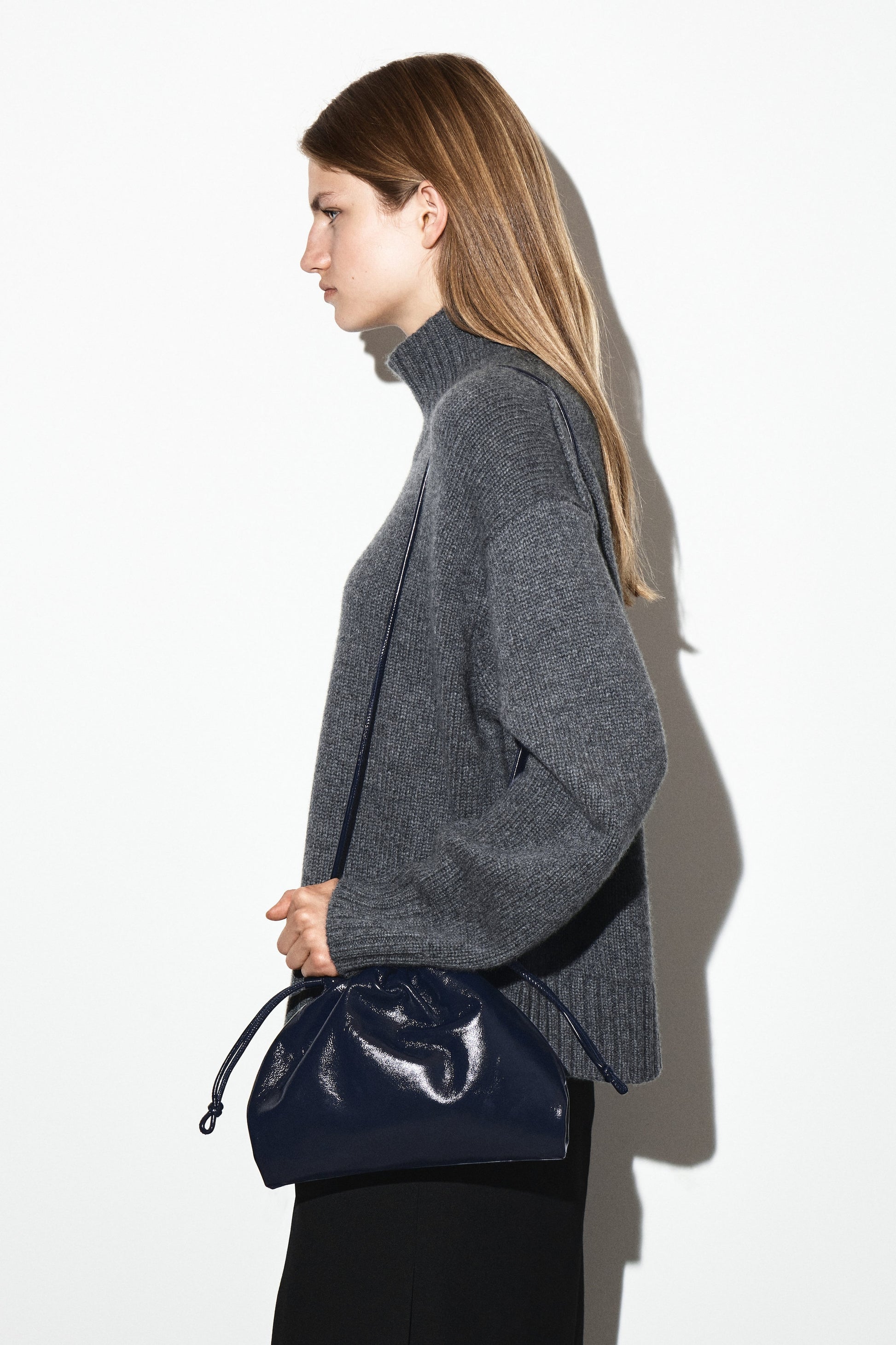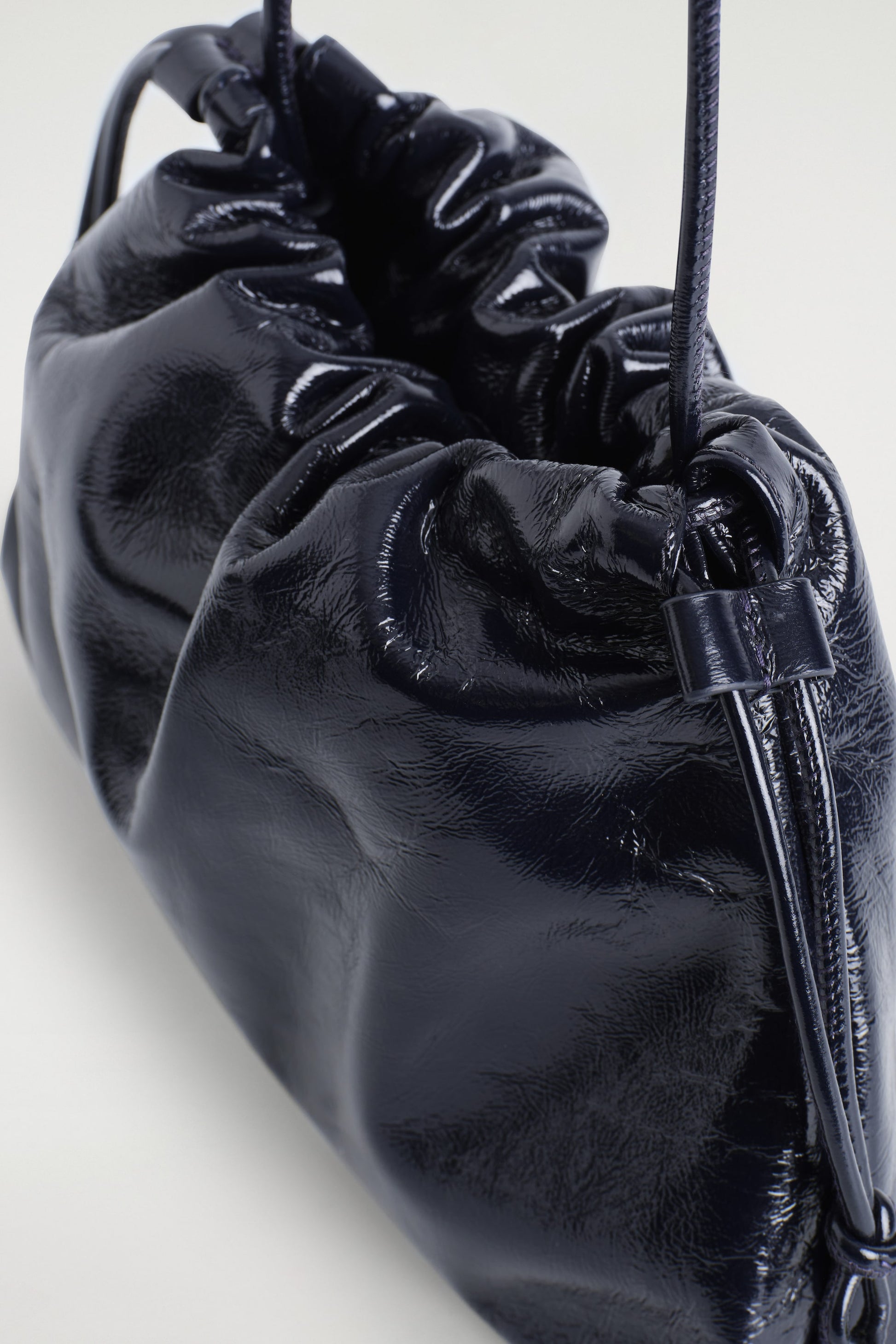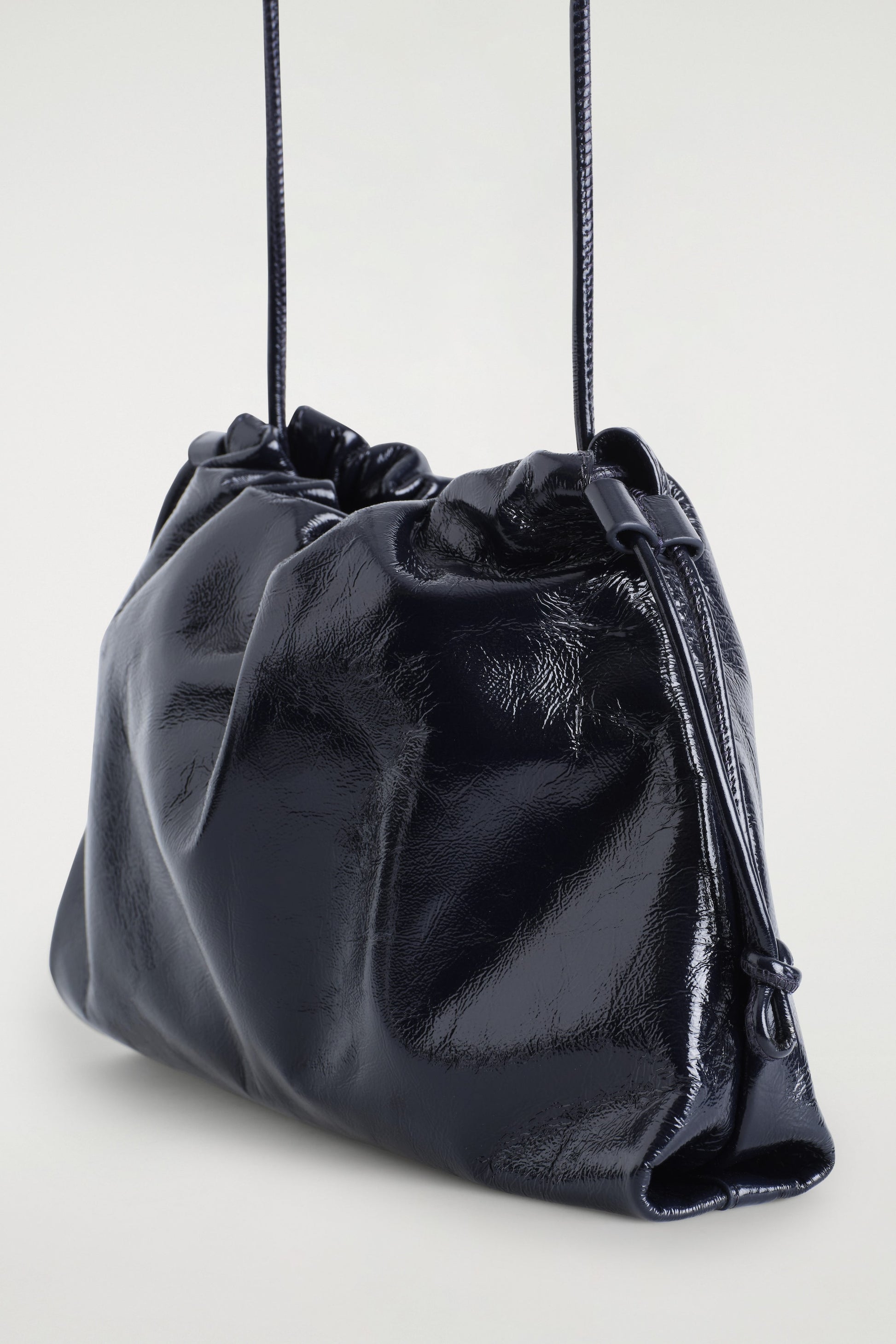 The Cavatelli clutch is a COS icon that elegantly transitions from day to evening. Scaled down to mini proportions, this version is crafted from premium glossed leather and shaped with knotted drawstrings at either side that create an exaggerated, softly gathered profile. Our stylists suggest tucking it under one arm.