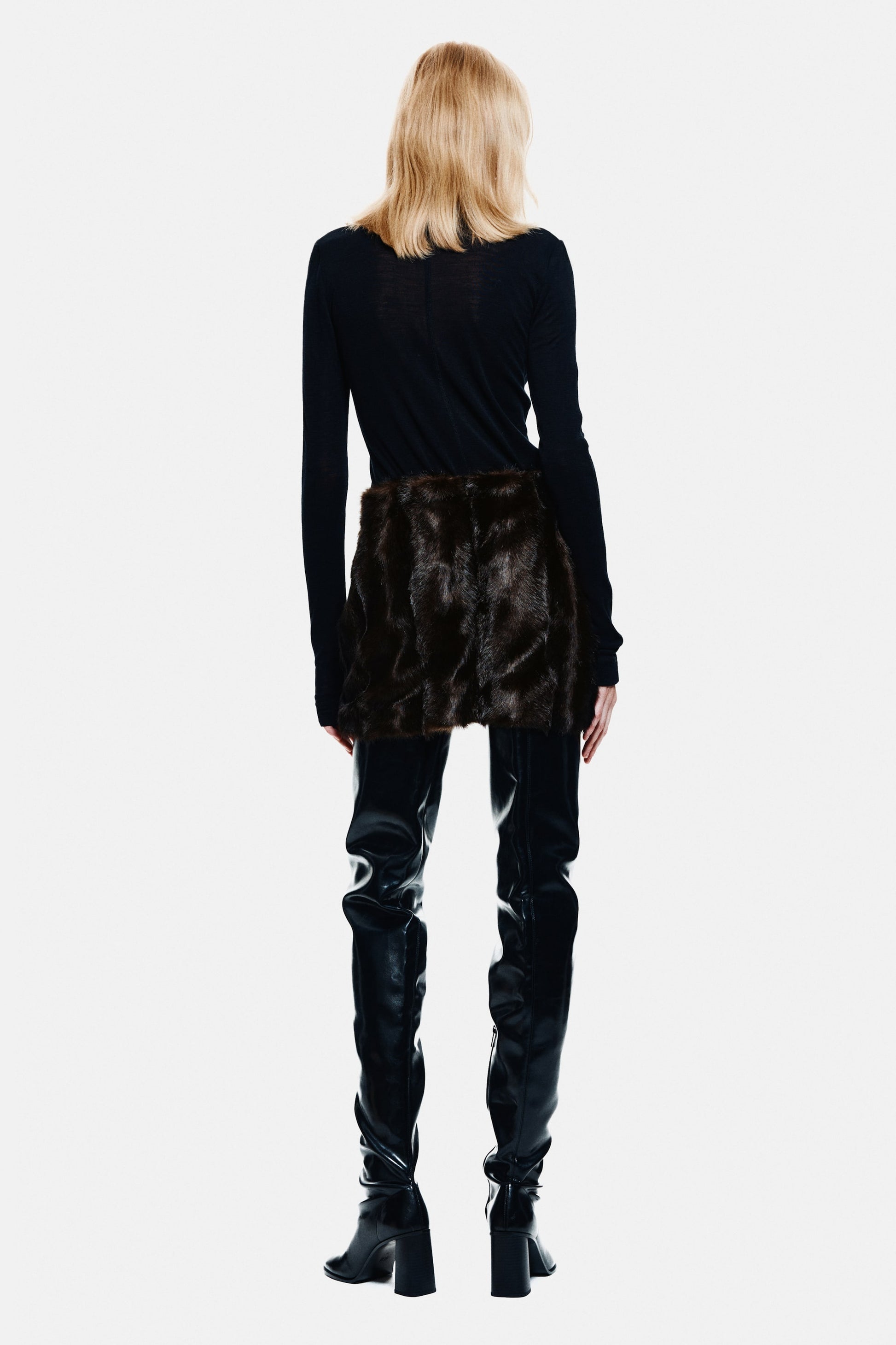 Mini skirt in soft, fluffy fabric featuring a regular waist with a concealed zip and hook-and-eye fastener at the back. Lined.