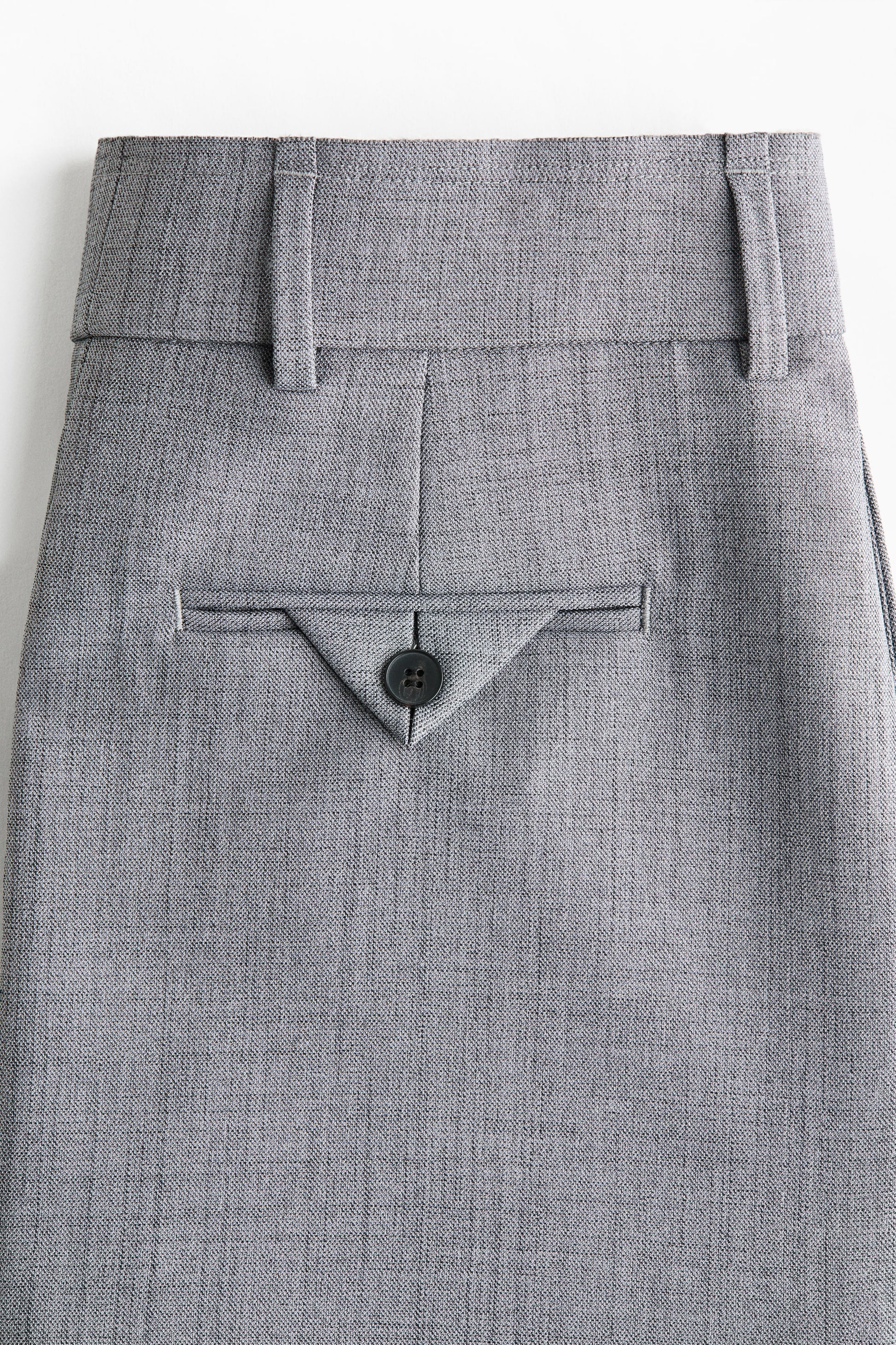 Fitted mini skirt in woven fabric with a low waist and an extended, raw-edge waistband. Zip fly with a concealed button and hook-and-bar fastening. Discreet side pockets and jetted back pockets.