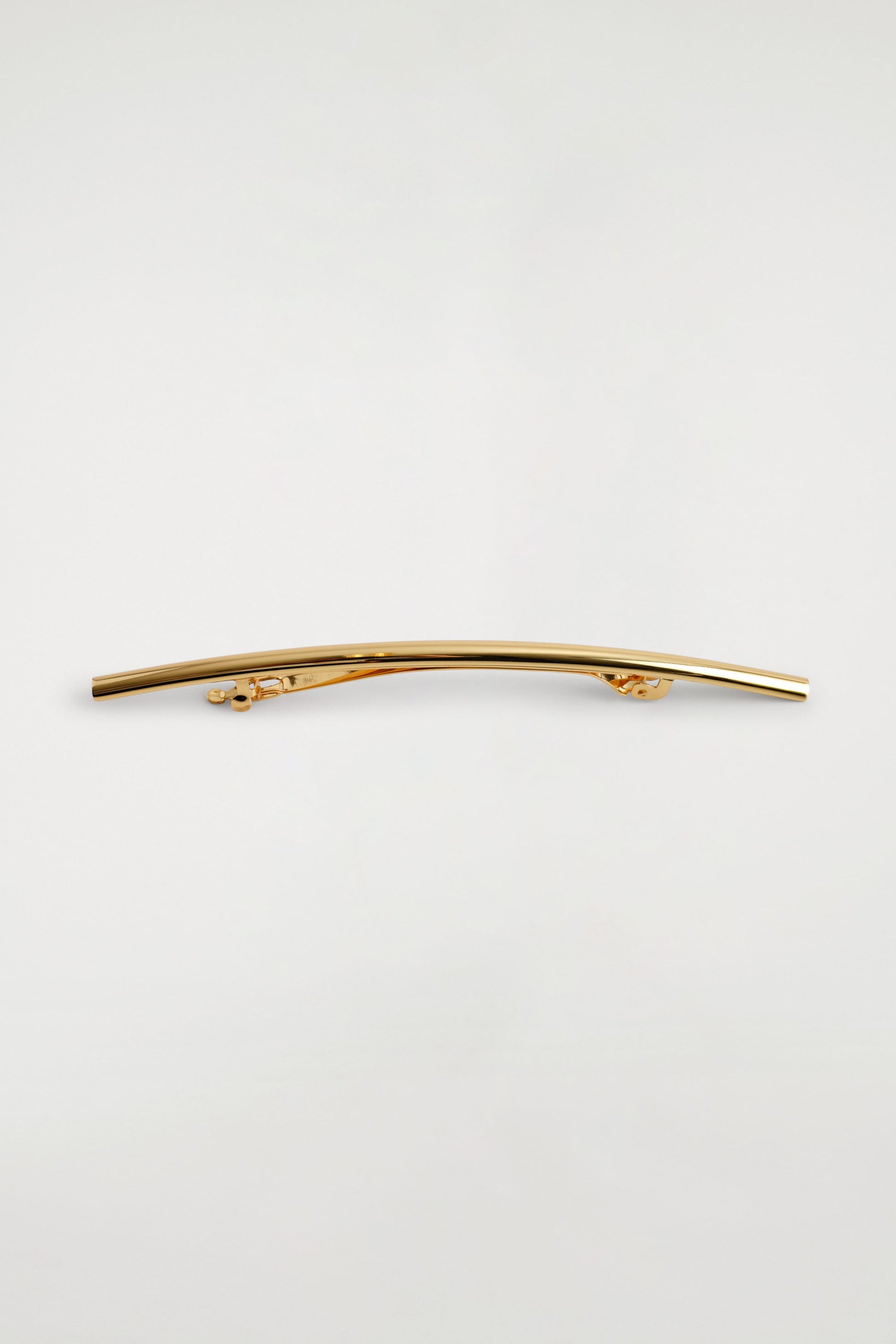 Evoking a modern minimalism, this hair slide is sculpted in a linear shape and crafted from gold-plated metal that's polished to a high shine. Style it as part of a slicked-back look or pin it to the lapel of a blazer.