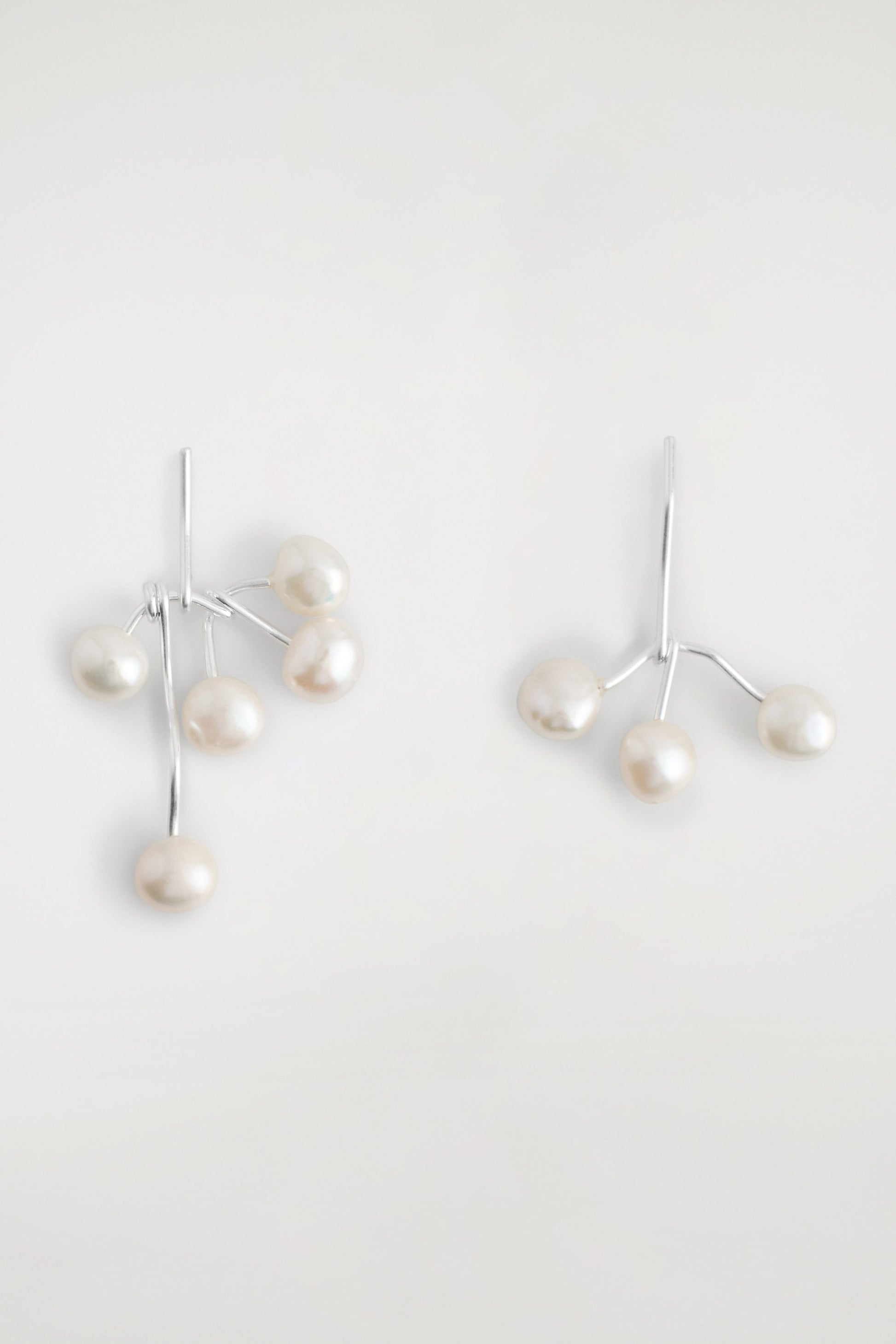 Talking-point accessories lend personality to even the most pared-back looks. Cascading beautifully from the ear, these mismatched earrings emulate freshwater pearl buds falling from silver-plated wire stems. Style them with your hair pulled back.