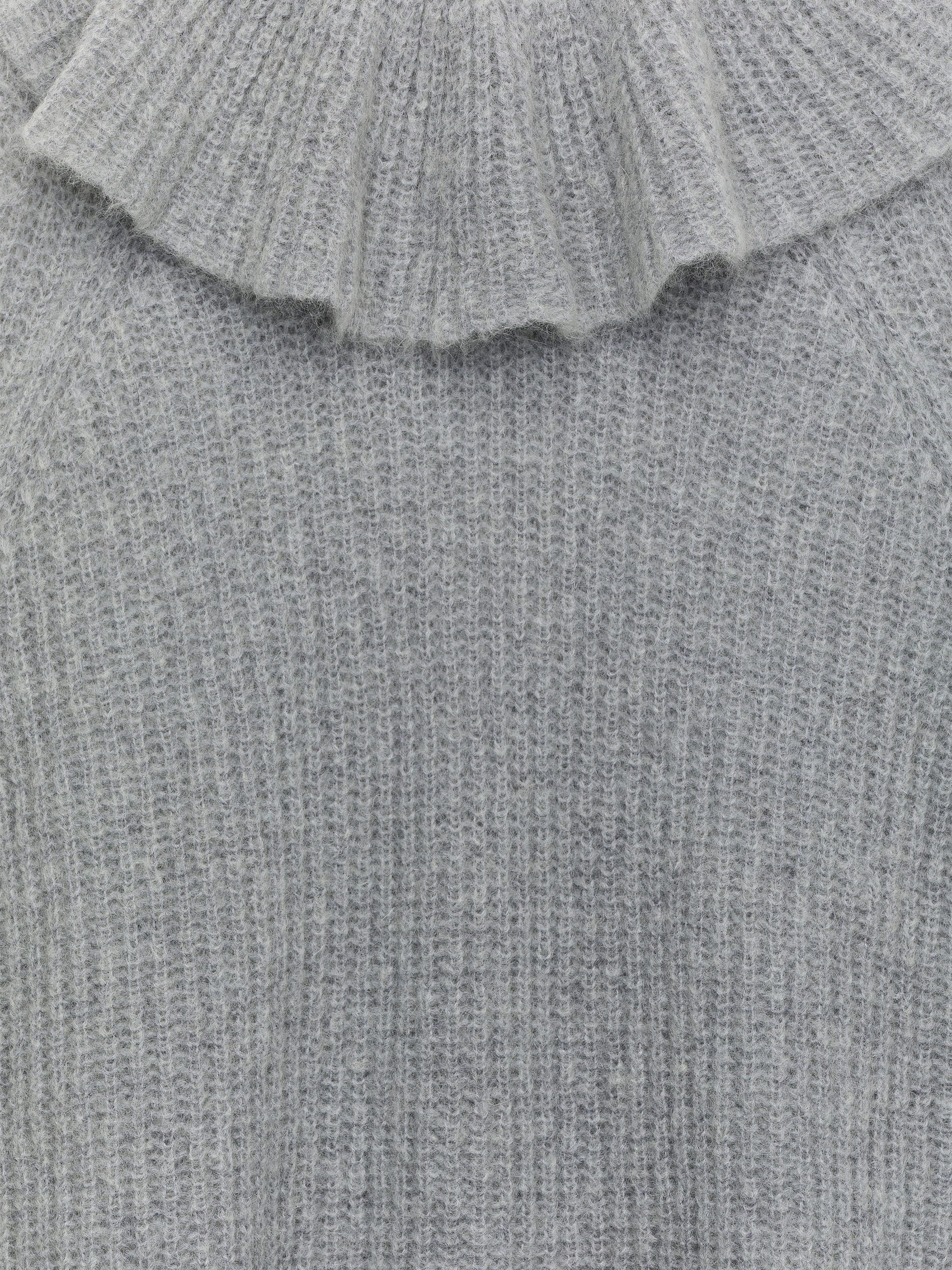 Jumper crafted from a mohair–wool blend, featuring a relaxed fit and ruffle detailing at the neckline and cuffs. This style contains 55% RMS Mohair and 15% RWS wool (TE-00047206). Products certified to the Responsible Wool Standard (RWS) and the Responsible Mohair Standard (RMS) contain wool and mohair fiber from farms independently certified to animal welfare and land management requirements.