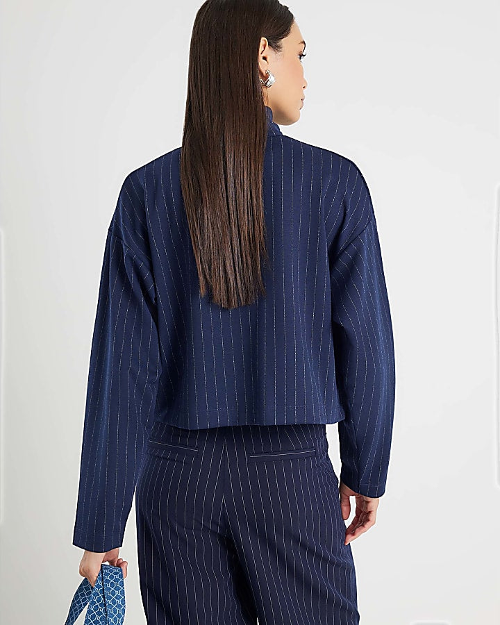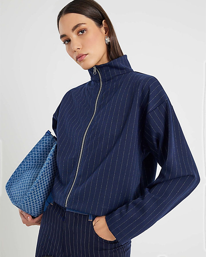 Navy Long Sleeve Pinstripe Zip Through Jacket