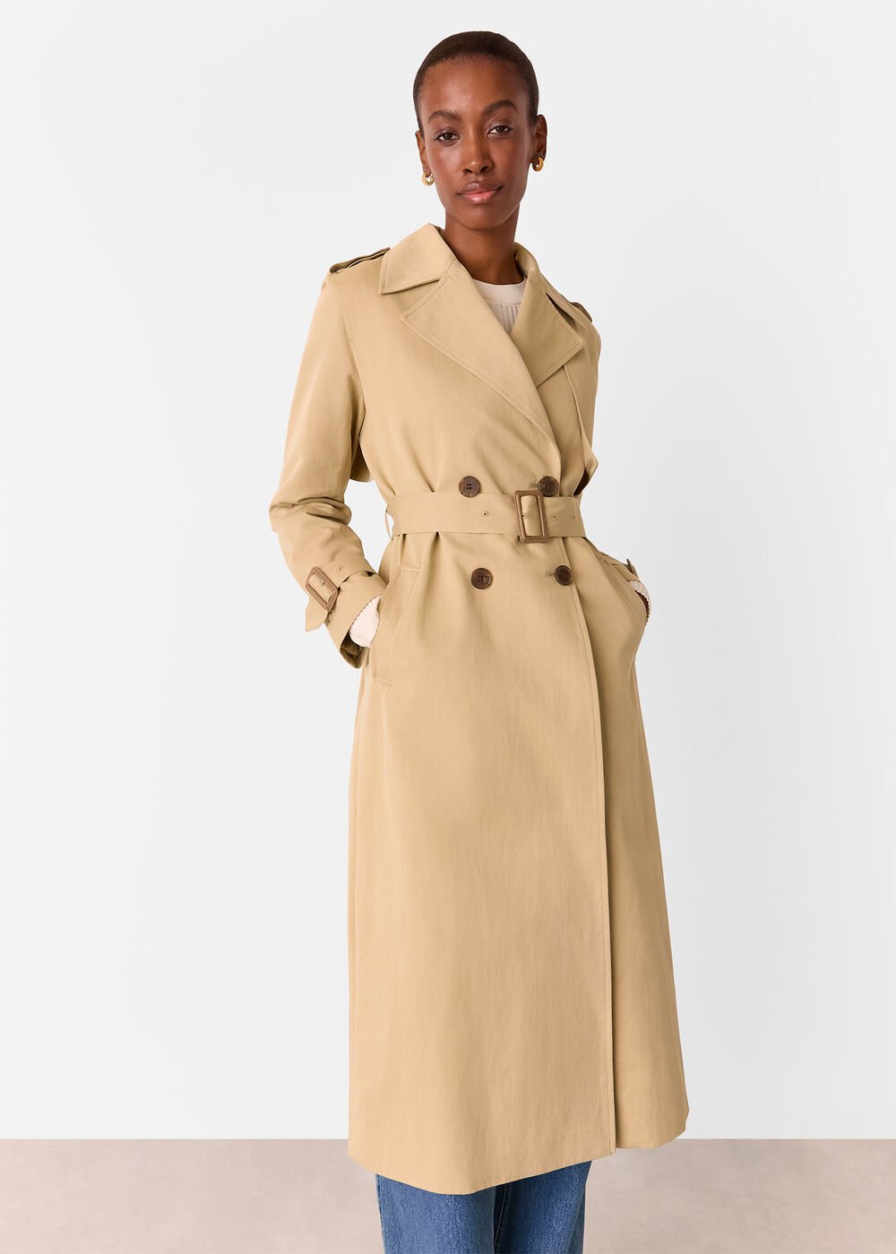 Our Valentina Trench Coat is a wardrobe classic, designed to be lightweight, effortless, and complement every style. Its perfect for your transitional wardrobe, with its timeless neutral colour and airy feel ensuring comfort and elegance. Cinch the waist with the belt to enhance your silhouette for a polished look.