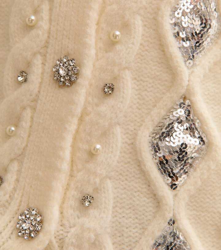 Snuggle up in this sequin-embellished cable knit cardigan for a cosy and stylish look. Perfect for adding a touch of sparkle to your everyday look or for brightening up a casual evening out.