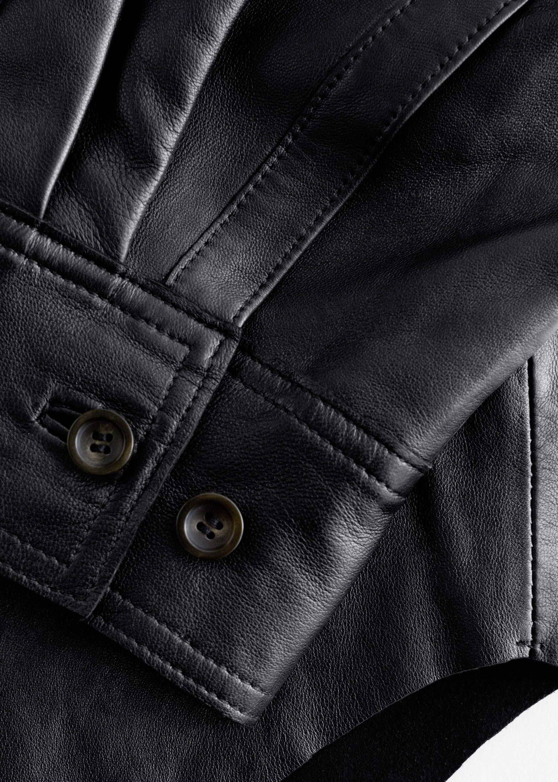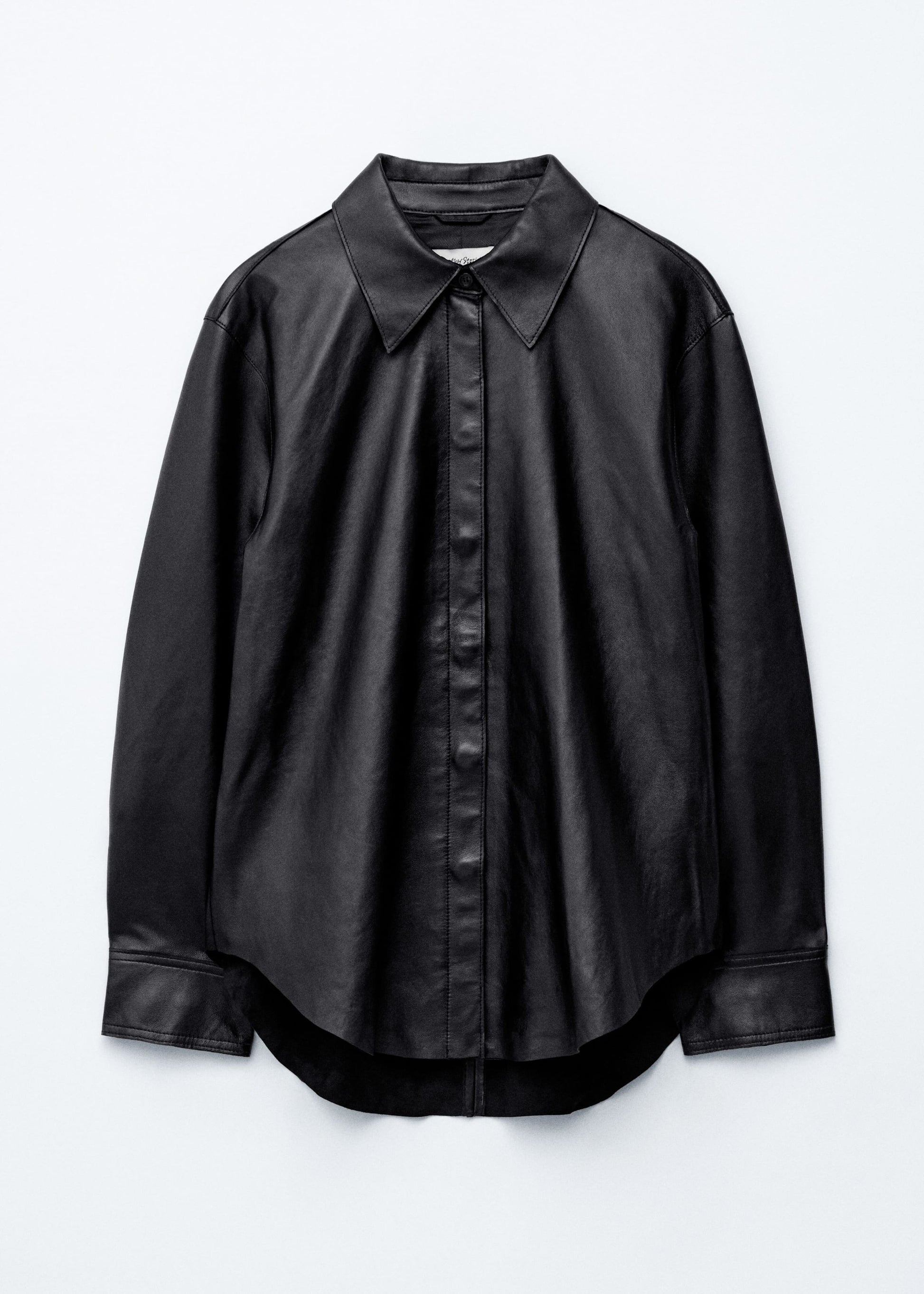 Crafted from soft nappa leather, this shirt is cut in an oversized silhouette and features a classic collar, raw edges, and a hidden button placket.