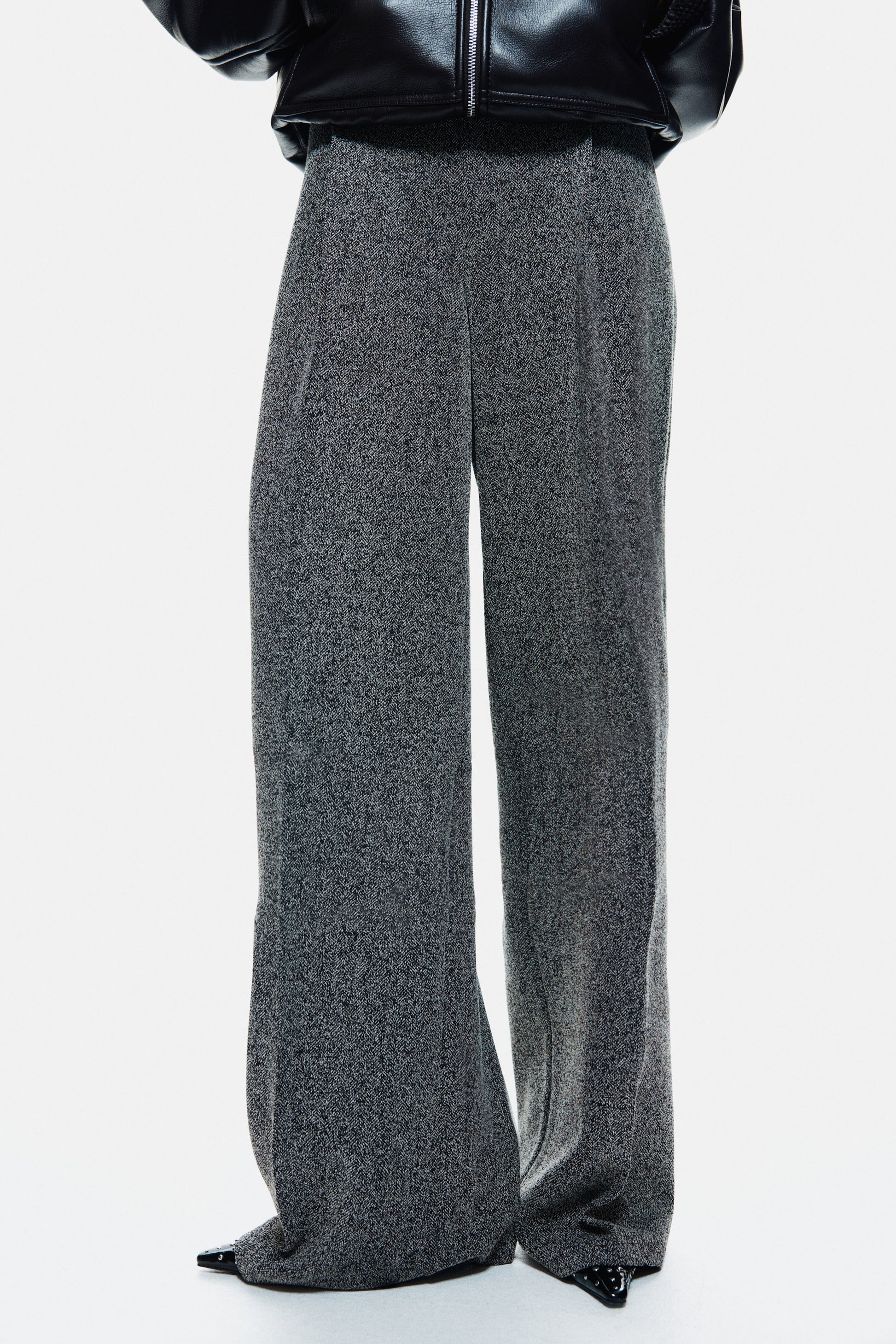 Trousers in jersey featuring a high waist with concealed elastication. Straight legs with pleats and creases at the front.