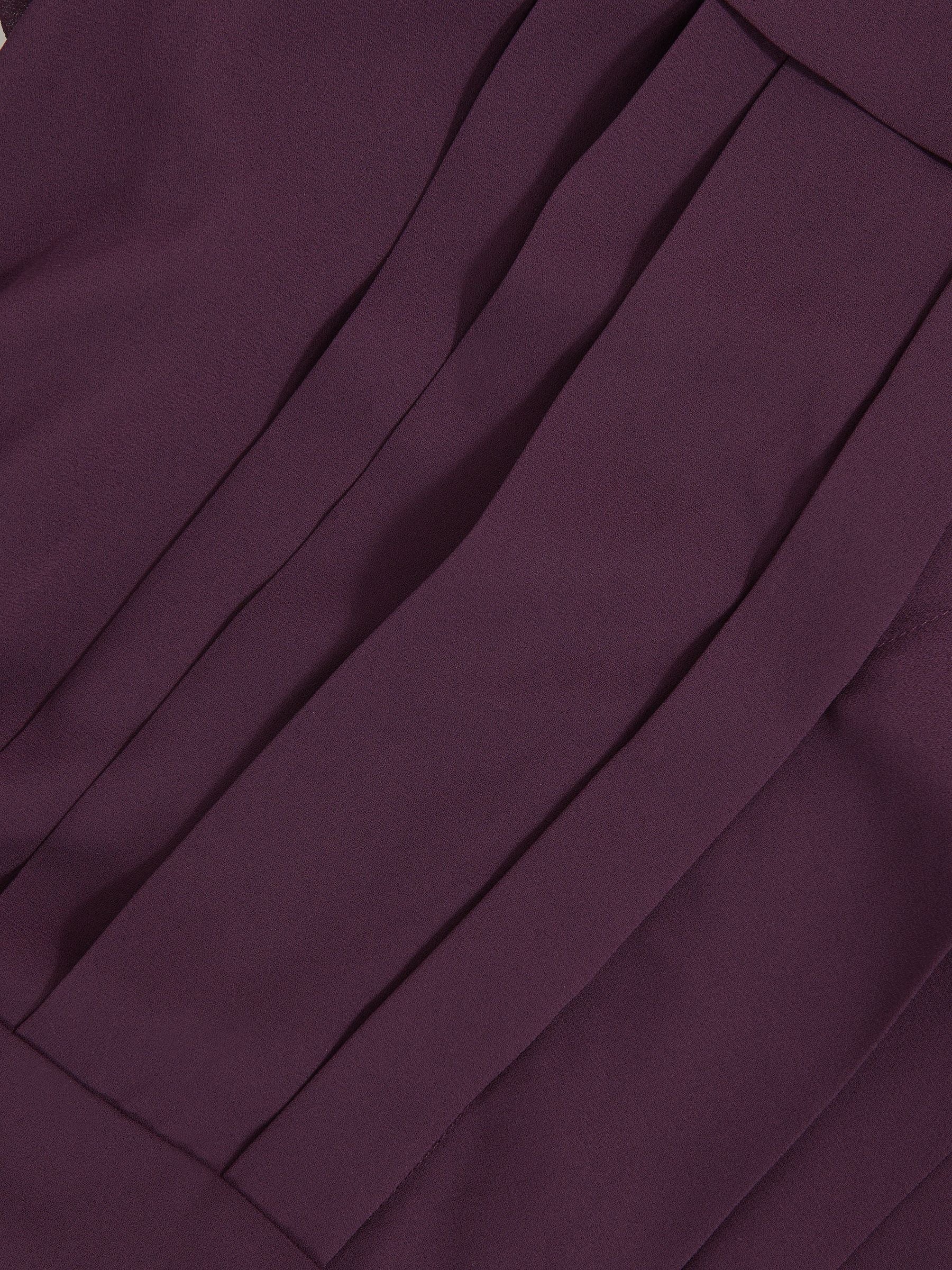 Pleated Sheer-Sleeve Mini Dress in Burgundy