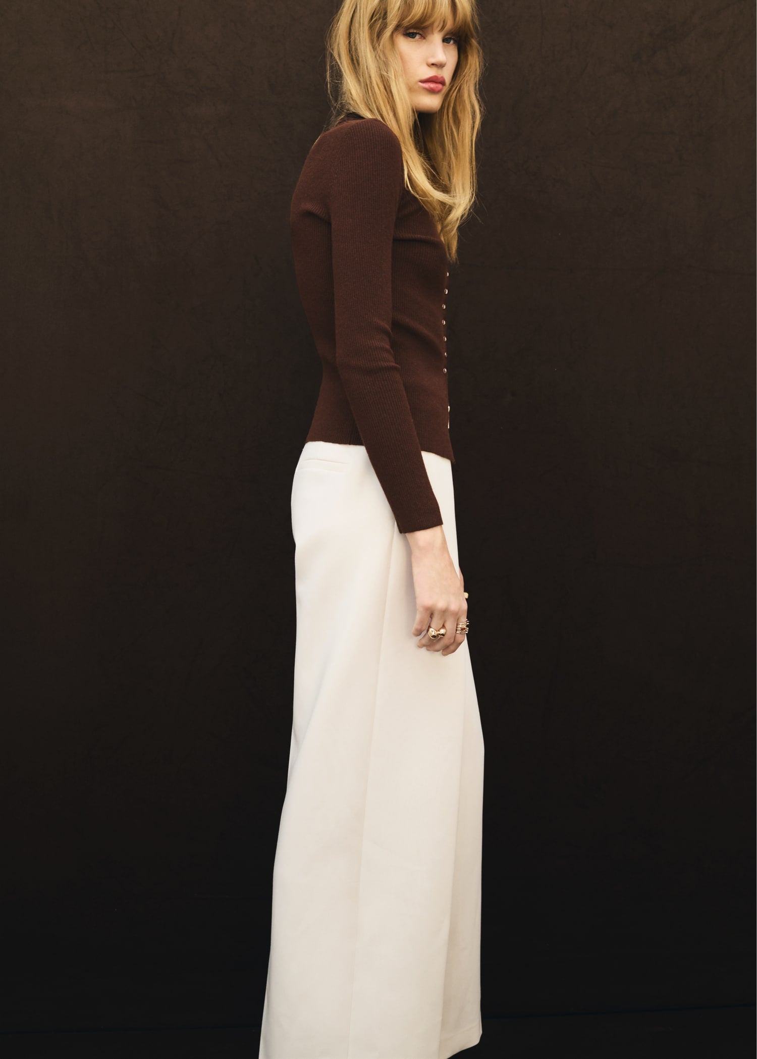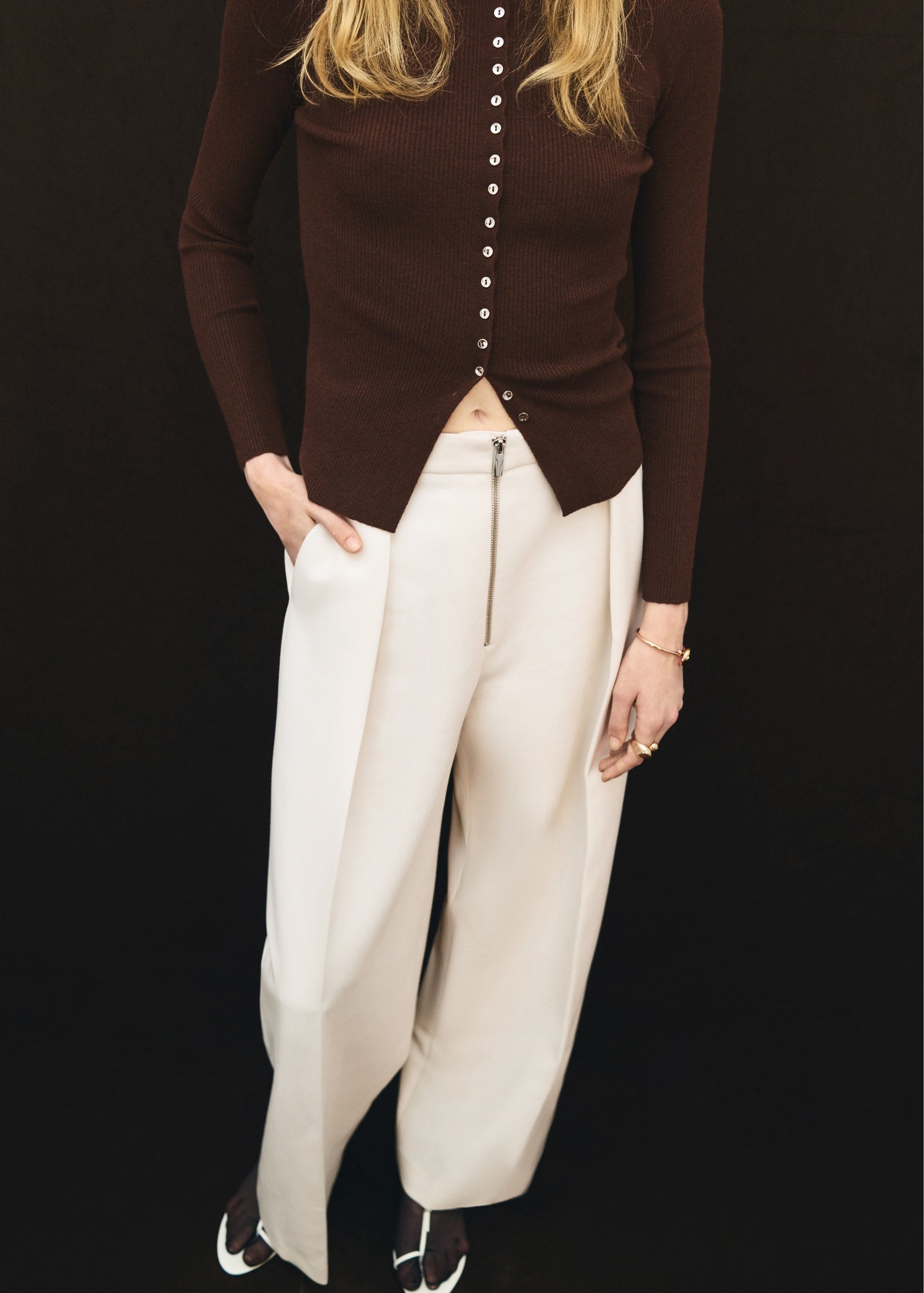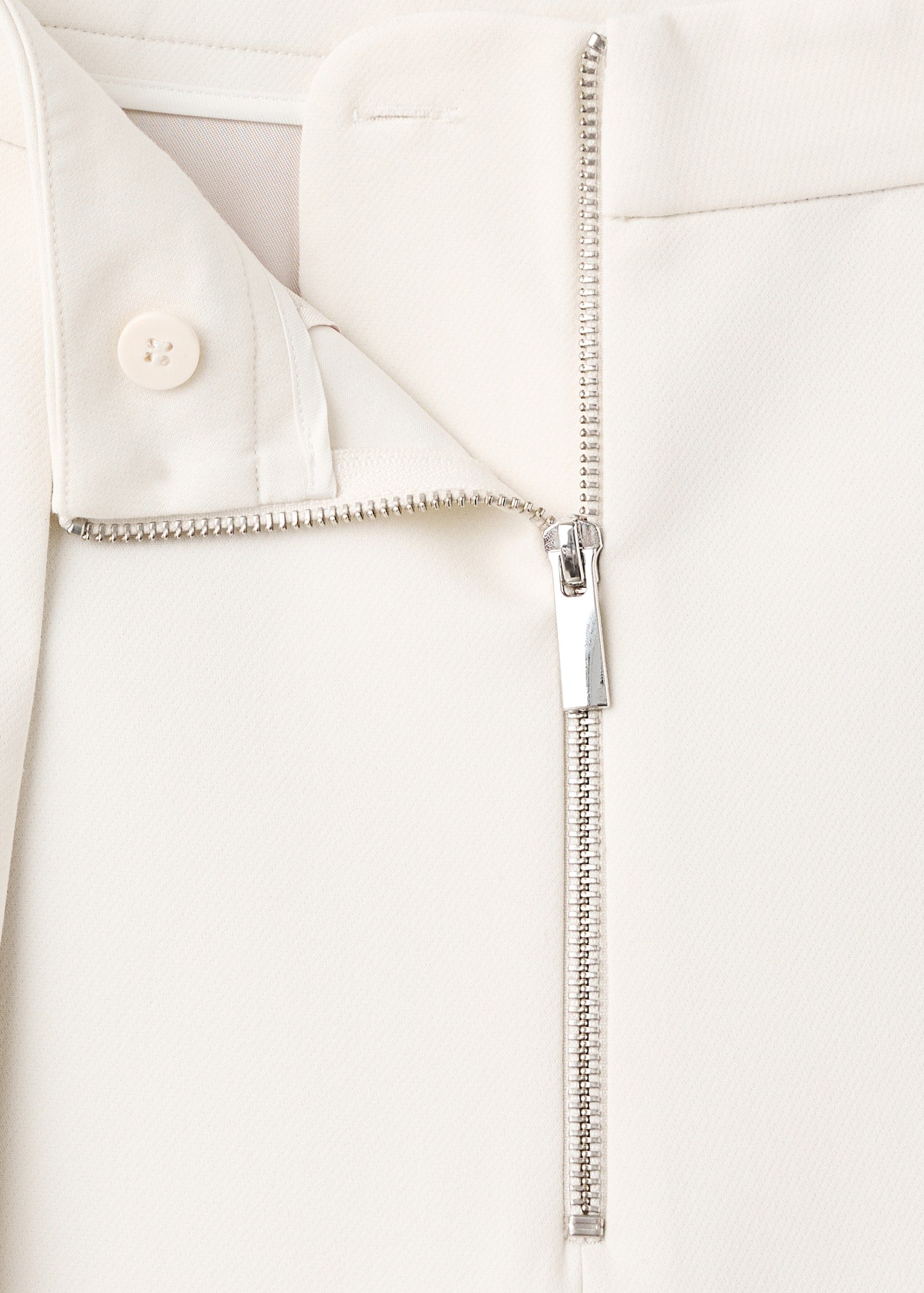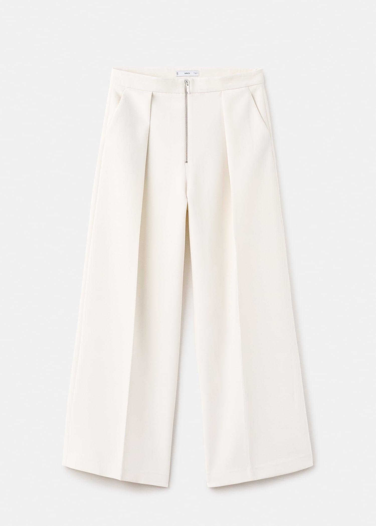 Long design. Straight design. Pleats detail. Two side pockets. Zip closure.