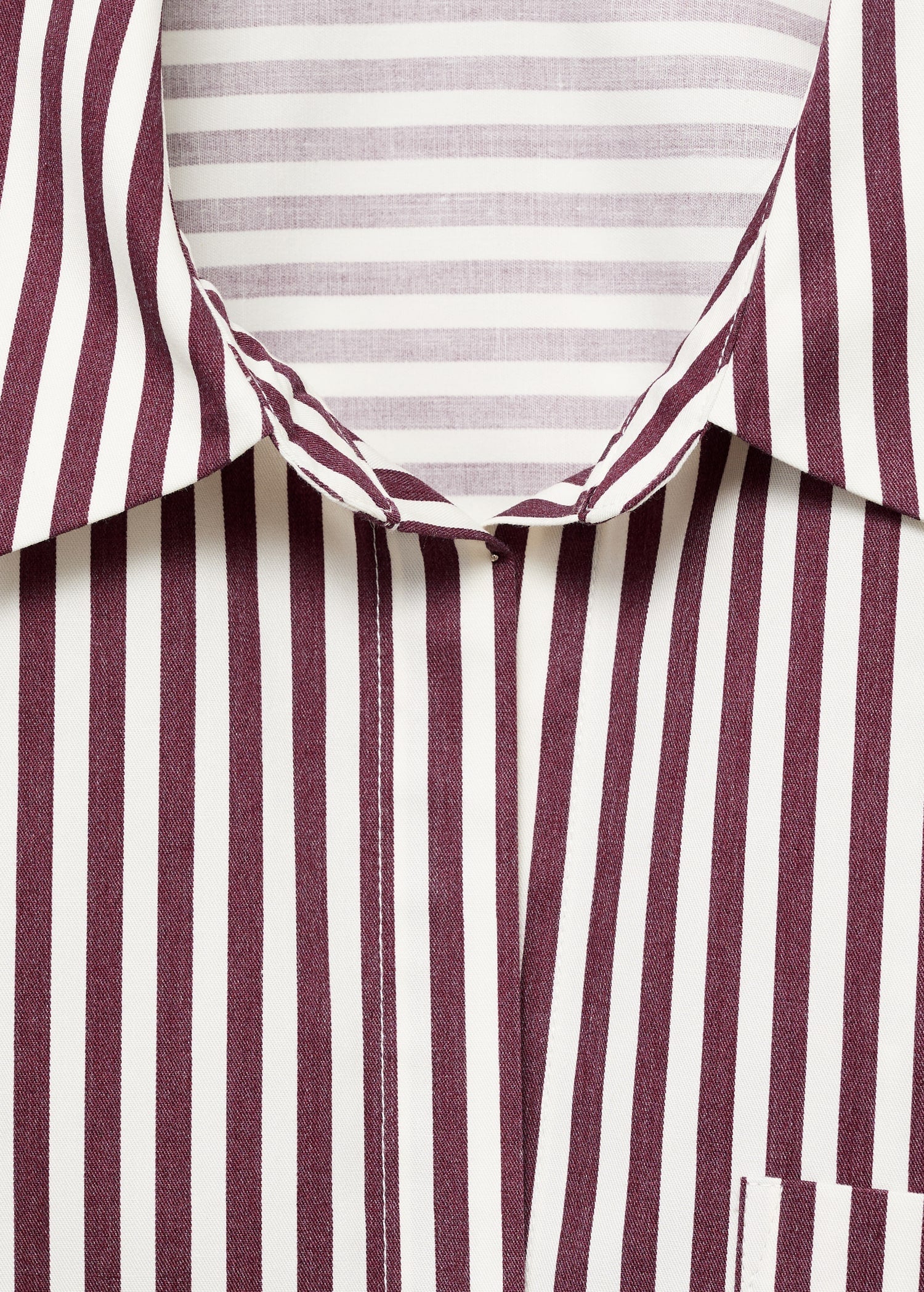 Cotton blend fabric. Straight design. Striped print. Long sleeves with buttoned cuffs. Patch pocket on the chest. Button fastening at the front. Available Plus.