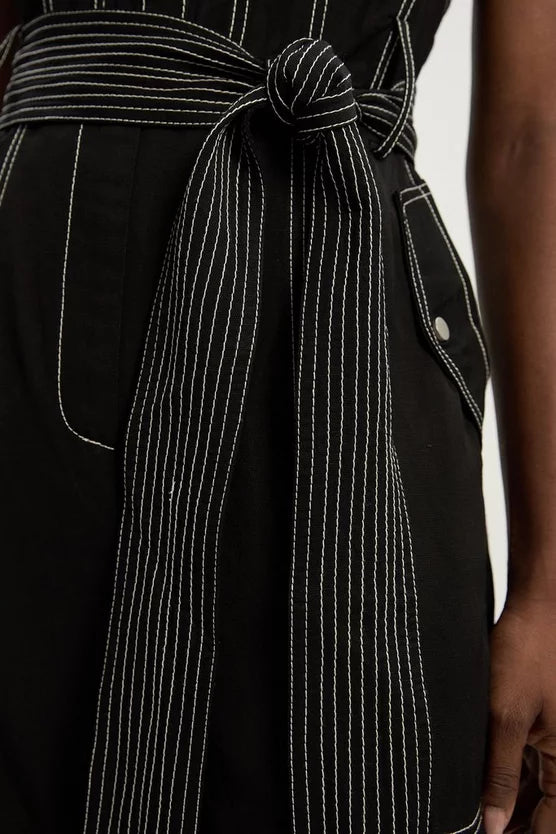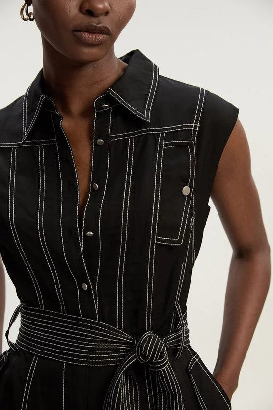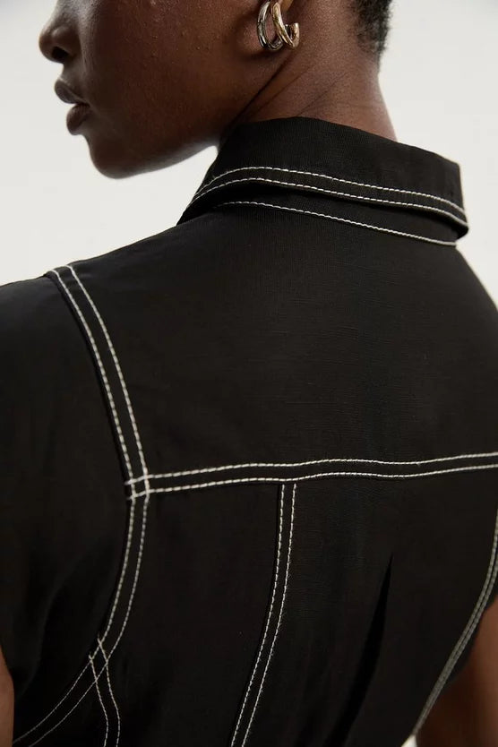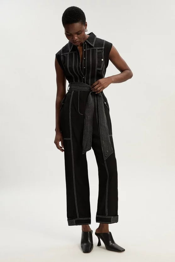 Premium Linen Twill Topstitch Woven Jumpsuit