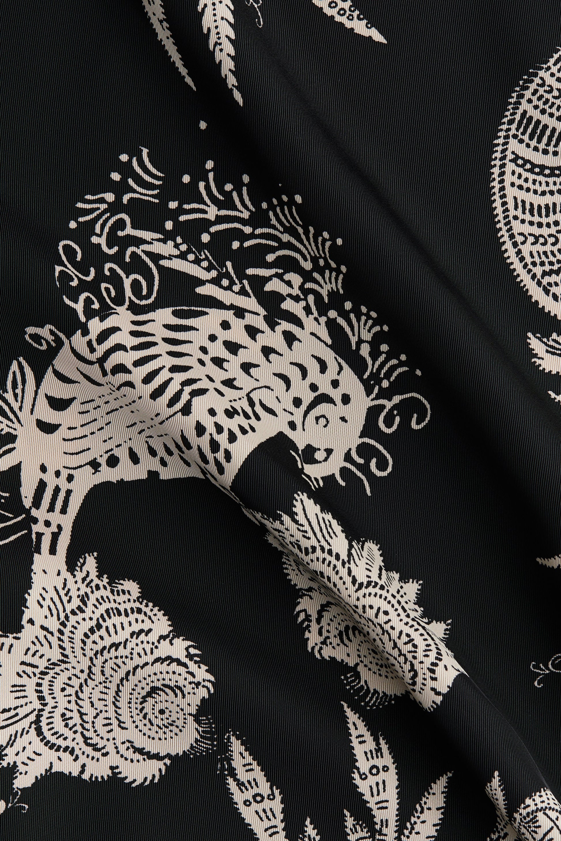 Loose-fit trousers in a printed weave with covered elastication at the waist and straight legs.