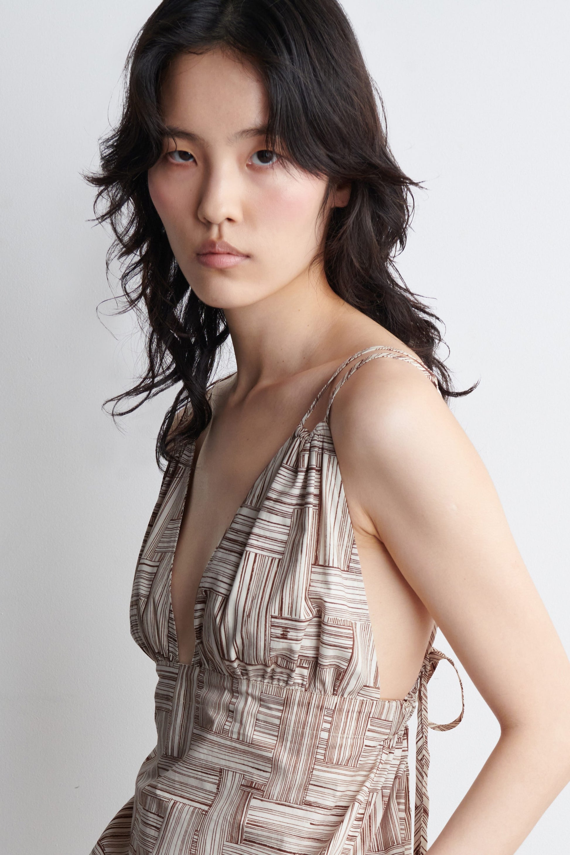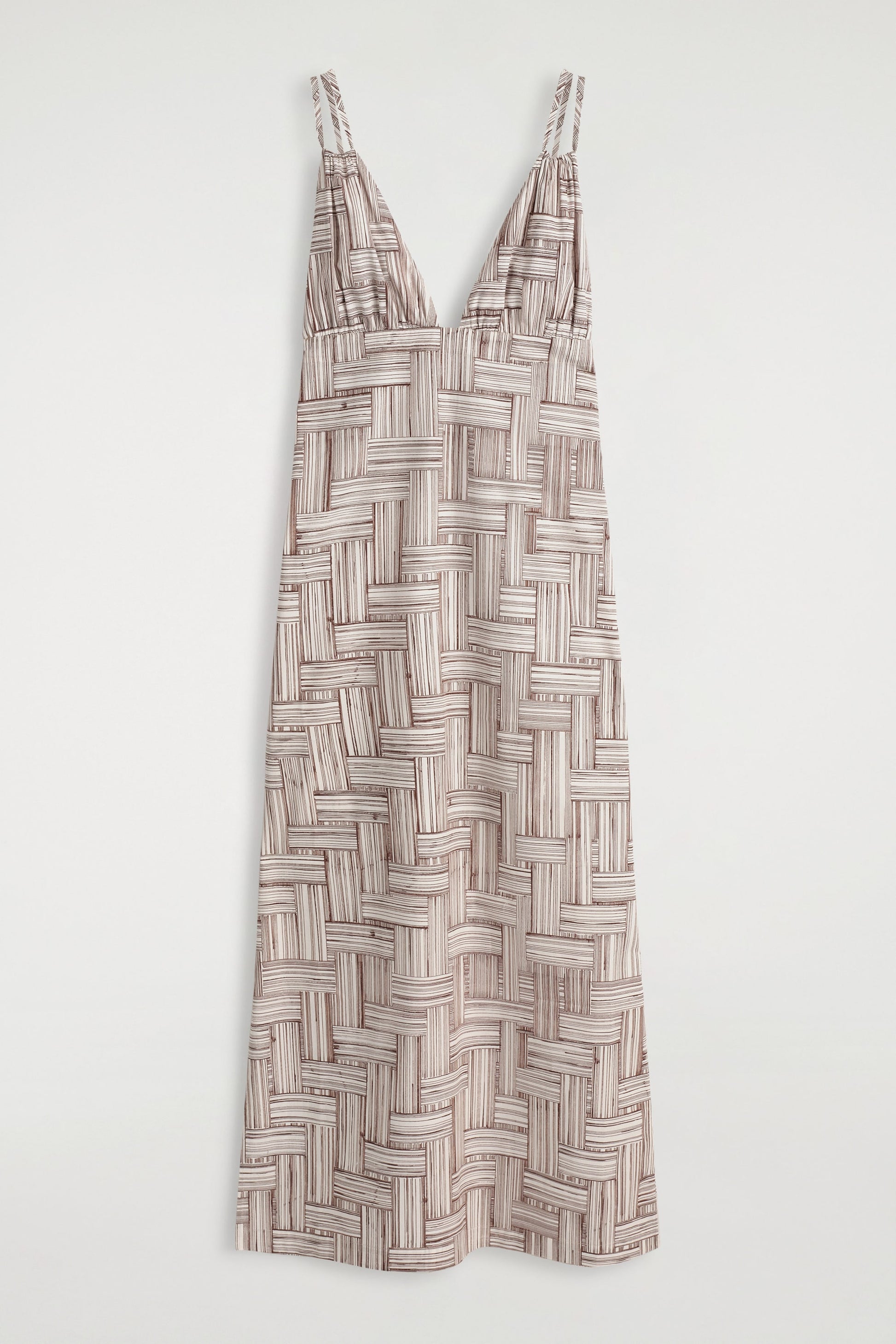 Crafted from soft cotton, this refined maxi dress is cut in a relaxed silhouette with a deep V-neckline, open back and slender shoulder straps. It's patterned with an in-house basketweave motif, carefully created by tracing the fine lines of a hand-woven paper blanket.