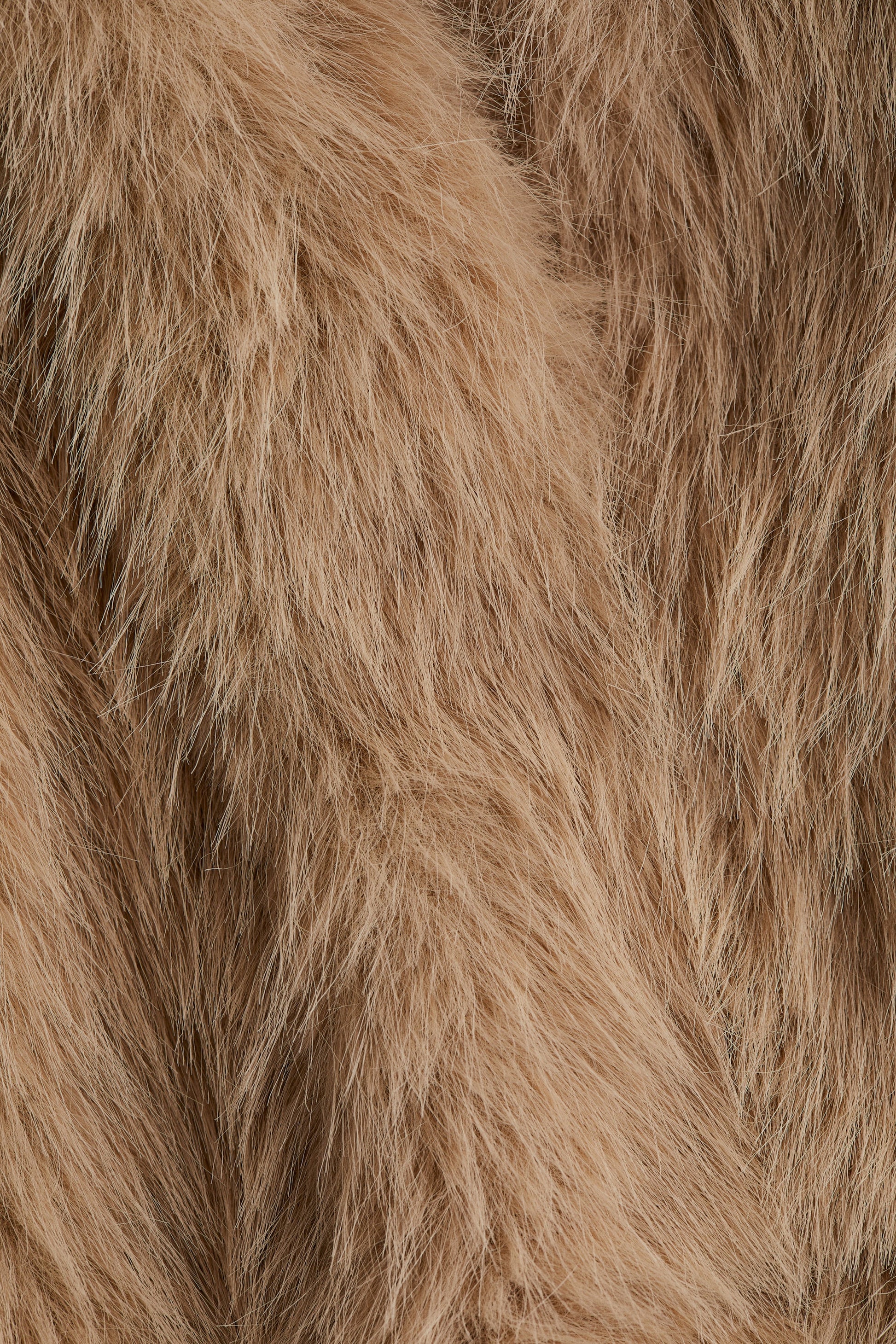Jacket in fluffy fabric with a V-neckline, concealed hook-and-eye fasteners down the front and discreet side pockets. Long sleeves with gathers on the shoulders for a puffy silhouette. Lined.