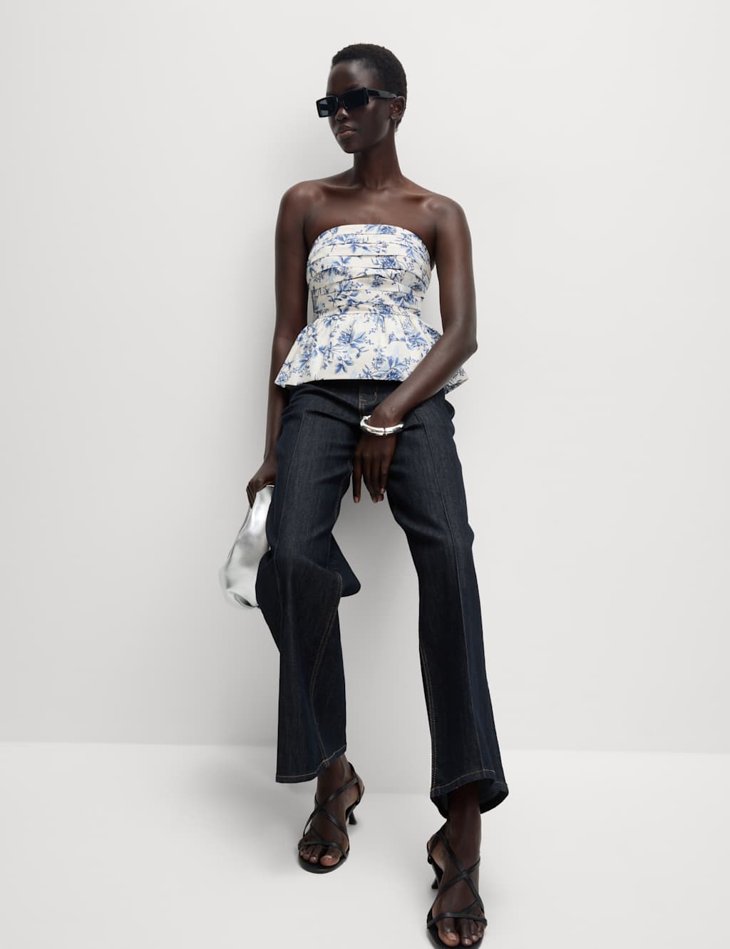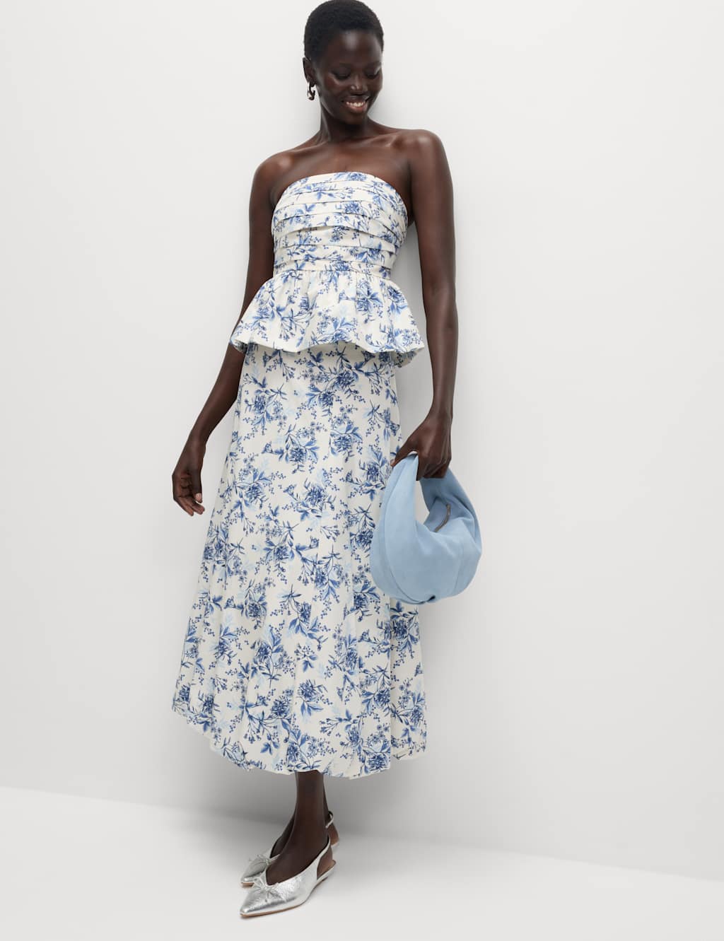 With its pretty floral print and flattering bubble hem, this pure cotton bandeau top is a stylish choice for sunny days.