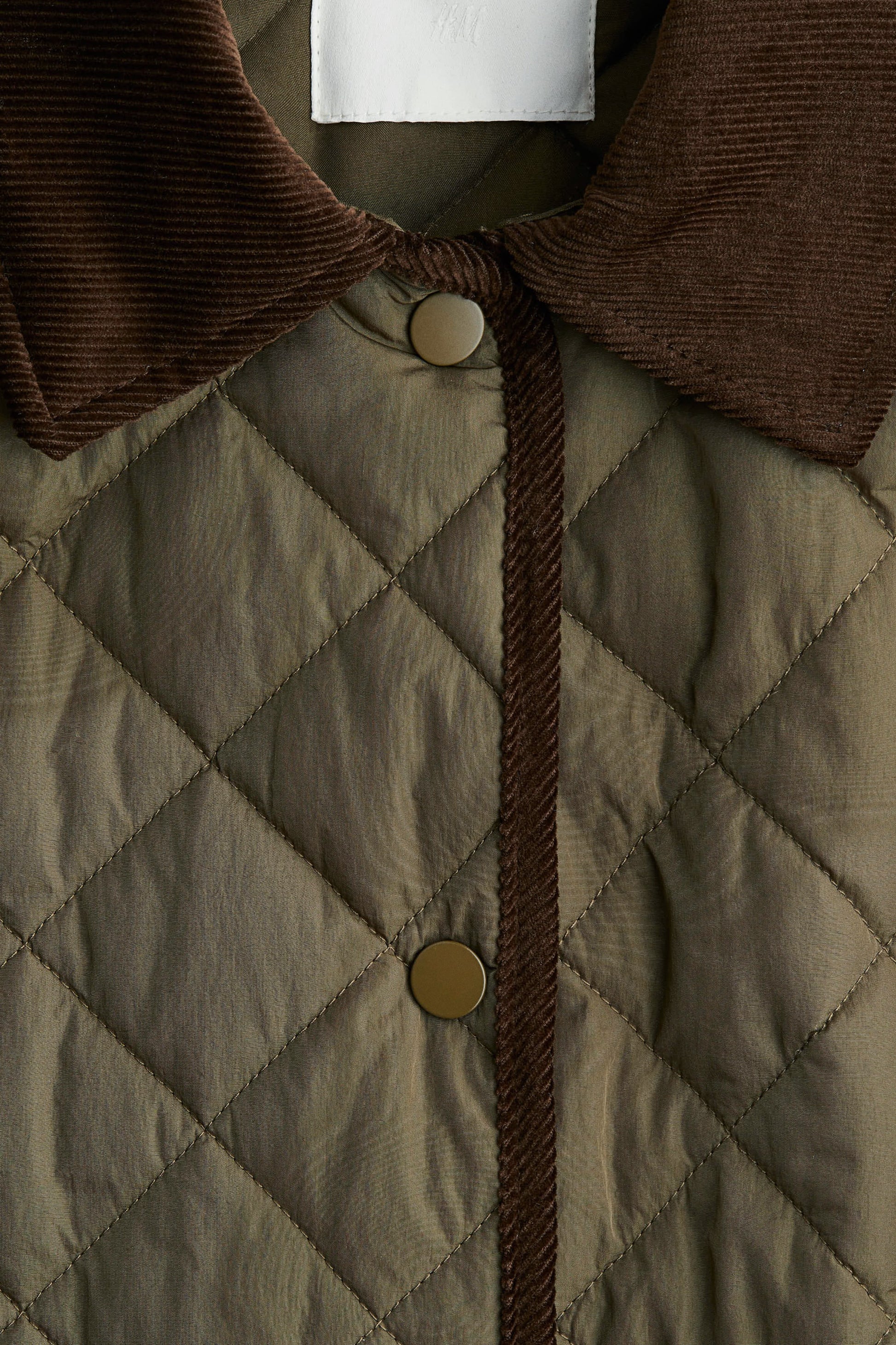 Lightly padded jacket in quilted nylon detailed with a collar, cuffs and binding in corduroy. Press-studs down the front, patch front pockets and a straight-cut hem featuring side vents with press-studs. Lined.