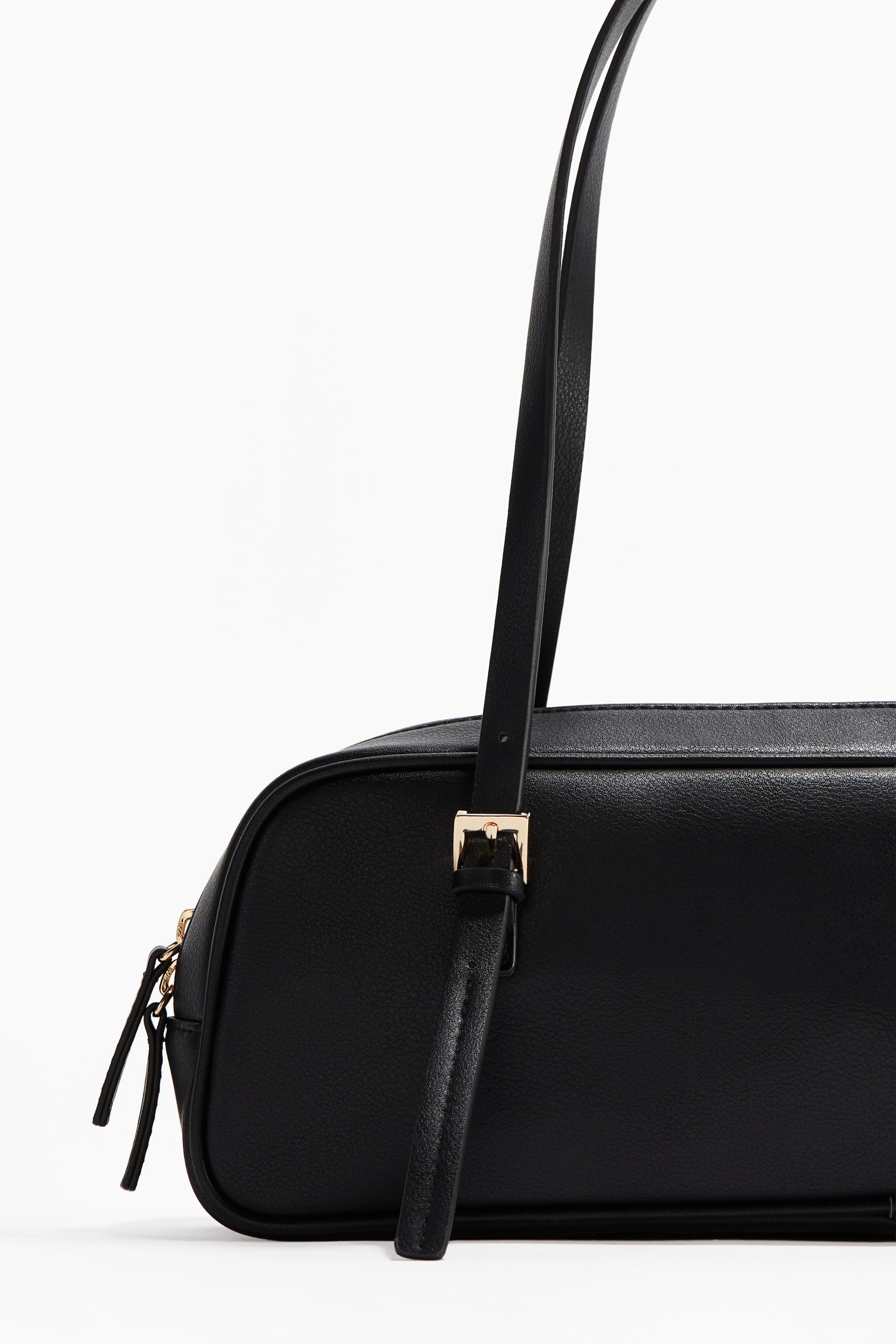 Rectangular shoulder bag with adjustable shoulder straps and a two-way zip at the top. Lined.
