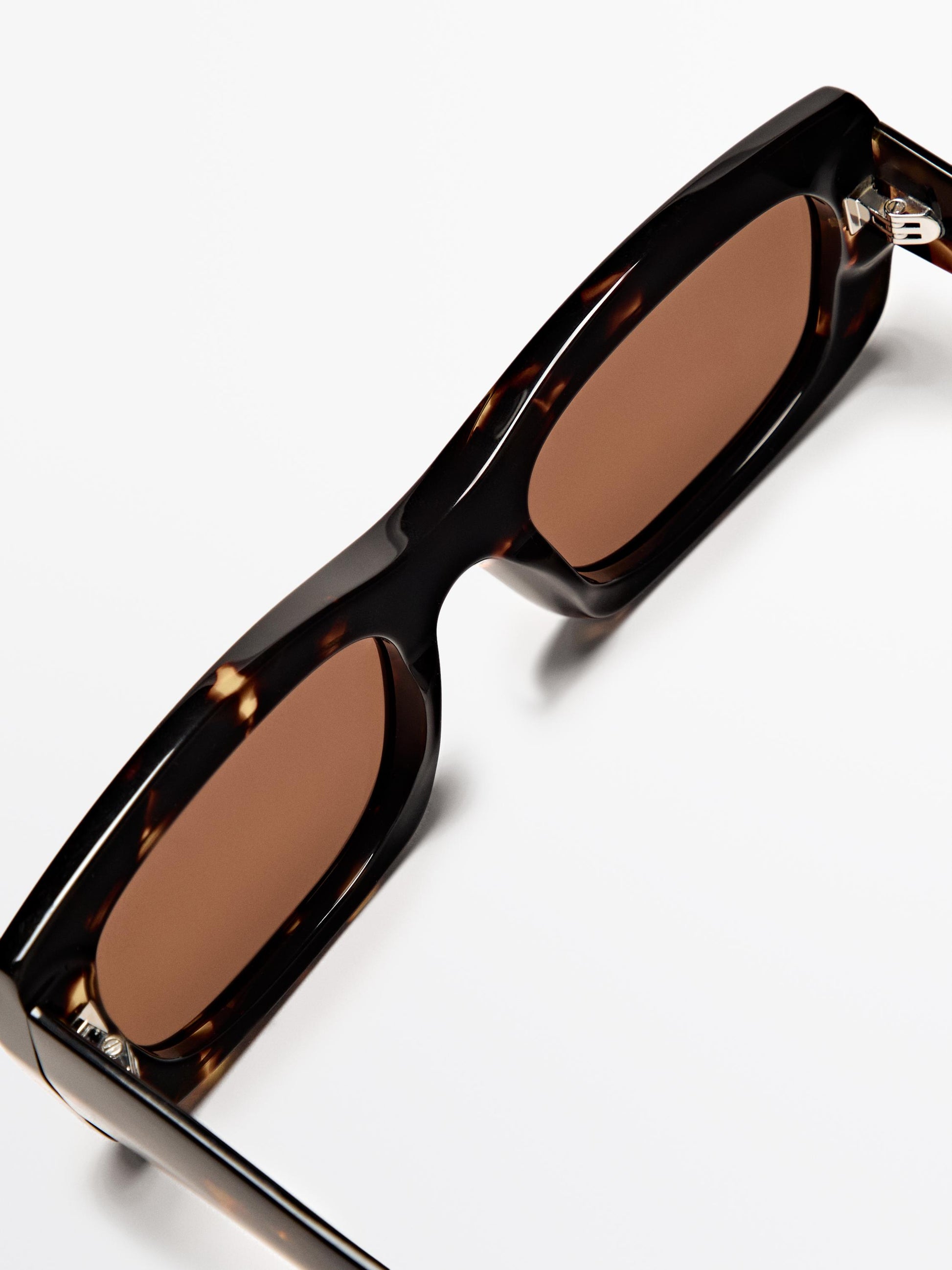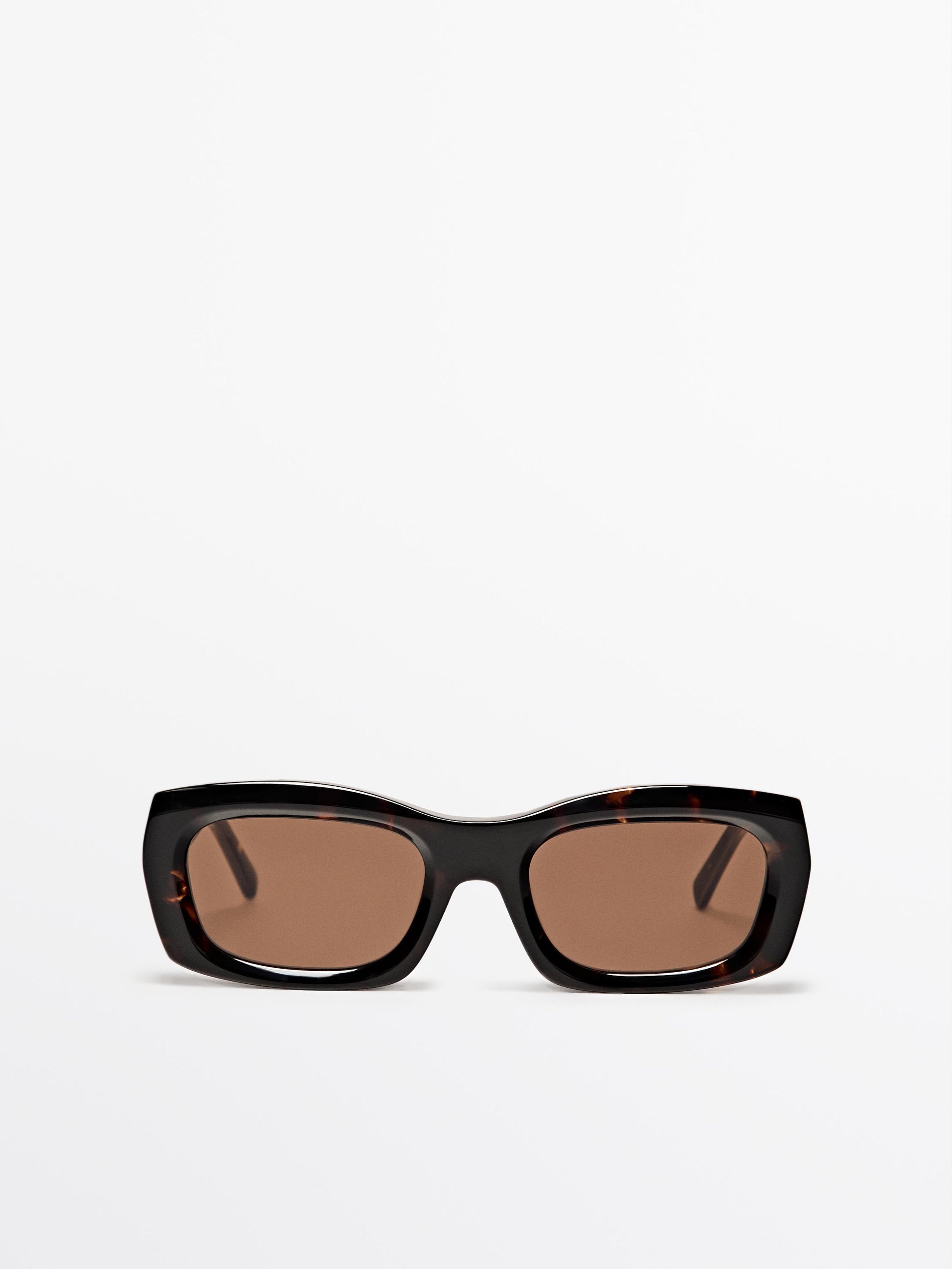 Tortoiseshell-effect plastic rimmed glasses. Lenses with category 3 UV protection filter. Includes a protective case.