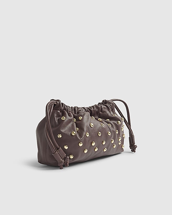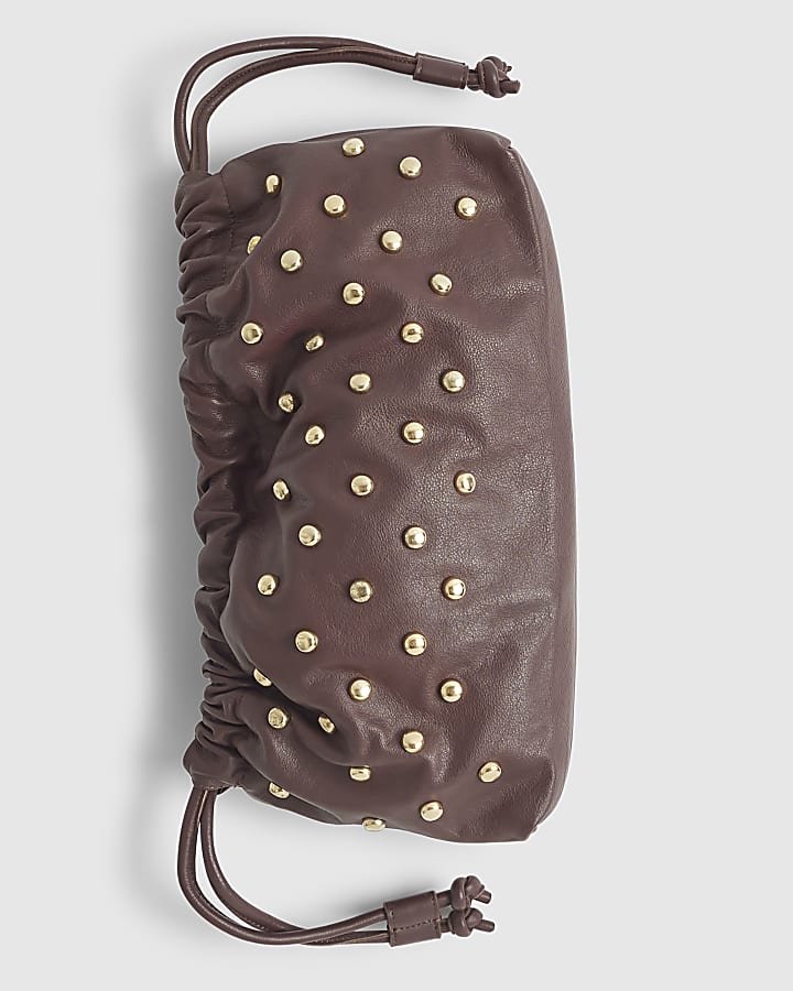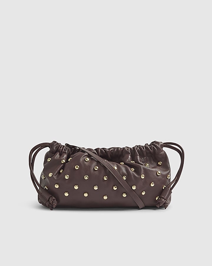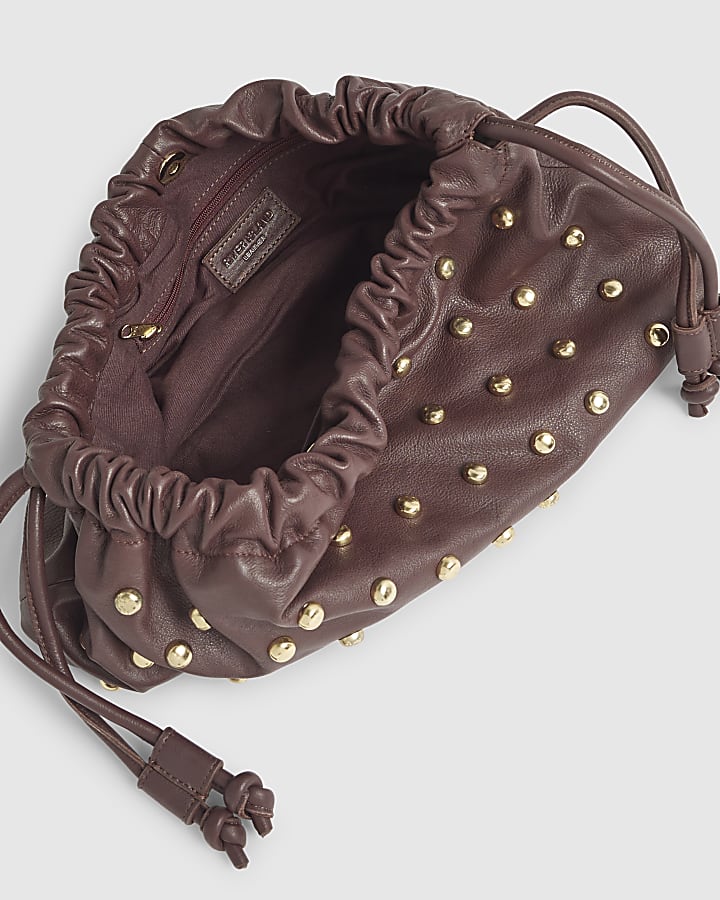 Red Leather Studded Crossbody Clutch Bag