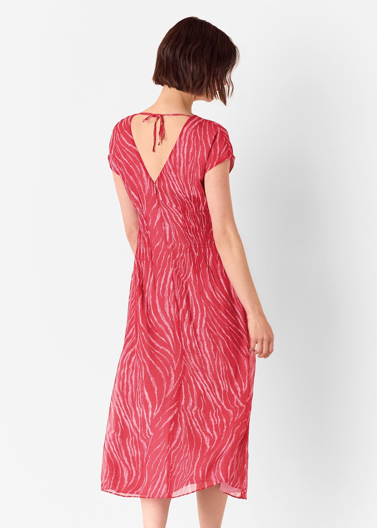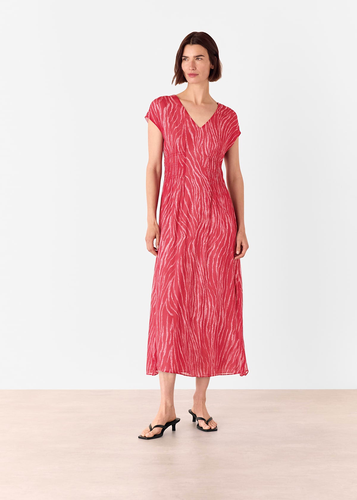 Bold, contemporary prints are a Whistles signature, and our Zebra Texture Midi dress is the perfect example. Whether you're heading to a summer event, a rooftop gathering or a weekend brunch, its bold zebra pattern and striking red shade bring effortless confidence to any setting. Its detailed with a V-neckline, short sleeves and a fit-and-flare silhouette, too, to further the elegant look.
