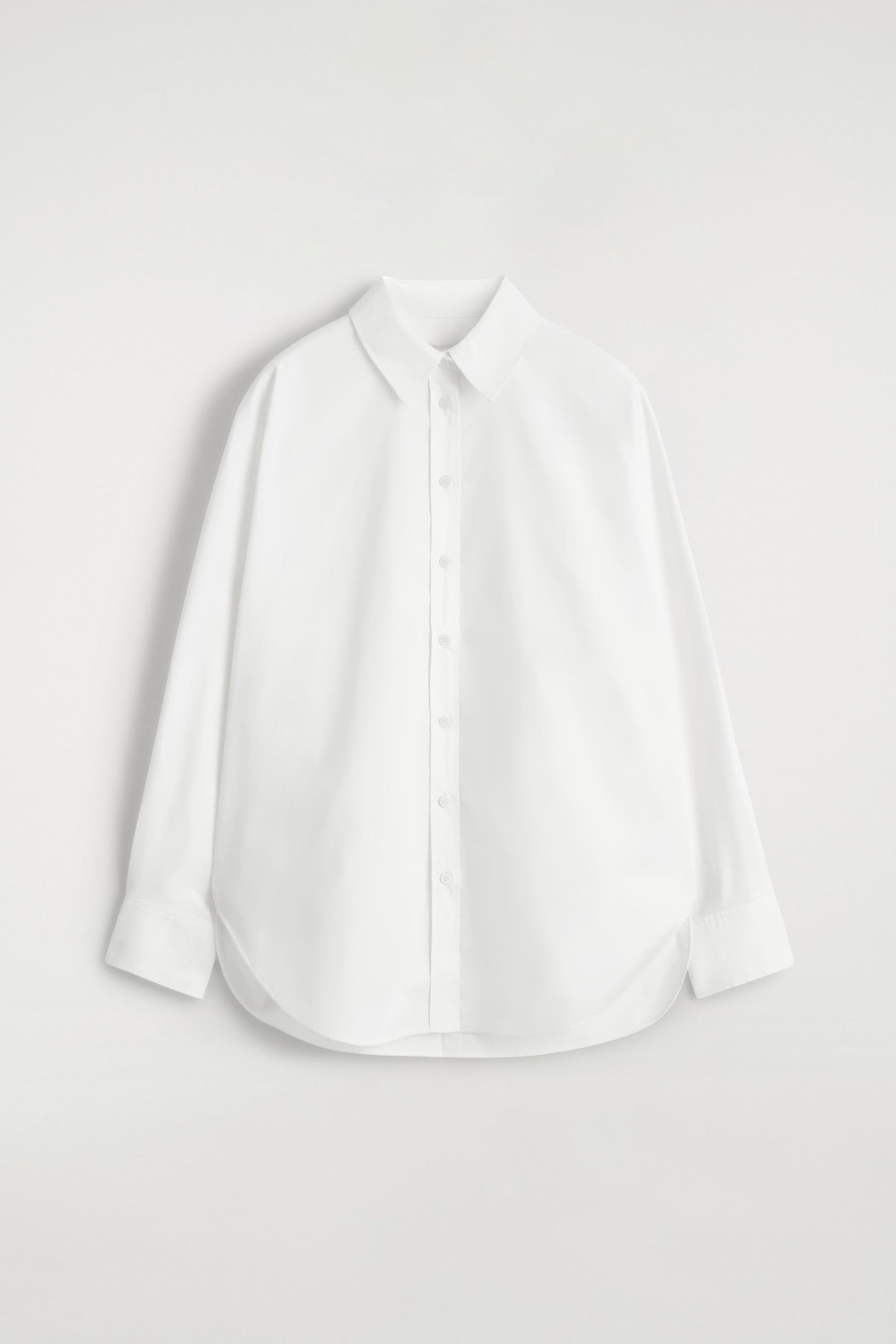 Tailored in a billowing shape, this modern shirt is made from pure cotton and has a classic pointed collar, buttoned cuffs and a curved, stepped hem. Style it with denim for a refined take on everyday dress.