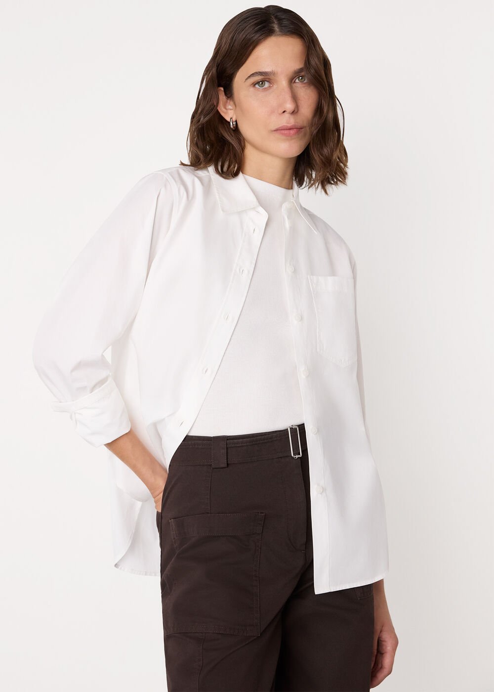 A relaxed-fitting shirt is a modern wardrobe staple, bringing a laidback-yet-refined touch to your outfits. Our latest is a case in point; designed in crisp white, it offers a clean canvas for endless styling whether paired with denim for effortless ease, tailored trousers for elevated polish or layered beneath knits as the seasons shift. Finished with a relaxed silhouette and a single front pocket, its more than just a staple its the essential starting point for building every contemporary look.