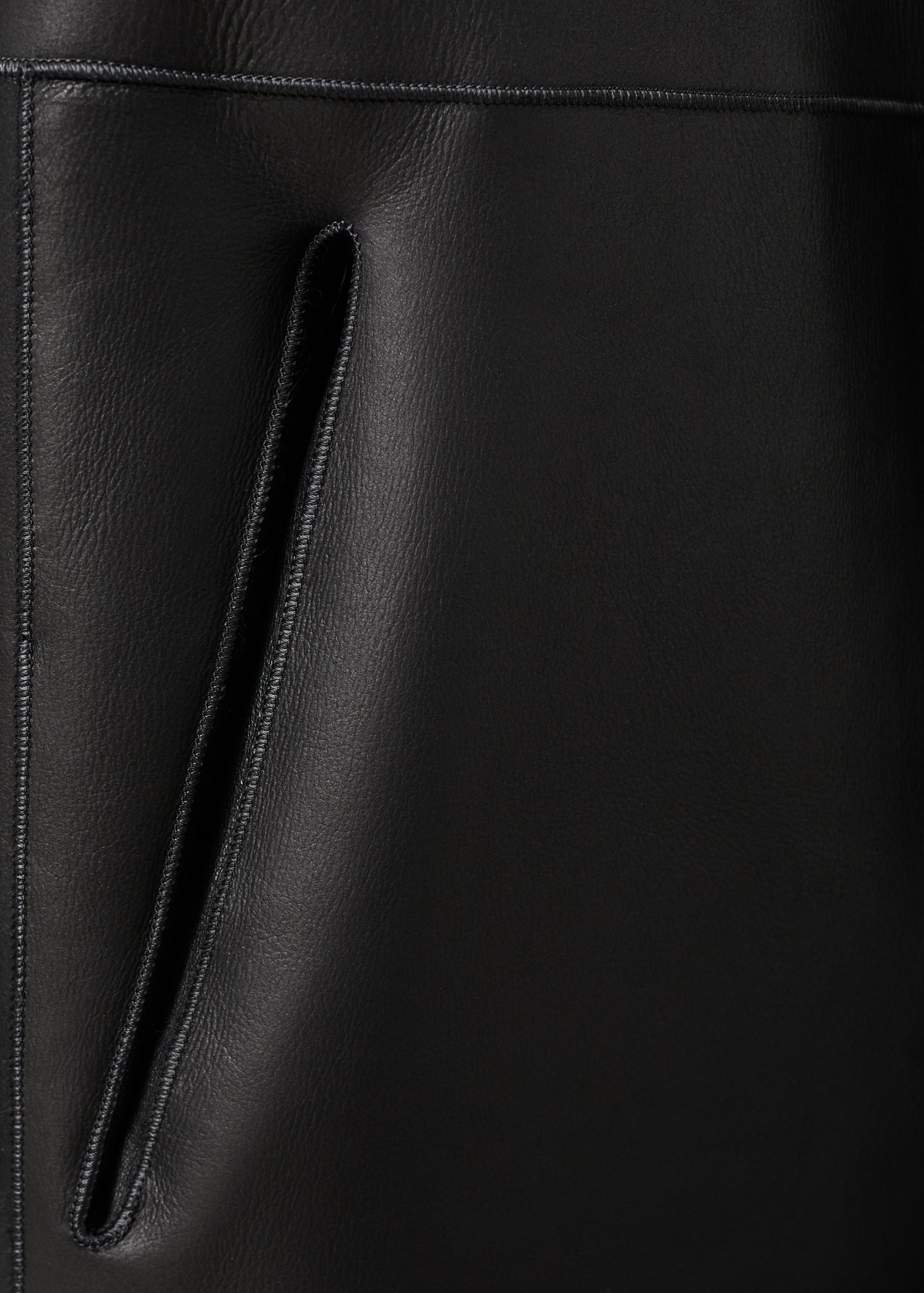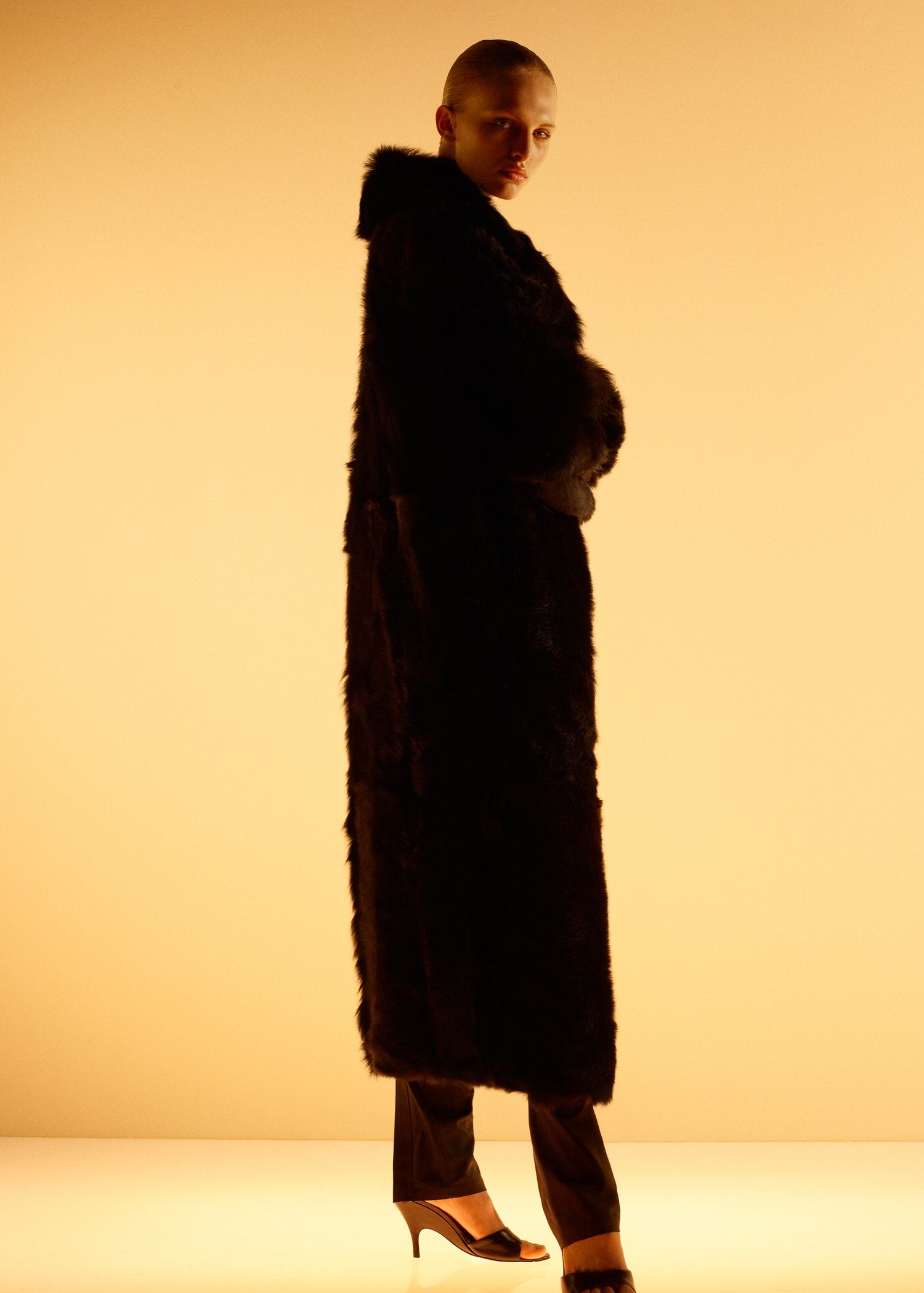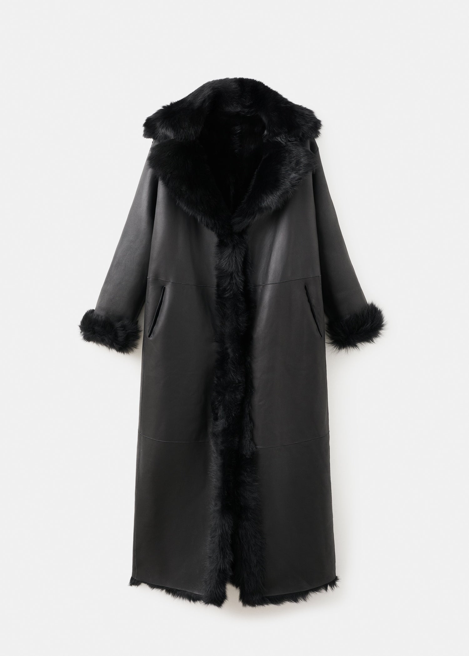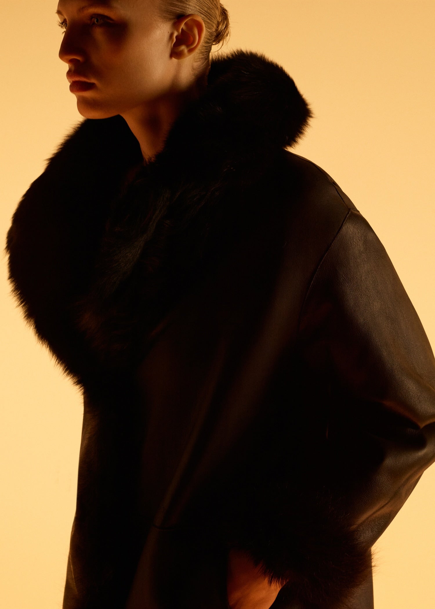 100% bovine hair-on leather. Long design. Straight Design. Lapel-collar V-neck collar. Long sleeve. Two side pockets. This garment is part of our party and event collection, designed to elevate your looks for special occasions. Selection Collection. Online Exclusive.