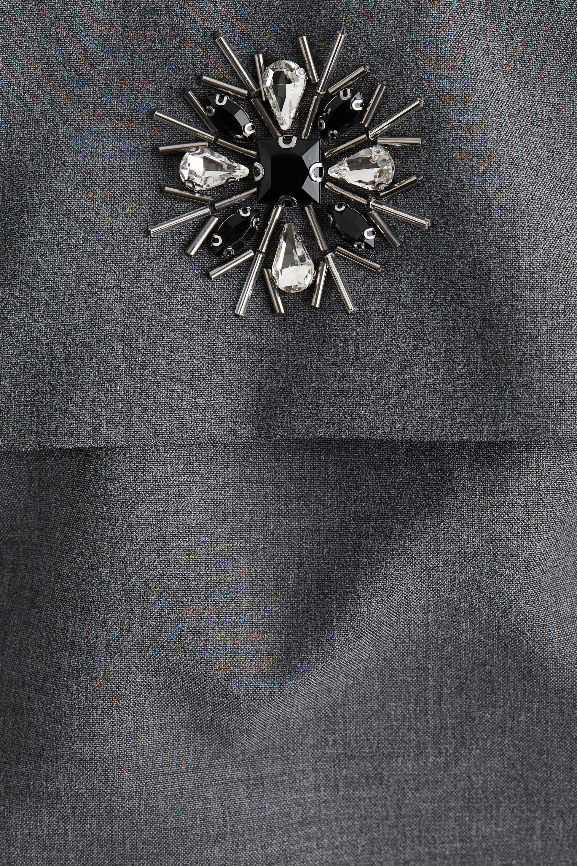 Short, fitted bandeau dress in woven fabric featuring a foldover top embellished with sparkling rhinestones and bugle beads at the front. Concealed zip and hook-and-eye fastener at the back and a flared skirt. Unlined.