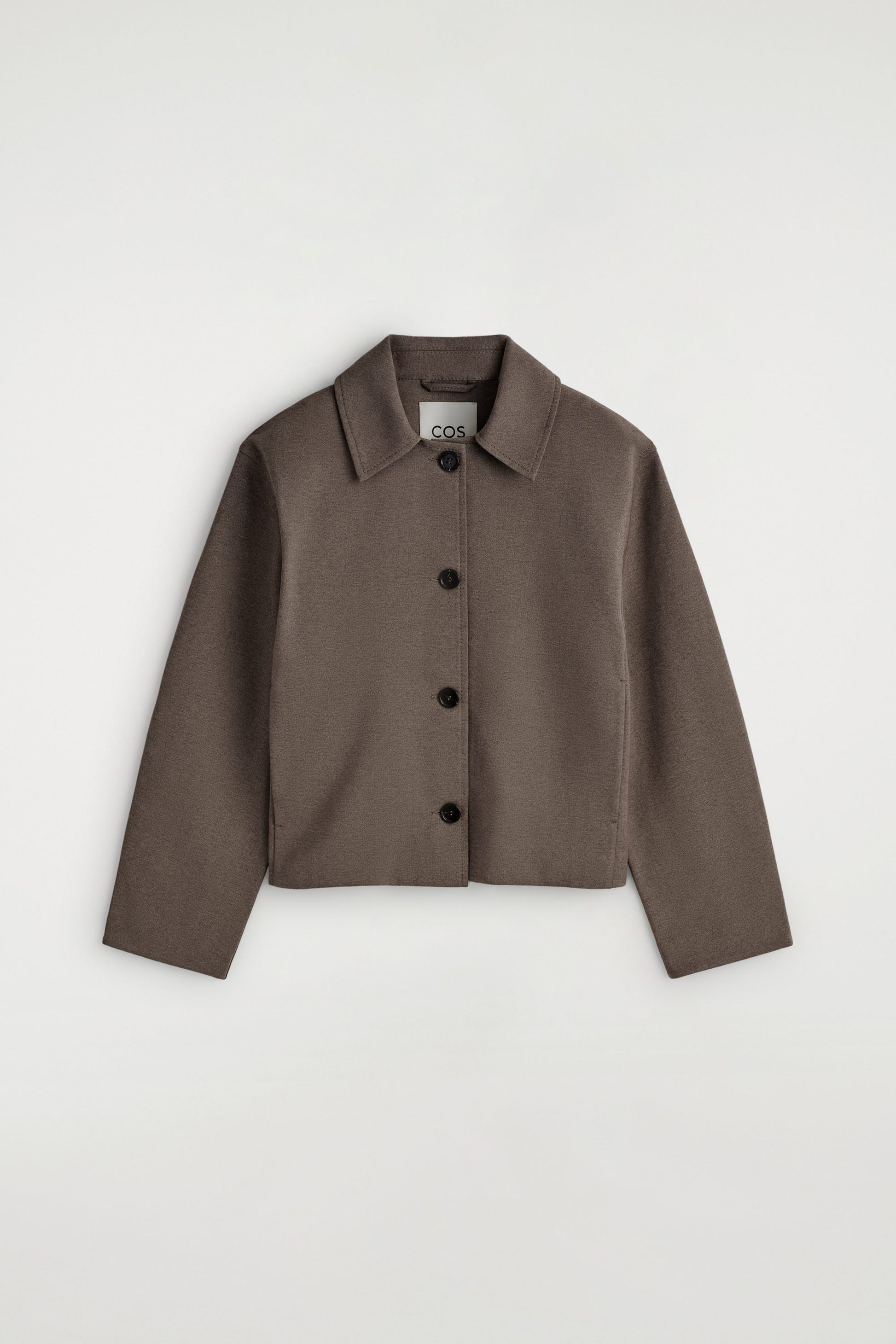 Distinctive in shape, this modern jacket is made from soft cotton-blend jersey with a streamlined finish and rounded silhouette. Style it with the matching skirt for a tonal look.