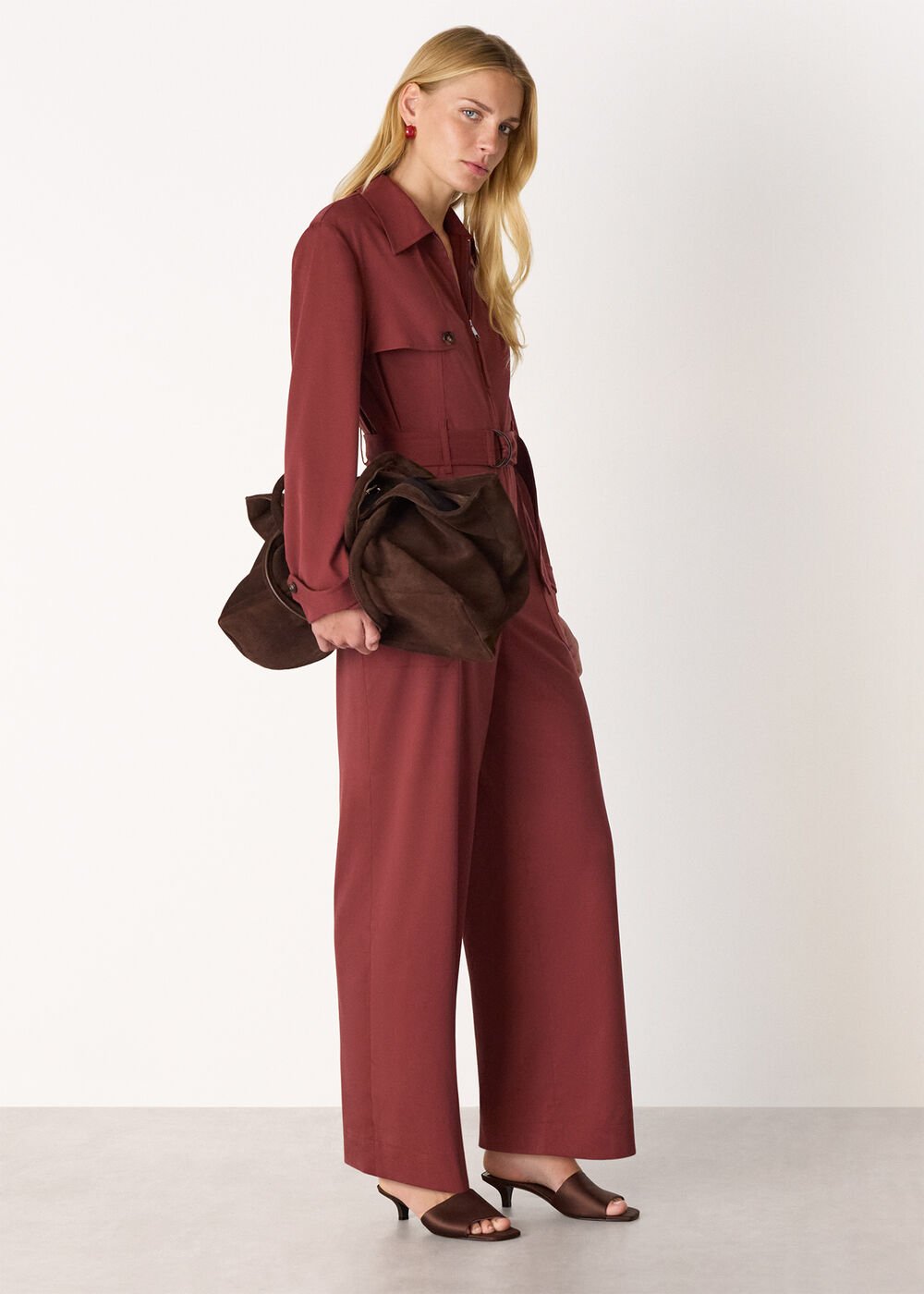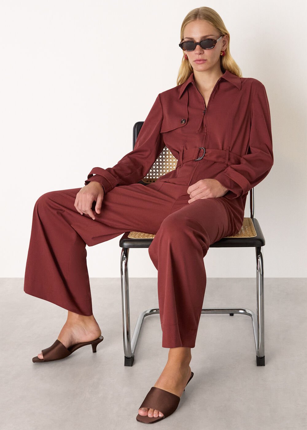 With this season’s Limited Edition collection, our Design Team balances softer, more feminine styles with utilitarian details. Our Trench Detail Jumpsuit perfectly reflects this harmony: a wardrobe classic reworked with trench-inspired elements. It’s designed in a rich rust shade and detailed with a waist-cinching belt, sleeve cuffs and a storm flap, nodding to traditional tailoring. A sharp collar, generous pockets and cuff straps add further detail, giving a look that moves effortlessly from daytime polish to weekend occasions.